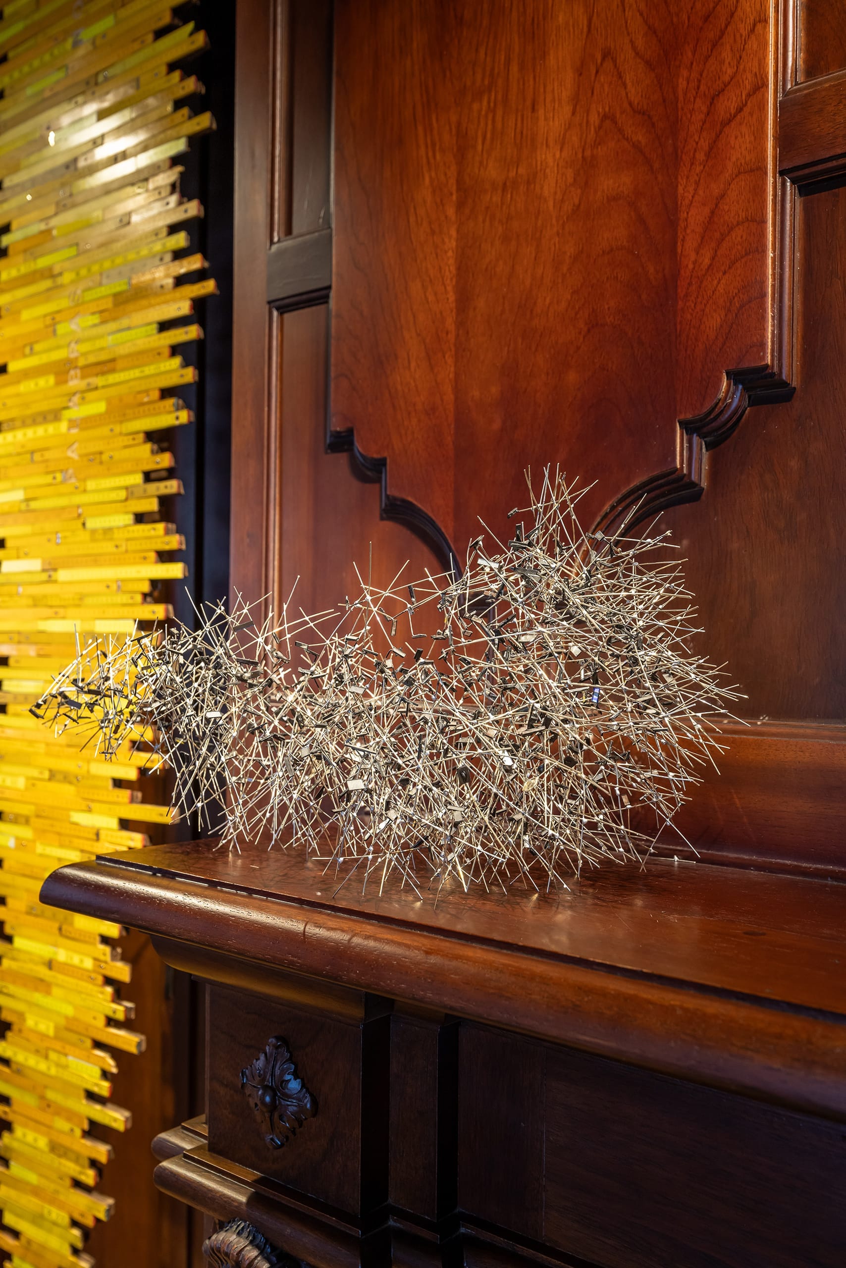 La presencia de obras de arte elaboradas en tejido de alpaca o acero inoxidable establecen un contrapunto fantástico con los muebles de diseño que exhibe un salón de características rústicas. El dialogo funciona y opera en el visitante la necesidad de quedarse, permanecer allí. Y preguntar. Para muchos resulta difícil expresar lo que sobre todos genera la atmósfera cuando está concebida a partir del diseño. Las piezas, elegidas puntualmente por Luisa Pedrouzo para exhibir, promover y comercializar, son de autores contemporáneos y complementan el riguroso catálogo que ha conformado Julia Garay para su tienda.