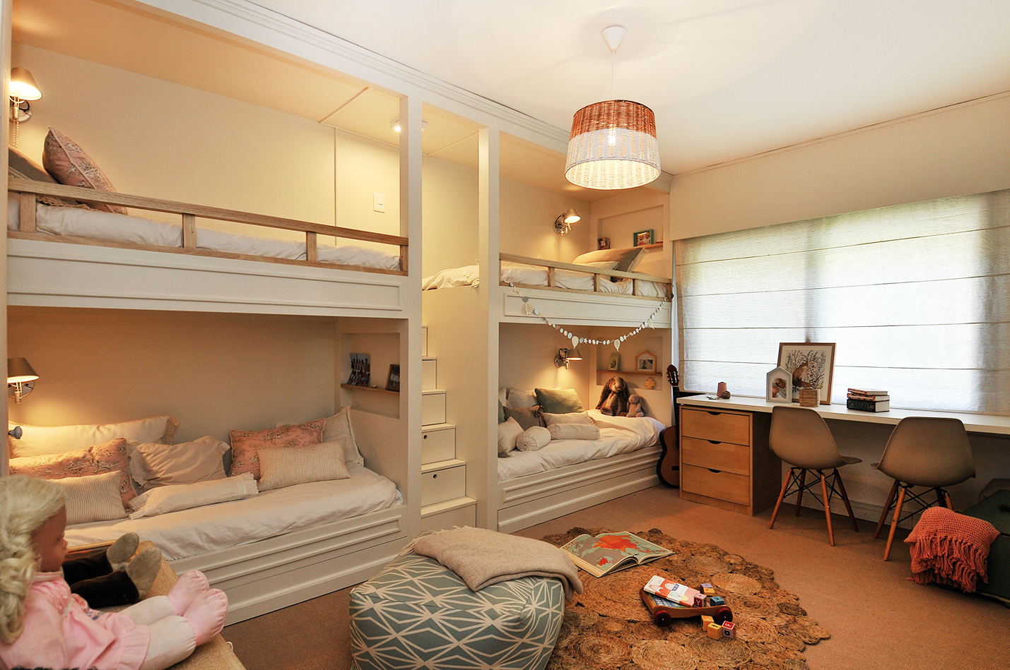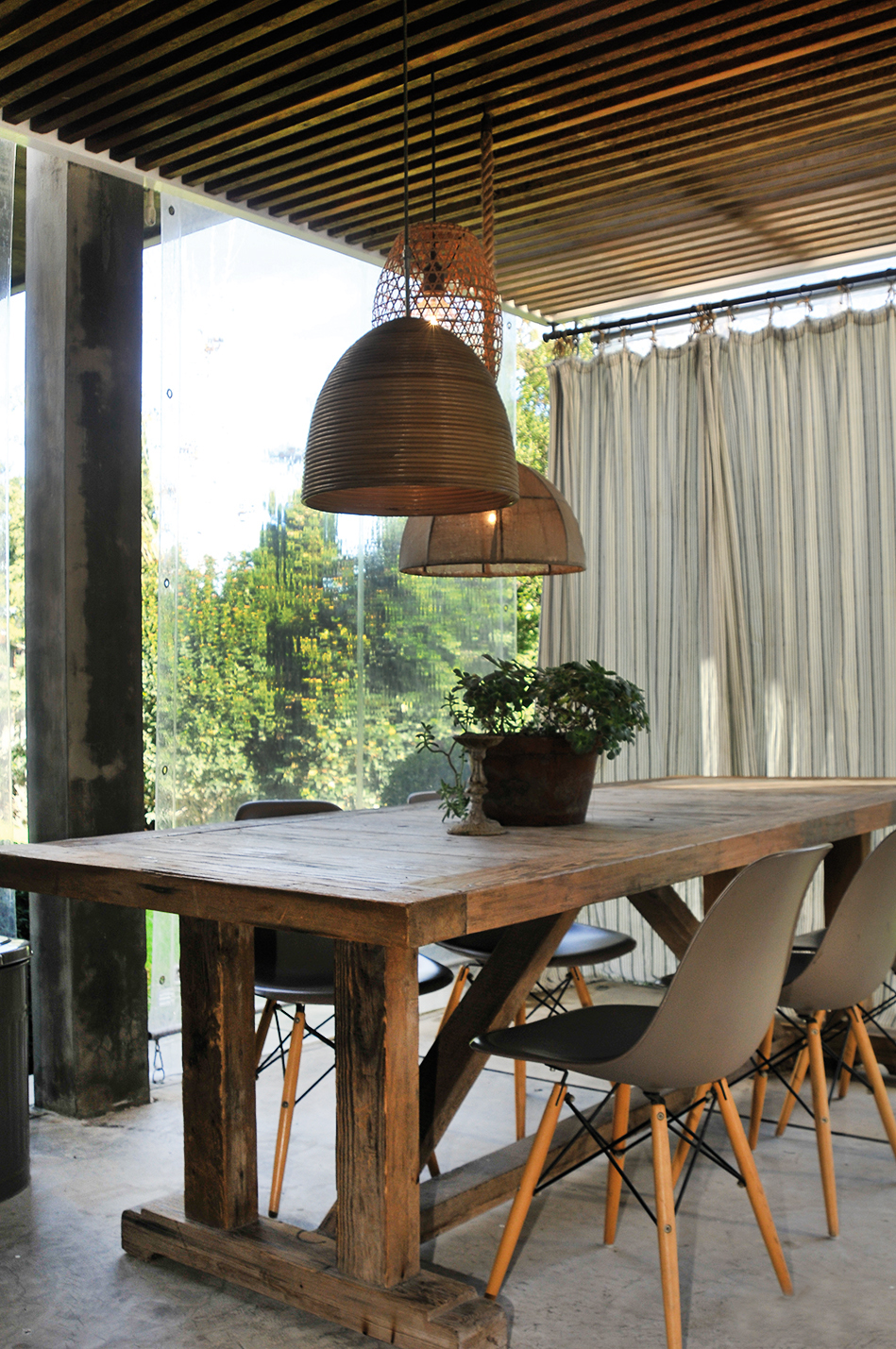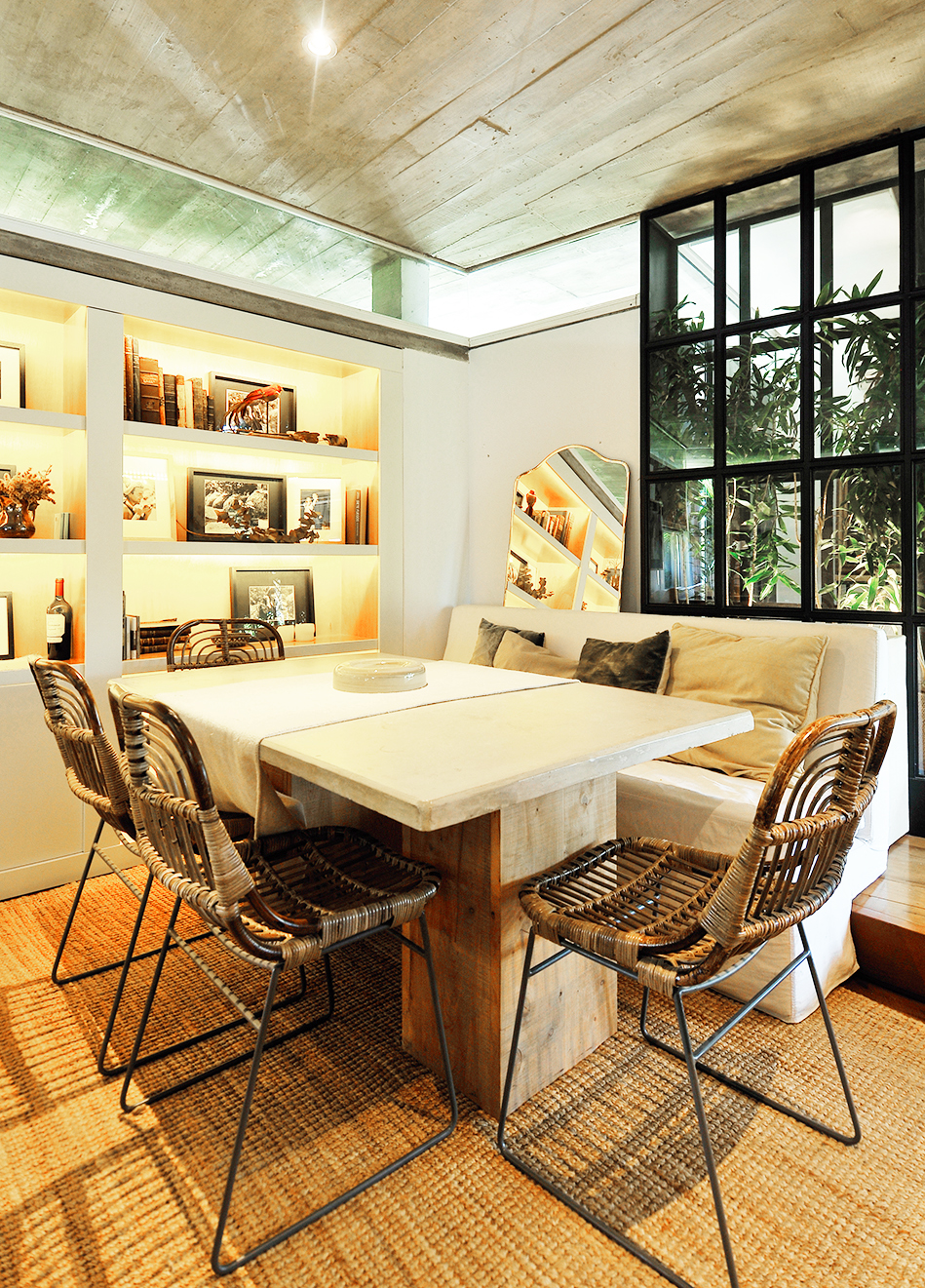 En su esencia, todos los ambientes conviven dentro de una misma gama de colores que se inclina hacia la paleta de beiges y naturales. El estilo que representa estos espacios podría considerarse de tendencia bastante rústica, con gran presencia de distintas maderas, aunque al observar con atención, vemos que empiezan a abrirse camino distintos géneros. Algunos espacios se ven más influenciados por pinceladas de estilo romántico y clásico, mientras que otros se inclinan más hacia la fusión de lo rústico con lo industrial.