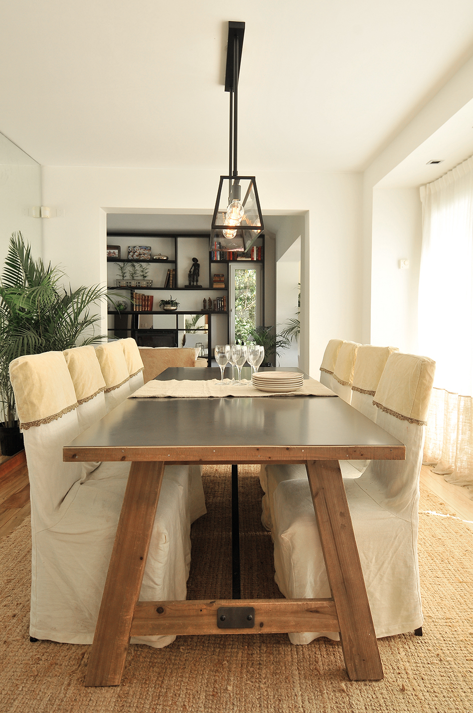 Las tres mesas de comedor comparten dos características en común: la combinación de dos materiales para diferenciar la tapa de las patas, y la simpleza en su diseño. Todos los modelos presentados tienen un diseño claro, simple y geométrico. En dos de ellos están combinados con sillas macizas tapizadas, mientras que en el tercero se juega un poco más con el diseño de identidad y la originalidad, y se colocan sillas más livianas realizadas en caña y hierro.