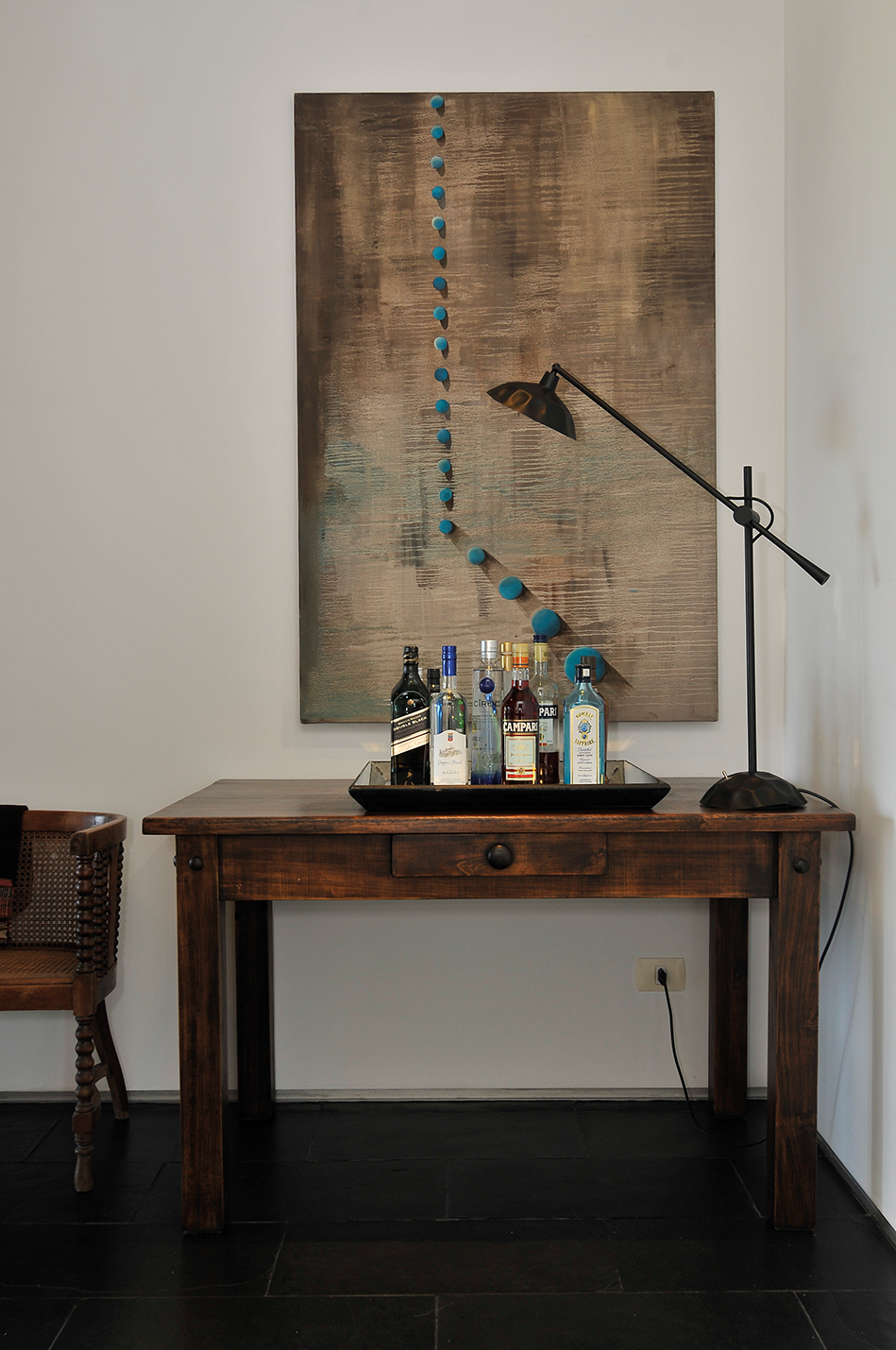 “…llevo muchos años como visitante asidua del Salón del Mueble de Milán y a la vez estoy en contacto con el fabuloso circuito del diseño de autor en Brasil, circunstancias que me permiten conocer y poder apelar a soluciones formales de increíble vigor y calidad. En esta casa fue necesario diseñar muchos muebles de apoyo, revestir paredes y generar soluciones a medida en muchas situaciones, pero los muebles principales son en todos los casos, piezas originales de diseño y de autores a los que admiro y en los que creo mucho…” nos comenta Joseane Sturmer.