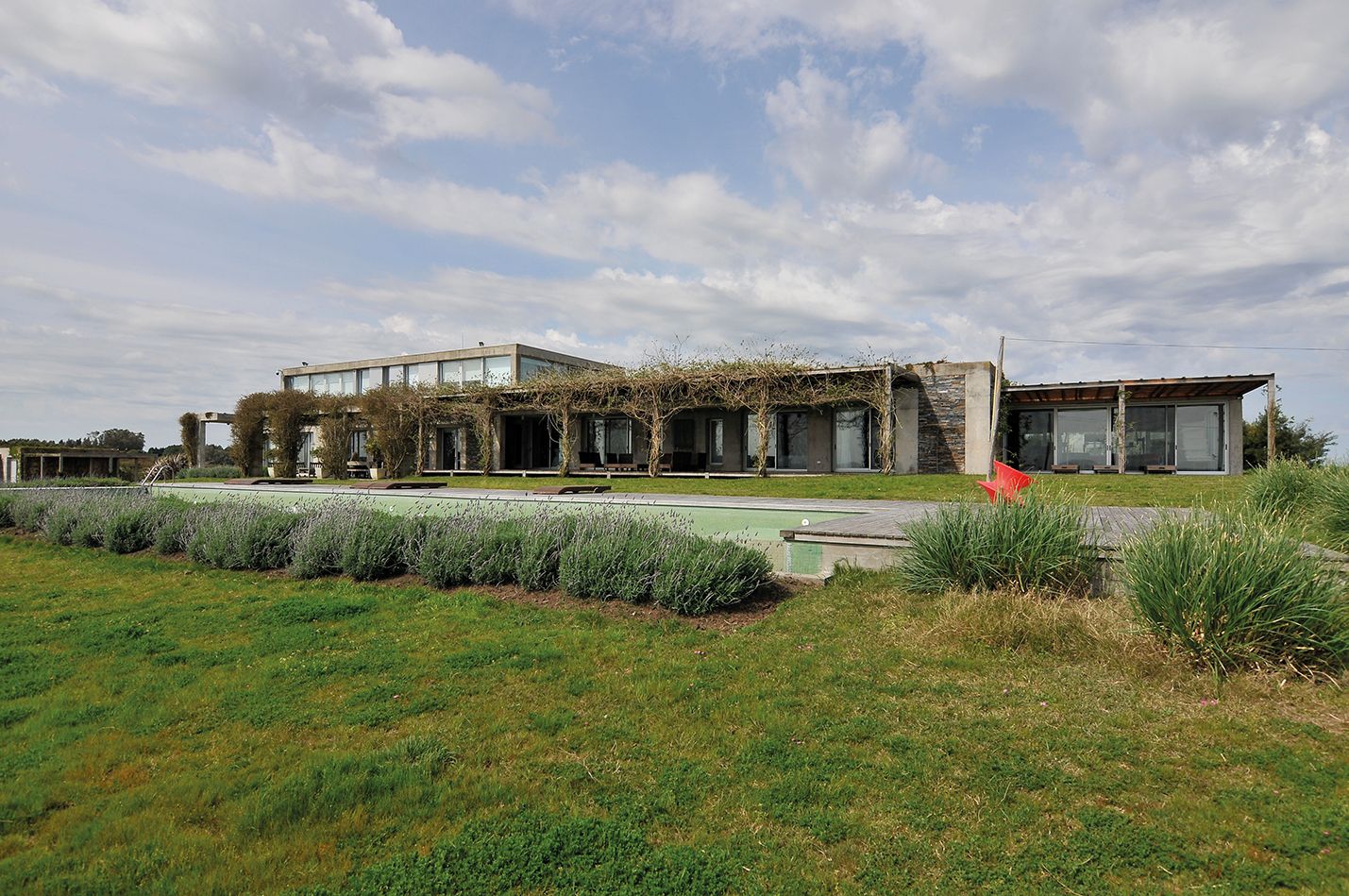 En las terrazas exteriores, con pavimentos de madera, los muebles de Thomas Heatherwick y de Philipe Starck generan contrastes que refieren al diseño contemporáneo que en medio del paisaje rural adquiere una dimensión de increíble vitalidad.