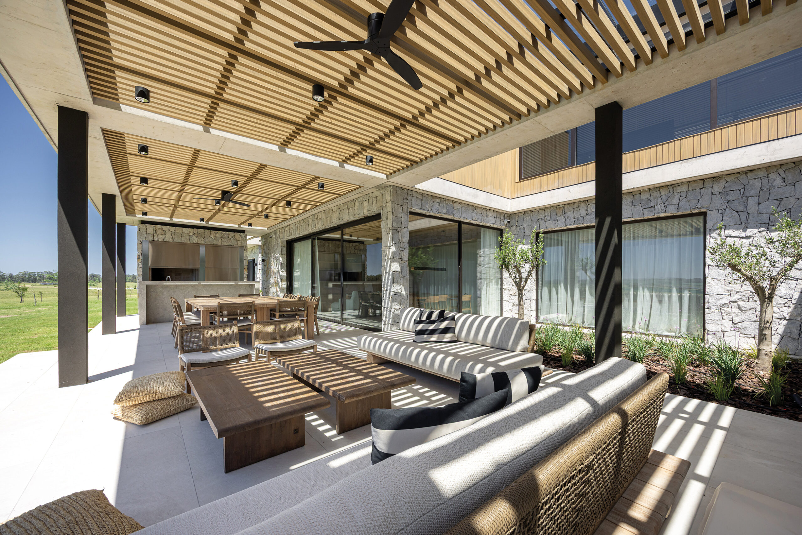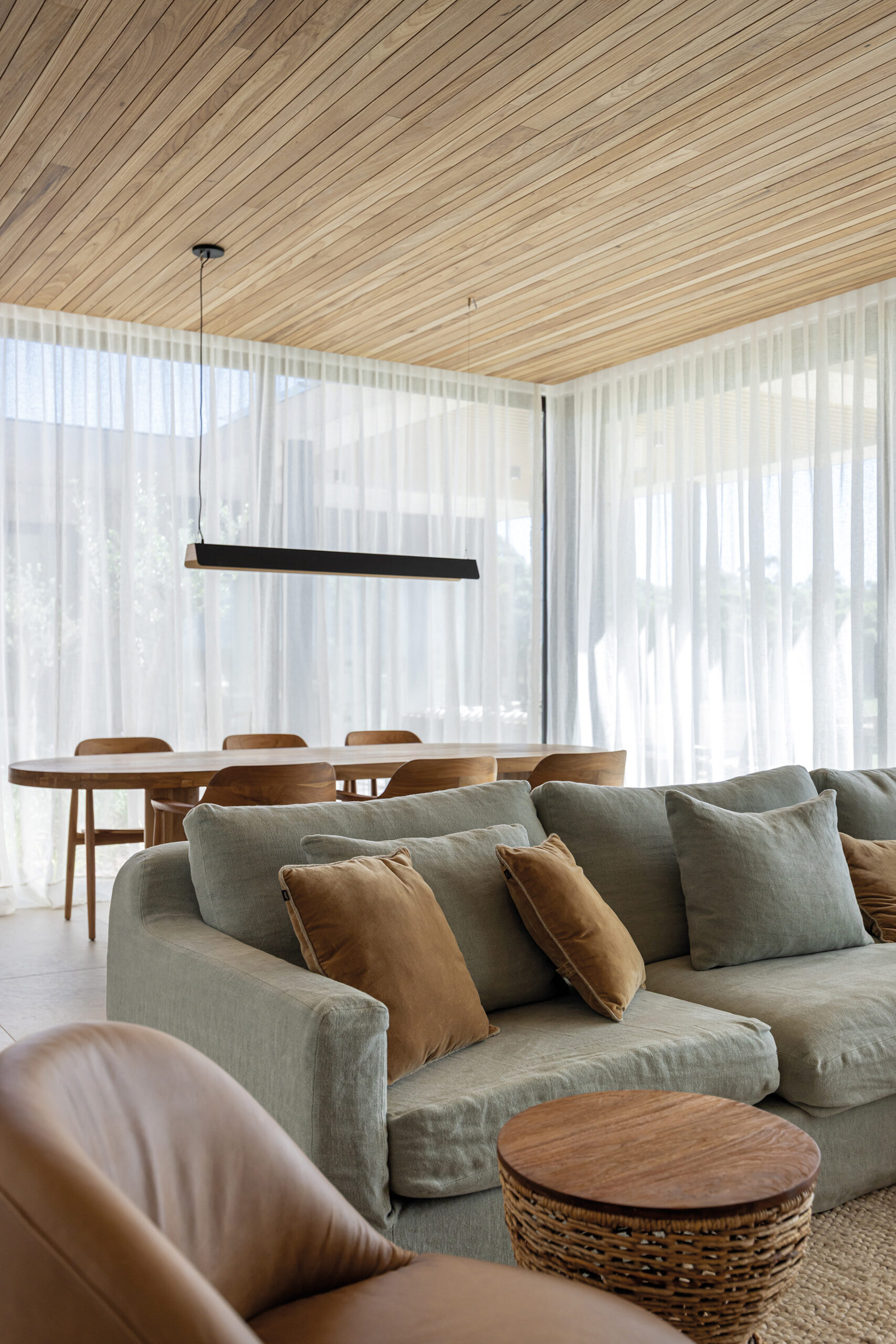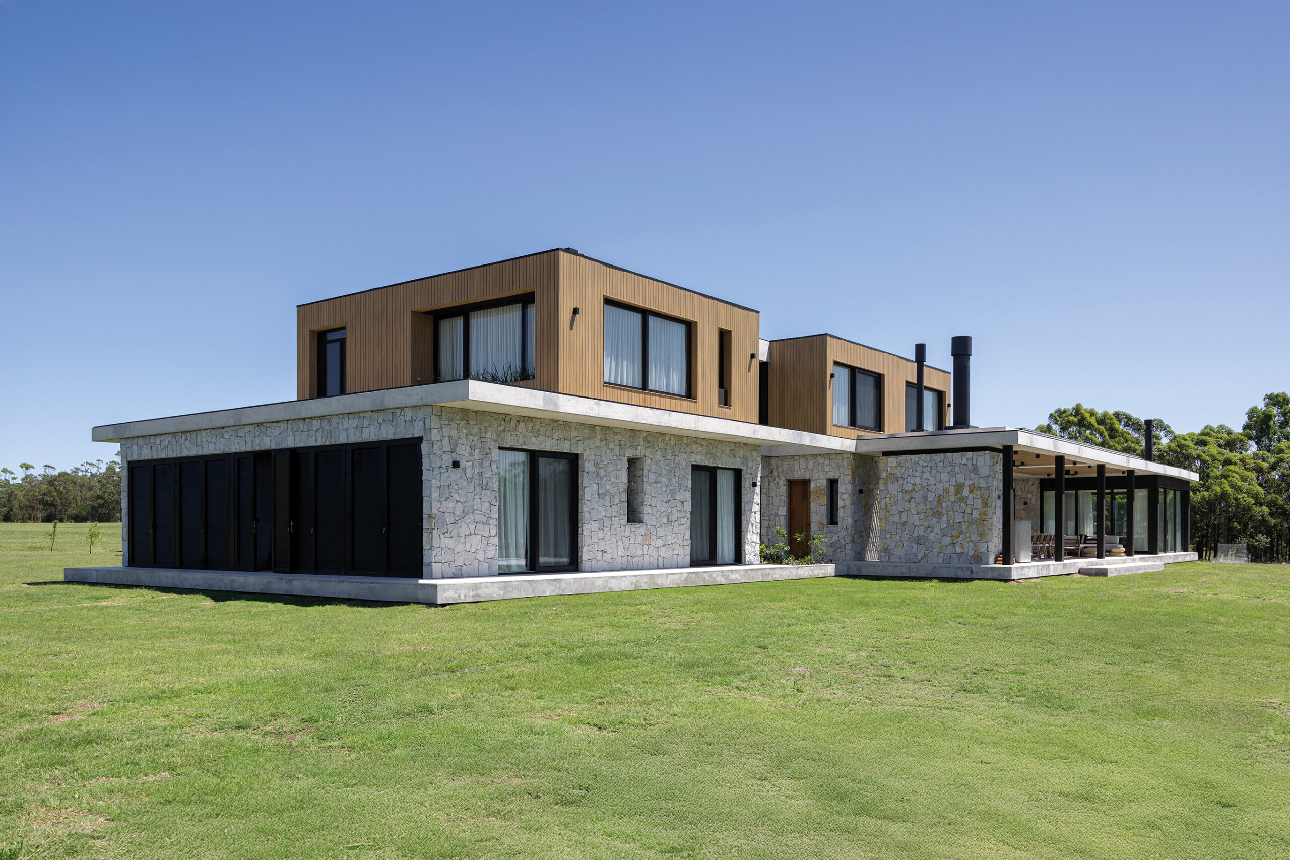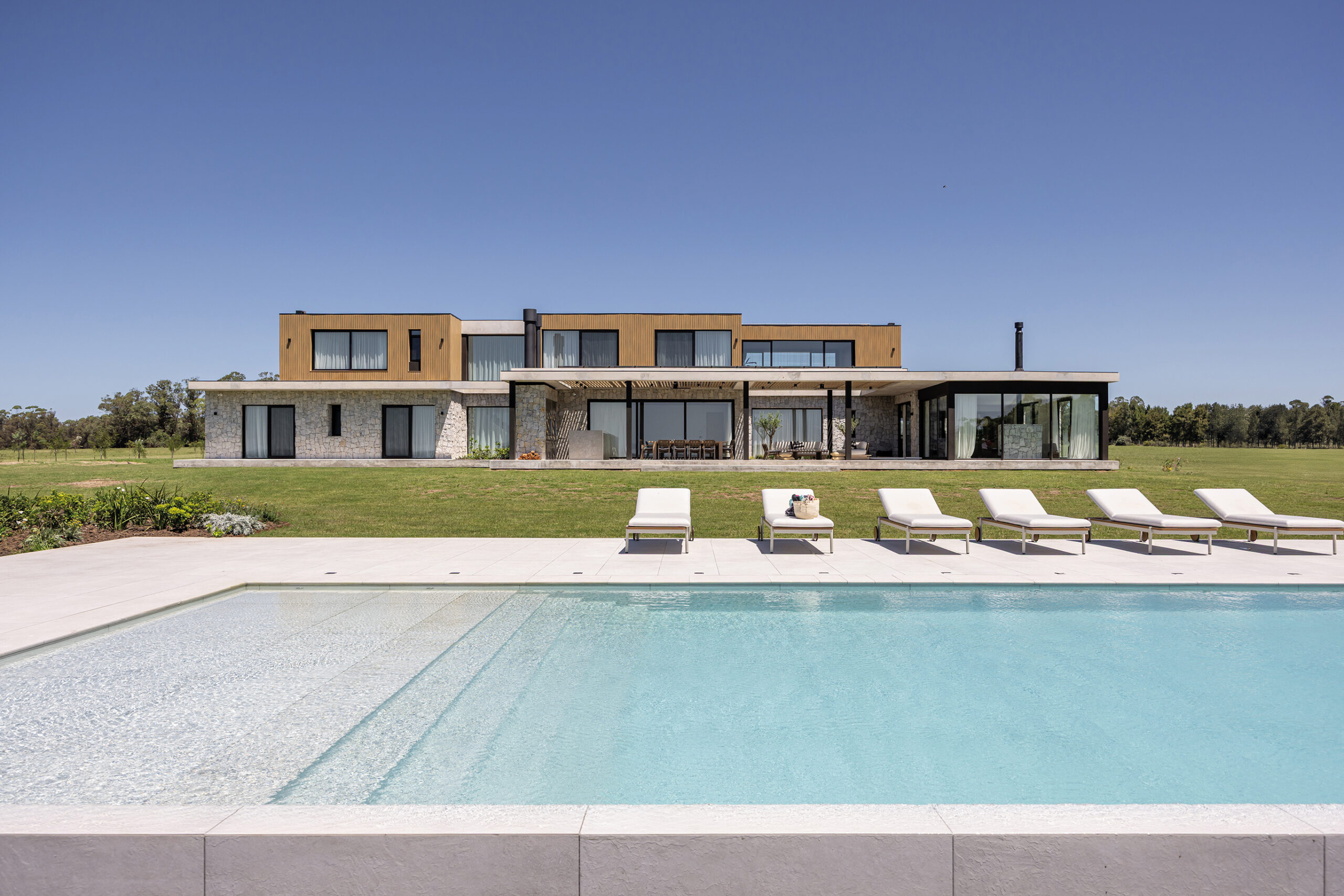 Con esta casa en Laguna de los Cisnes, camino a Punta del Este, Pascarelli y Marino marcan su desembarco en Uruguay con una propuesta arquitectónica sólida y bien resuelta. Ubicada en un entorno privilegiado, donde la vegetación nativa y los espejos de agua definen el paisaje, la vivienda ha sido concebida con un profundo respeto por su contexto natural. Diseñada como una residencia vacacional para una familia que disfruta recibir a familiares y amigos, el proyecto se plantea para ser habitado durante todo el año, apostando por una fluida conexión entre el interior y el exterior. Grandes ventanales maximizan las visuales y la entrada de luz natural, potenciando la relación con el paisaje y asegurando una atmósfera cálida y envolvente.