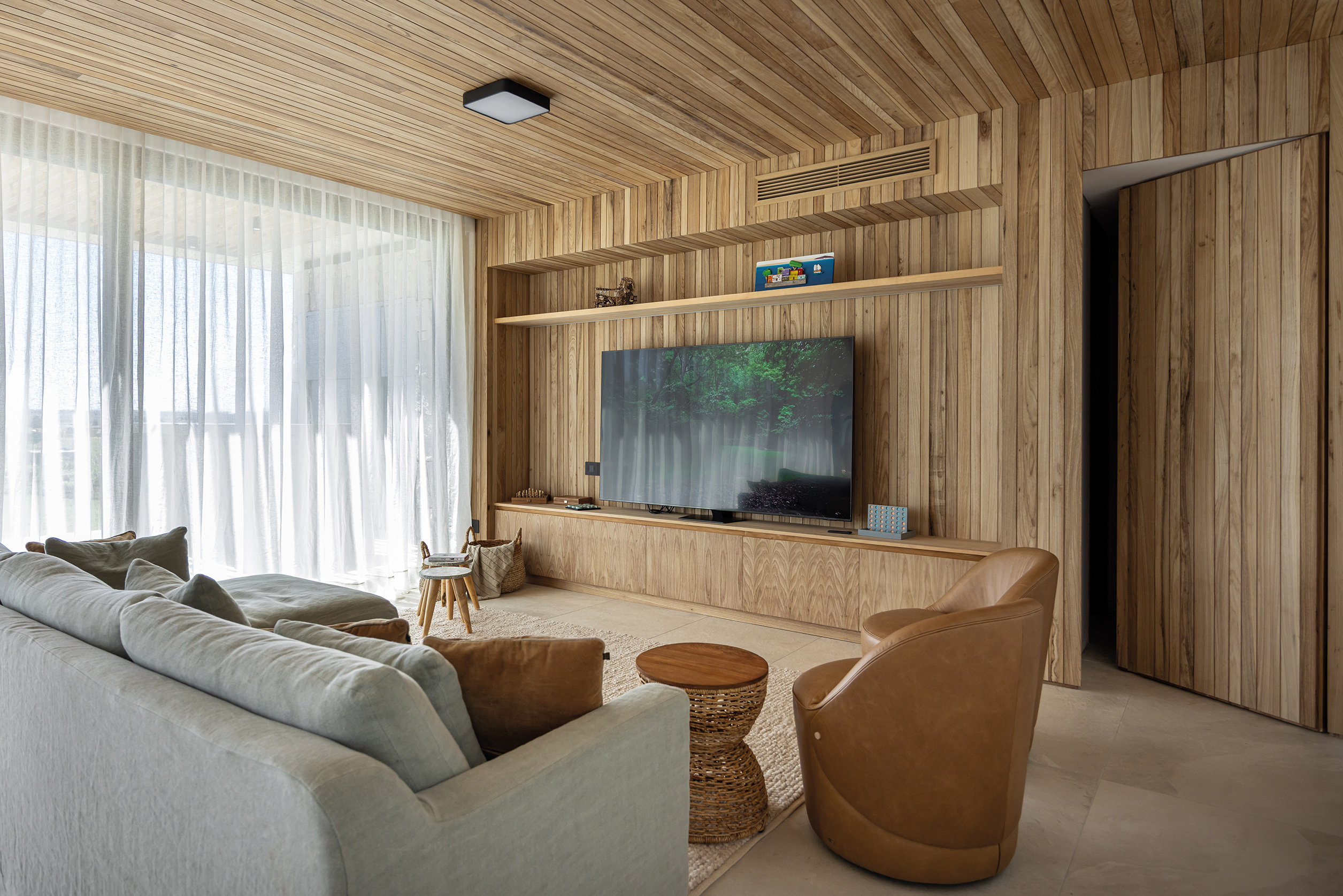 Uno de los aspectos más interesantes del diseño radica en su flexibilidad funcional. La casa está dividida de manera que no sea necesario acondicionar toda la vivienda cuando solo la habitan sus dueños, una estrategia que optimiza el uso de los recursos sin comprometer la calidad espacial. En su conjunto, esta residencia vacacional sintetiza con precisión la visión de 7PM Arquitectura: espacios bien concebidos, con una ejecución meticulosa y una sensibilidad que trasciende lo meramente estético para convertirse en una experiencia de vida. Su integración con el paisaje no es solo visual, sino sensorial, ofreciendo un refugio que respira con su entorno y que permite a sus habitantes conectar con la naturaleza de manera auténtica y sostenible.