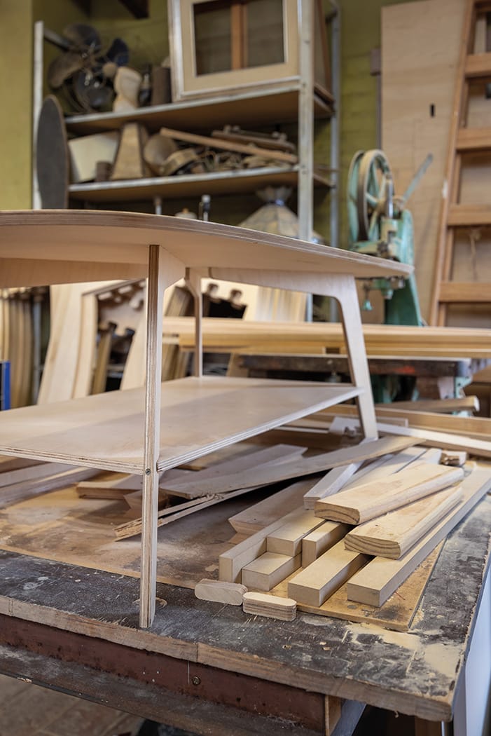 Tras varias consideraciones, incluso contemplando la idea de construir la máquina él mismo, Joaquín adquirió su “asistente robot” en 2021. Al año siguiente, fundó Flatpack con la visión de crear muebles modernos, modulares y de empaque plano. Estas características ofrecen múltiples beneficios, como la facilidad de producción al no requerir encolado y la simplicidad en el transporte. La materia prima que mejor cumplía con estos requisitos fue la multiplaca de Abedul, un material de origen europeo de alta calidad, compuesto por varias láminas de madera encoladas en un patrón de vetas cruzadas, lo que le otorga una excelente estabilidad dimensional y permite un encastre preciso de las piezas.