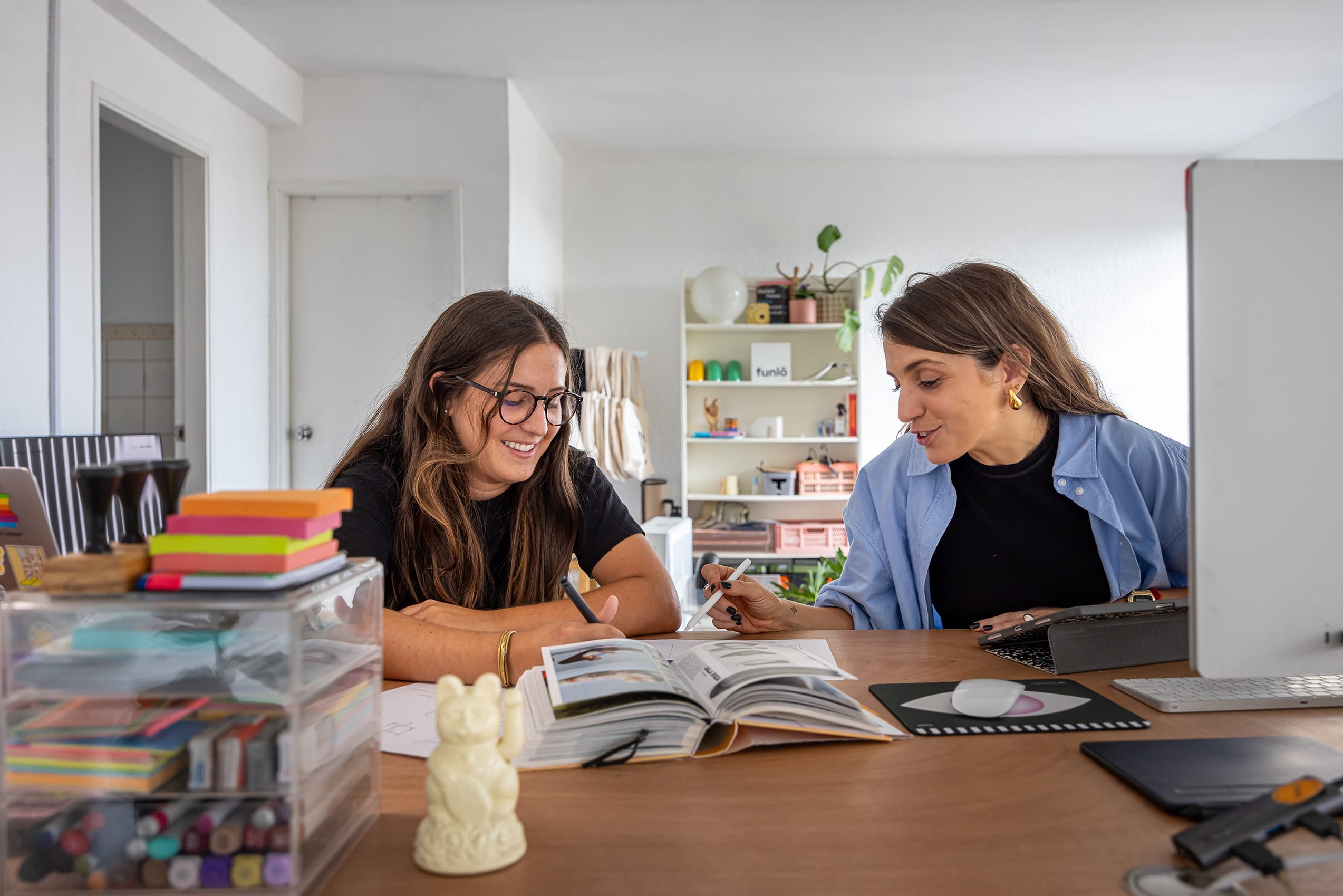 Para comprender los valores detrás de funlō es vital conocer a sus directoras: Marina Cardozo (27) , Licenciada en Diseño Industrial (Universidad ORT) y Flavia Calandria (34) Licenciada en Comunicación Visual (FADU / UDELAR). Ambas nos cuentan que tres años atrás se sorprendieron mutuamente, cuando descubrieron las infinitas similitudes en sus tableros de inspiración de Pinterest. Ambas imaginaron un mundo lleno de color, cuidadosamente curado con claras influencias de la tendencia “Dopamine Decor” (Decoración Dopamina) furor en la red social TikTok. Protagonizada por la mezcla de texturas, paletas de color vibrantes, estampados y mobiliario de autor (nuevo o vintage), esta tendencia honra la búsqueda del estilo personal, y toma por protagonistas a esa parte de la población que comienza a decorar su primer hogar haciéndolo propio: la juventud.