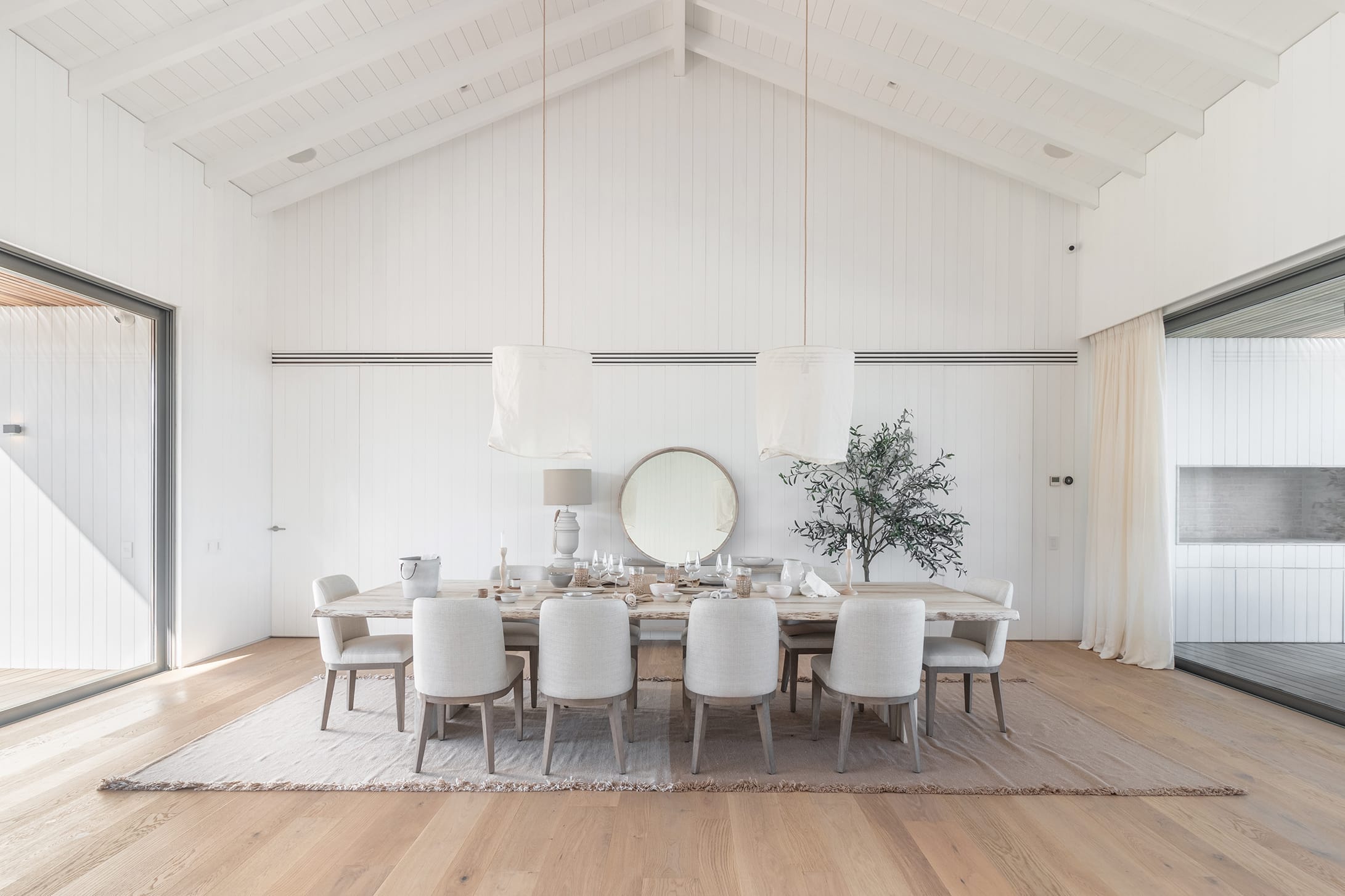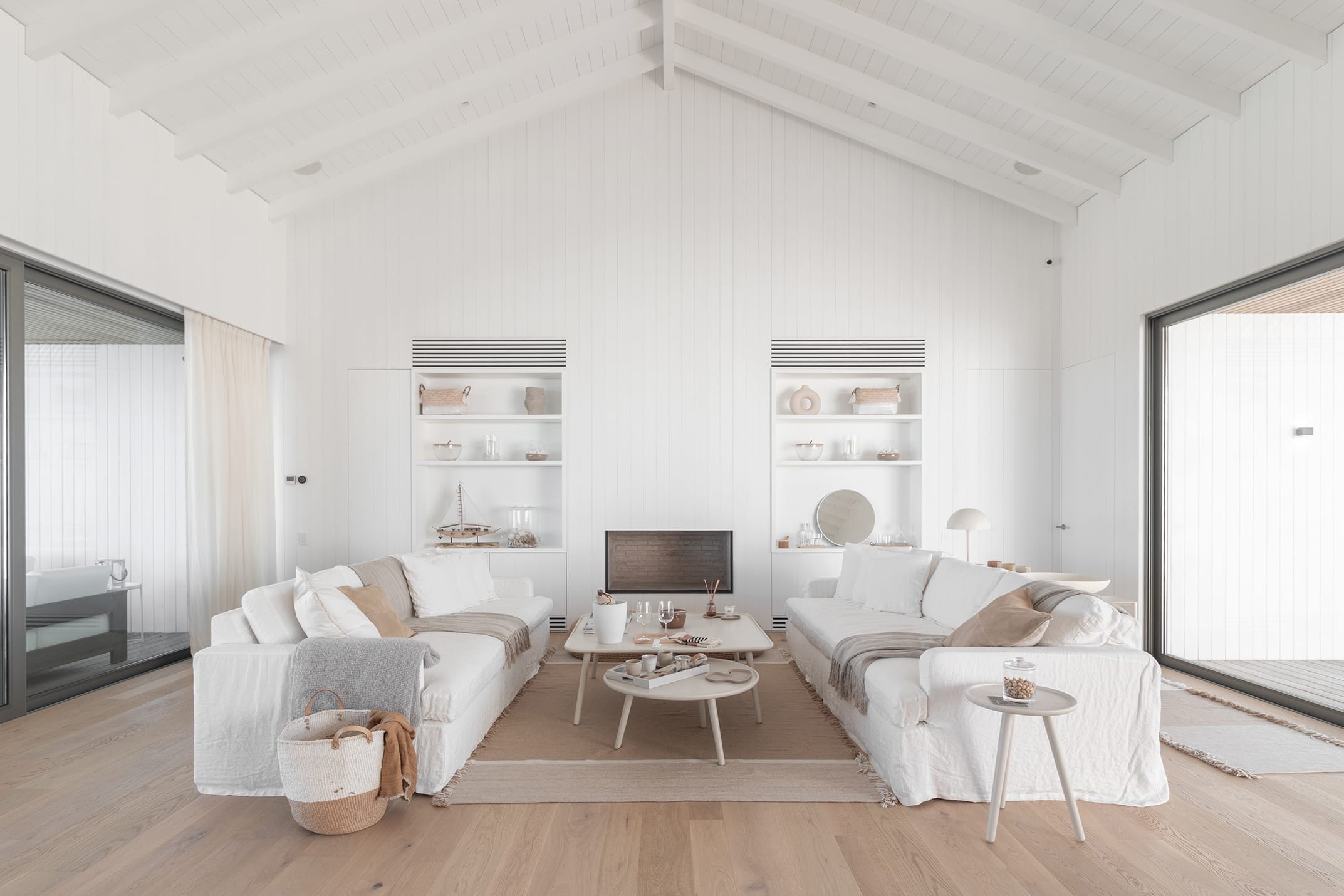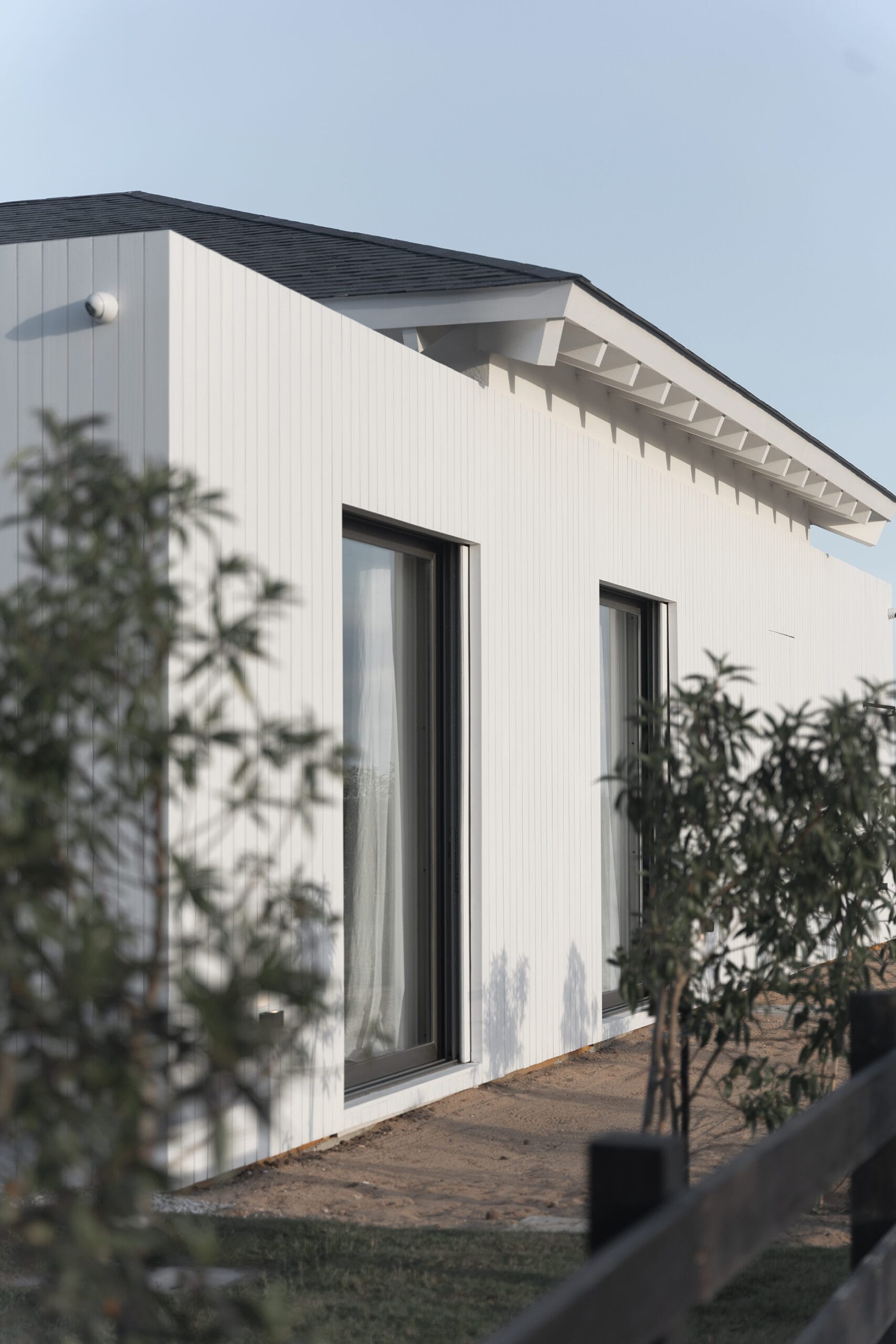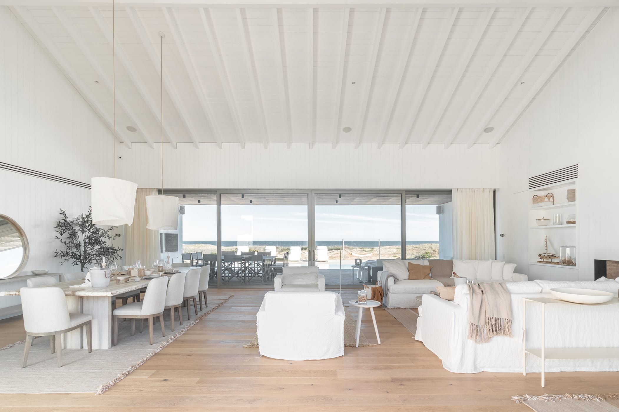 Proyectar en la playa supone todo un desafío que parte de la premisa de cuidar y proteger al máximo el entorno al implantar una nueva construcción y de alguna manera es una oportunidad para desplegar un lenguaje particular. La Bonita es una casa que se diseña inspirada en las antiguas construcciones de los pescadores de la zona. Para ello, se ha utilizado un estilo vanguardista con materiales y texturas nobles como la madera y techos livianos que acompañan el escenario natural. El diseño de la casa es sencillo y sumamente orgánico, con la idea de que sea parte del paisaje y que la naturaleza sea la protagonista. La casa se estructura en una sola planta compuesta por dos volúmenes que se unen entre sí por medio del techo a cuatro aguas. En su diseño se genera un espacio exterior techado y otro interior como ambiente social con sala y comedor, y de esta forma se compone un bloque rectangular que logra forzar el vínculo interior-exterior. Las áreas privadas se distribuyen a ambos lados del bloque. El proyecto es vanguardista y a la vez cuidadoso con el entorno, apela a tonalidades compuestas por colores puros que logran el efecto de el volumen con el paisaje. La casa se integra perfectamente en su entorno natural, generando la sensación visual de haber sido siempre parte del mismo. En el ala central de la casa, con salida a la fachada principal que marca la entrada y salida a la playa en la fachada posterior, se crea un gran espacio abierto que se divide en dos secciones mediante una distribución a partir de los muebles seleccionados diseñados específicamente para este fin. El estilo de la casa es muy puro, con predominancia de tonos blancos que se combinan con revestimientos de madera para crear un ambiente marítimo que conecta el interior y el exterior. El dormitorio principal está ubicado en uno de los laterales de la casa y cuenta con amplias transparencias que permiten disfrutar constantemente del paisaje.