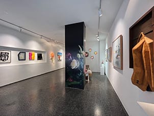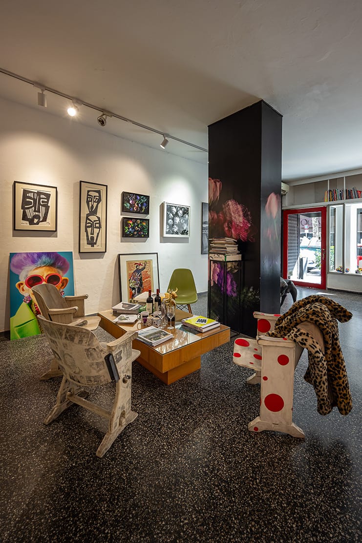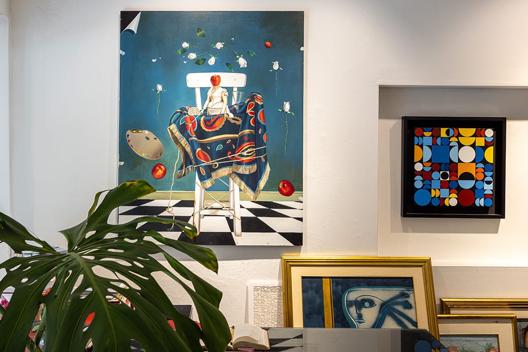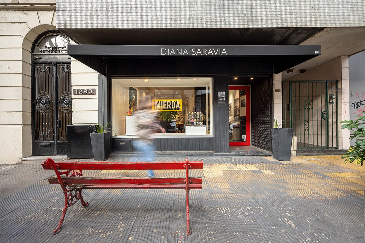 En el año 2005 al observar que un local con mayor visibilidad y más amplio, ubicado frente a su tienda, queda libre, decide ir por él. Entonces se trató de mucho más que una mudanza, al instalarse en el nuevo local comienza una nueva etapa, nace la Galería DIANA SARAVIA, y el taller de marcos queda instalado a los fondos. El vínculo generado con artistas contemporáneos, así como con coleccionistas, su inquietud por conocerlos y profundizar la relación pronto le permitió construir una red que es la que sostiene su labor profesional que ubicamos a mitad de camino entre galerista y marchand. Esto es comercializa obras de arte, para lo cual monta exposiciones y atrae coleccionistas y nuevos compradores, pero a la vez promueve algunos autores, divulga su obra y defiende sus cotizaciones en un mercado cada vez más chico y avaro. La fachada de su galería nos recuerda los frentes comerciales de Hopper, es limpia y ordenada y destaca por un gran ventanal que oficia de vidriera y exhibe por estos días obra erótica. Tres piezas de Fernando Olivieri que exhiben ejemplos de lo que Diana denomina botánica erótica, varias piezas en resina de Juan Perazzo que exhiben falos que se levantan sobre pequeños jardines que por momentos parecen vello púbico.