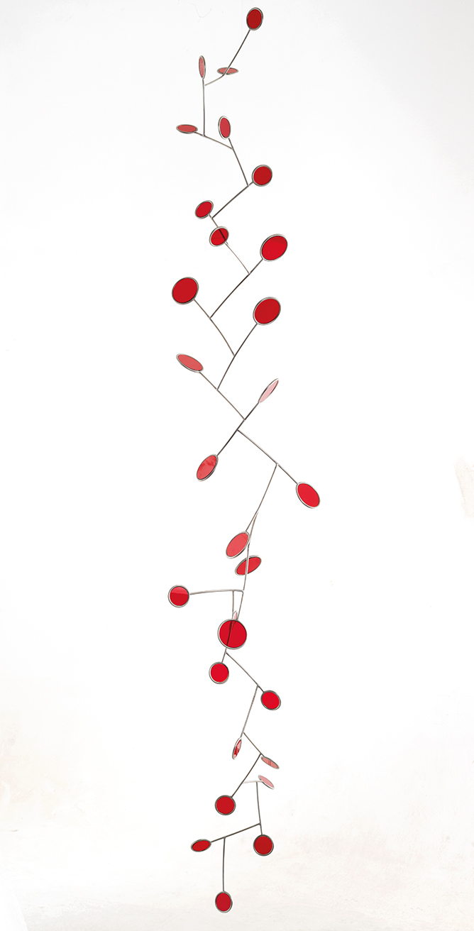 Dentro de la tradición de la escultura abstracta colgante —desarrollada por las vanguardias del siglo XX y expandida por artistas latinoamericanos—, la obra de Genta se inscribe en la exploración de la espacialidad dinámica, concepto señalado por el curador francés Matthieu Poirier, como aquellas creaciones que desafiaban la gravedad, sus esculturas translúcidas incorporan pequeños espejos que proyectan sombras y destellos, interactuando con su entorno de manera sutil y cambiante.