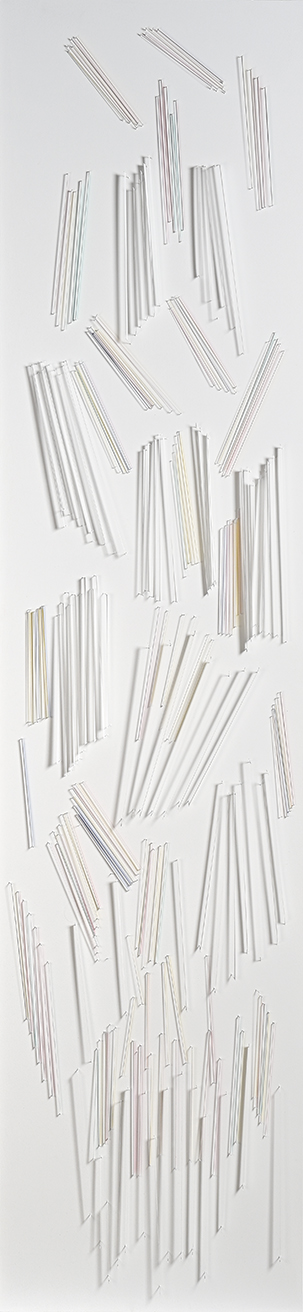 El trabajo de Gustavo Genta es un entramado de múltiples influencias, registros y aproximaciones que exploran la forma y las posibilidades expresivas de los materiales. Su obra se configura como un sistema de signos, un lenguaje propio que le permite transitar distintos soportes, medios y formatos sin perder la coherencia estilística que lo distingue. En diálogo con la arquitectura, sus piezas la enaltecen y, al mismo tiempo, la subvierten de manera no trivial, expandiendo los límites de los espacios habitables con juegos monocromáticos y efectos lumínicos que abren nuevas dimensiones sensoriales. El método de producción de Genta está marcado por su formación en diseño industrial y su inclinación hacia procesos de fabricación racionales y optimizados. Su trabajo combina la precisión técnica con decisiones intuitivas y emocionales, logrando un equilibrio entre la sistematización y la expresión artística. Sus investigaciones estéticas desembocan en nuevas formas y en lo que él denomina “familias de trabajo”: conjuntos de piezas que comparten principios técnicos y formales, generando un universo en constante evolución.