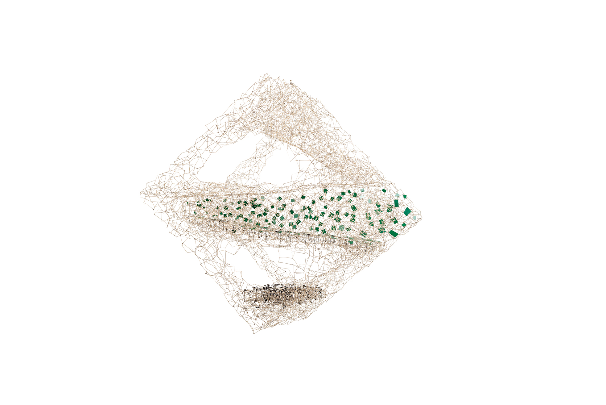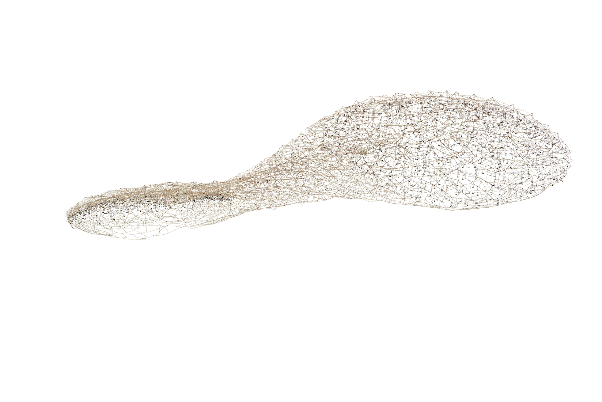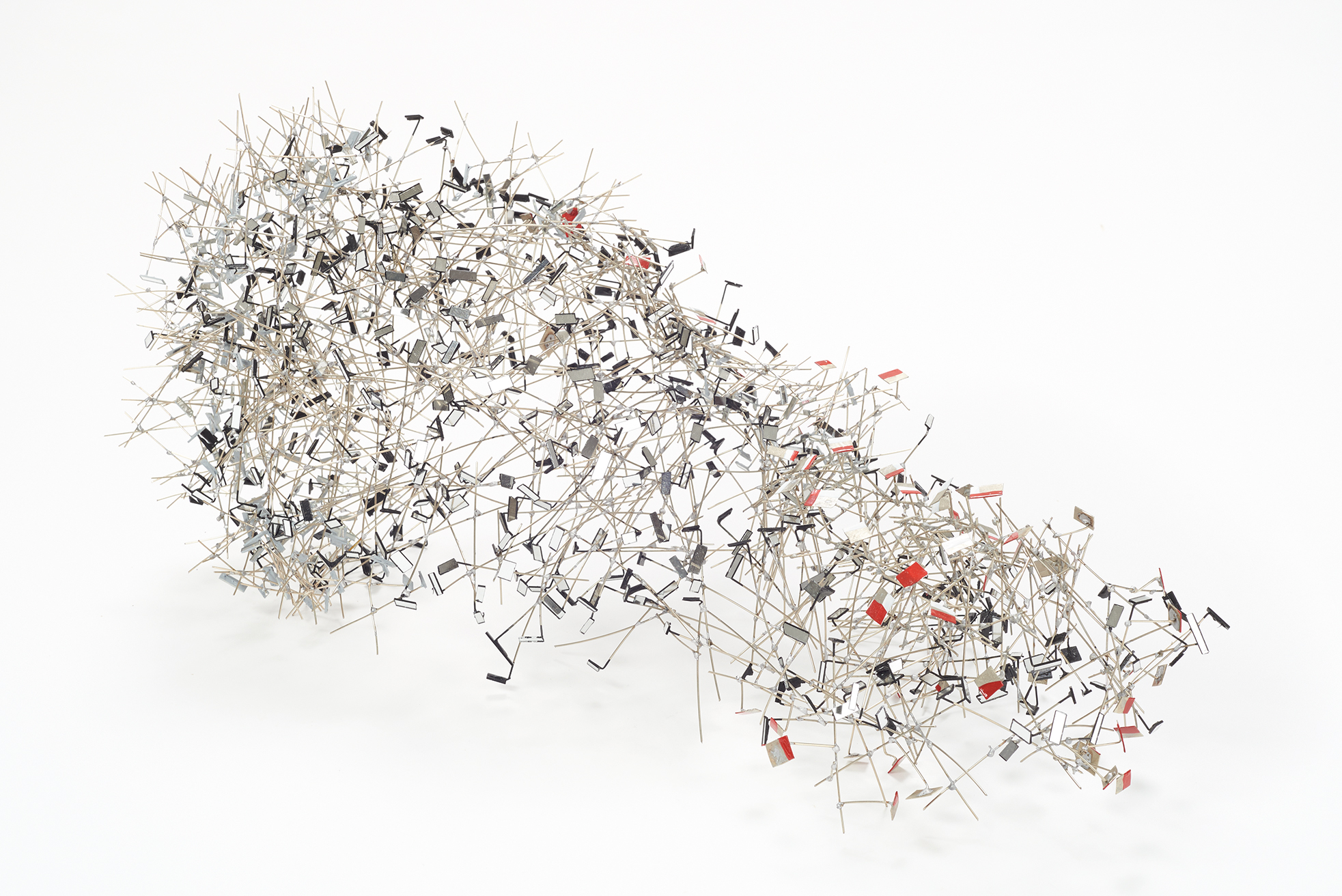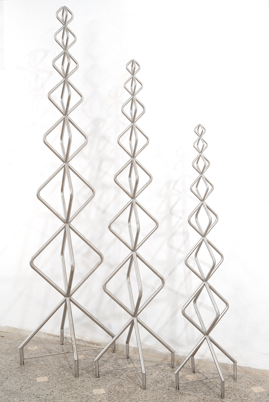 Su proceso creativo es, en esencia, una exploración constante. Sus piezas emergen de un diálogo entre materialidad, técnica y concepto, dando lugar a nuevas posibilidades expresivas. En este flujo continuo de producción, sus esculturas parecen levitar con una elegancia austera, sin pretensiones herméticas ni referencias directas a lo natural. Son formas autosuficientes, cuya presencia genera una gratificación inmediata en el espectador.