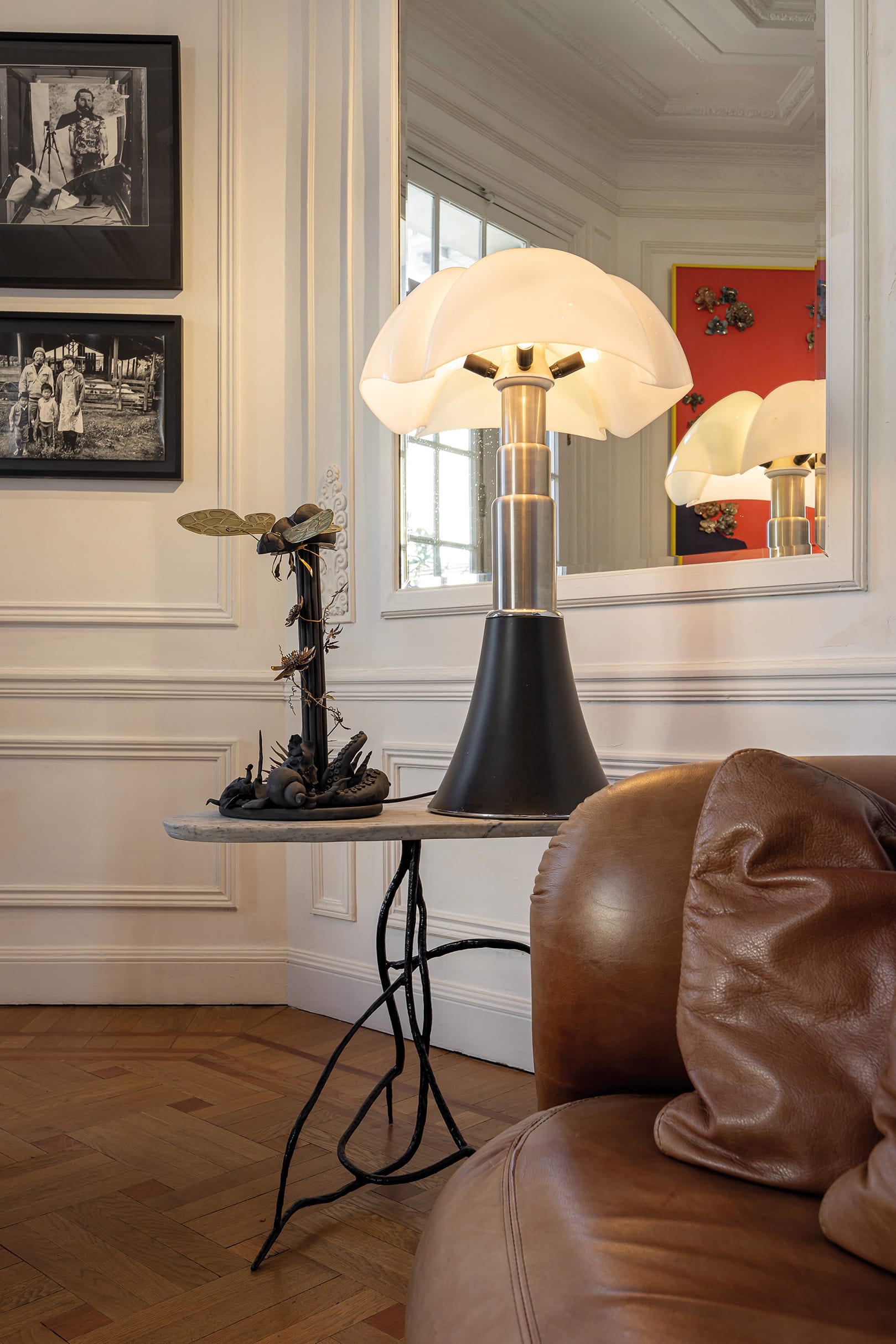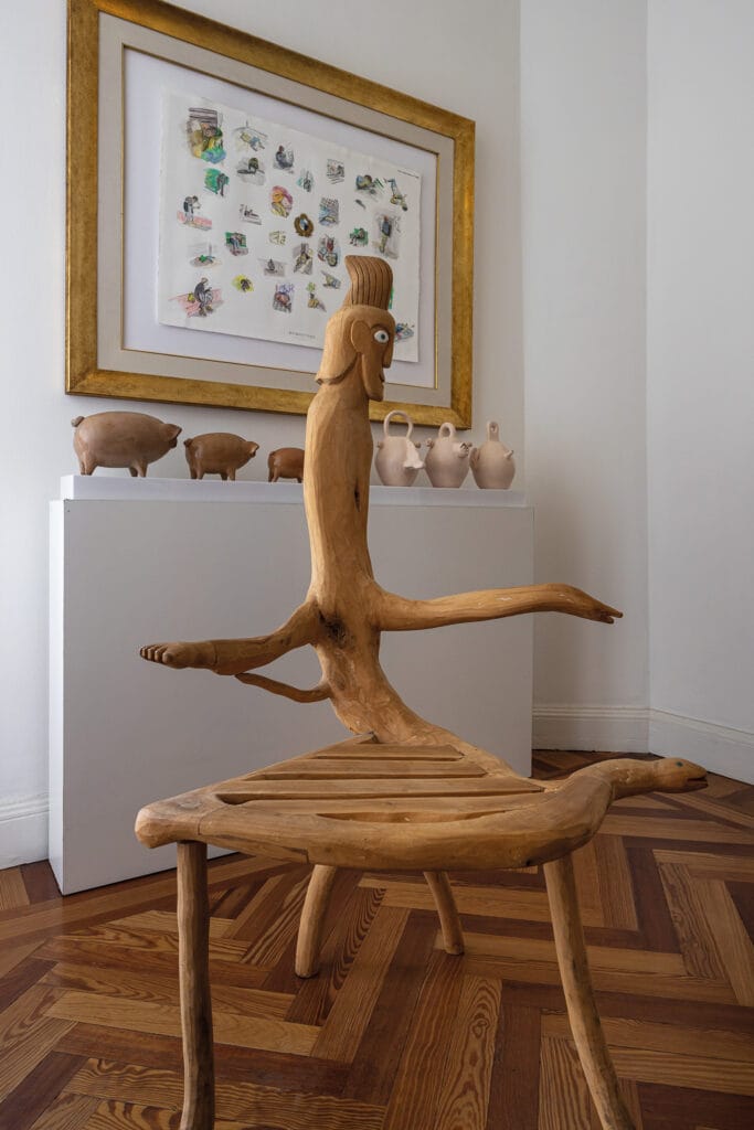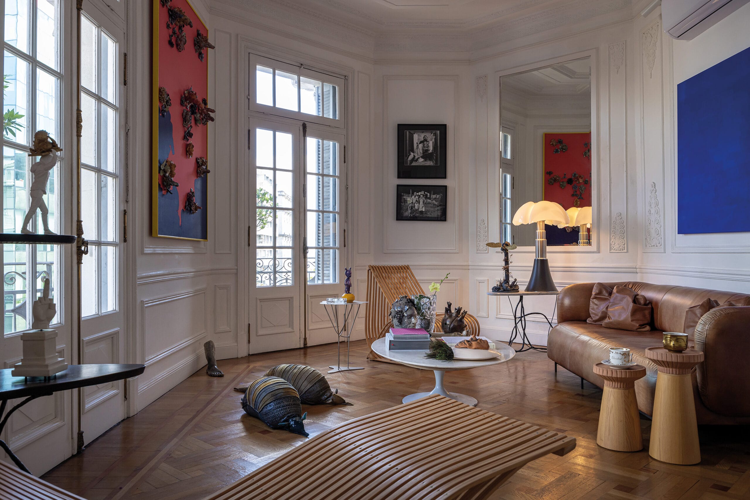 El apartamento de Ramiro es un reflejo de su identidad. “Lo justo, lo necesario, como lo que soy. No es un copy-paste. Se trata de un eclecticismo cuidado, generando una armonía visual sin saturar. No hay objetos superfluos. Es interiorismo sin pretensiones. La impresión ya se da por la caja arquitectónica, es el lienzo sobre el cual trabajo”. En su rol de diseñador de interiores y escaparatista, concibió su apartamento como una escenografía.
