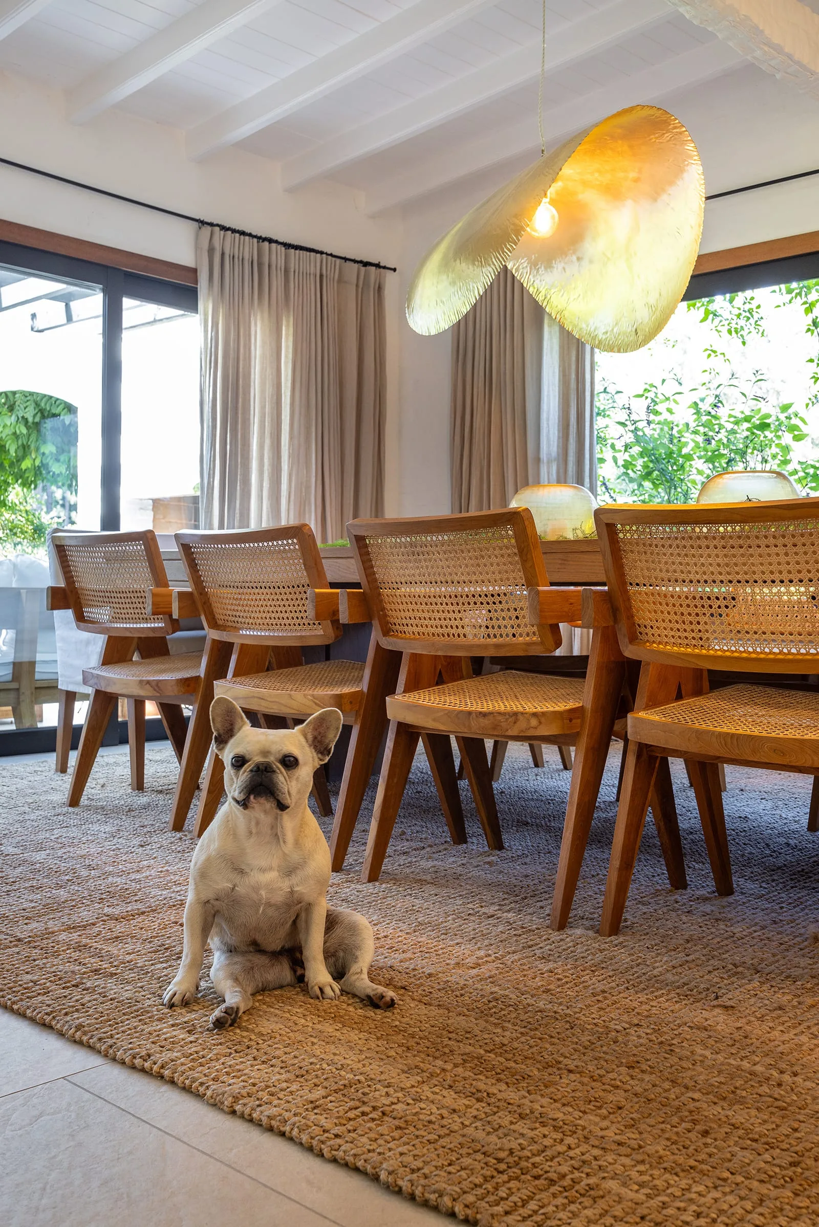 Cada ambiente es un ensayo de armonía: desde un dormitorio infantil con techo empapelado hasta un estar diario con biblioteca de roble y luminarias de Bernard Albin Gras. El comedor, con luminaria de Vibia traída desde España, es puro carácter. Una casa pensada para disfrutarse, donde cada rincón cuenta una historia.