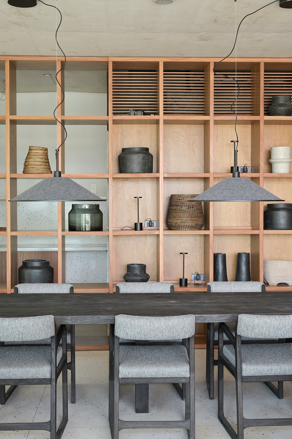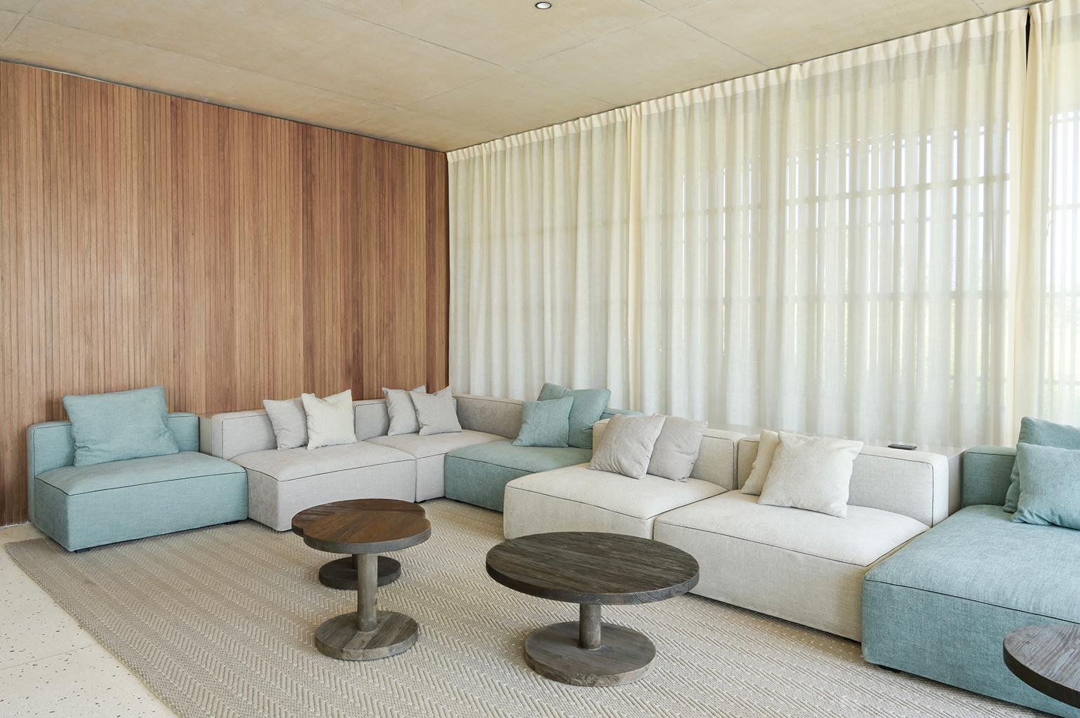 El diseño de interiores, a cargo de la diseñadora María Clara Guerra y la Arquitecta María Noboa, eleva la experiencia residencial, convirtiendo los espacios comunes en áreas vivenciales de altísimo nivel. Guerra y Noboa desarrollaron una propuesta que rompe con la tradicional segmentación entre los espacios compartidos y la vida privada, consiguiendo una transición fluida y natural entre ambos. Inspiradas en la noción de que estos ambientes pueden y deben sentirse como una extensión de la vivienda, concibieron una serie de espacios que invitan a los residentes a apropiarse de ellos de manera personal y a experimentar una conexión emocional con cada área.