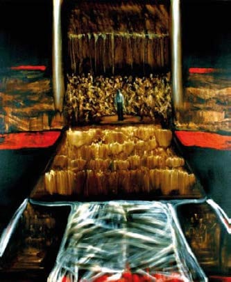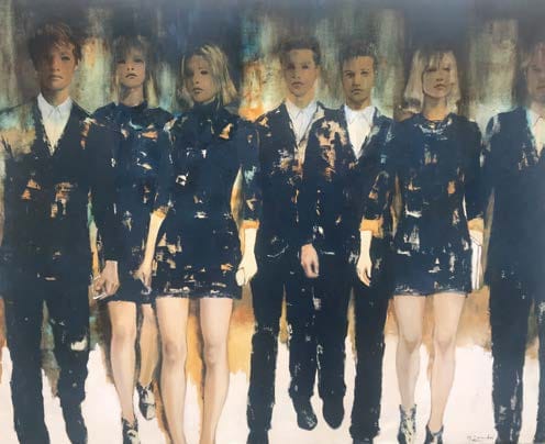 …mi experiencia en los Estados Unidos fue intensa, junto a mi esposo recorrimos el país de costa a costa con la idea de afincarnos en California, donde llegamos exhaustos. Allí rápidamente conseguí una Galería que se interesó por mi obra y comencé a enseñar arte en escuelas locales. Pero la verdad, no terminé de adaptarme al régimen de vida del país, con lo cual luego de tres años, en 1983, decidimos regresar a Montevideo. Entonces retomé el contacto con Pablo Mark, en Galería Latina, llevaba años intentando incorporar mi obra a su catálogo, hasta que se dieron las condiciones y por cierto me fue muy bien. Los retratos y las escenas tangueras que entonces me motivaban, impregnadas de rojo y un fuerte contenido emocional alcanzaron una buena demanda. Pero llegó un momento en el que sentí que debía atender otras inquietudes que ya comenzaban por aflorar en mí. La necesidad de contar otras historias me llevó a tomar la decisión, en medio de un momento de mucho éxito en las ventas, de interrumpir esas series, dedicar tiempo a la reflexión y abordar otra etapa…