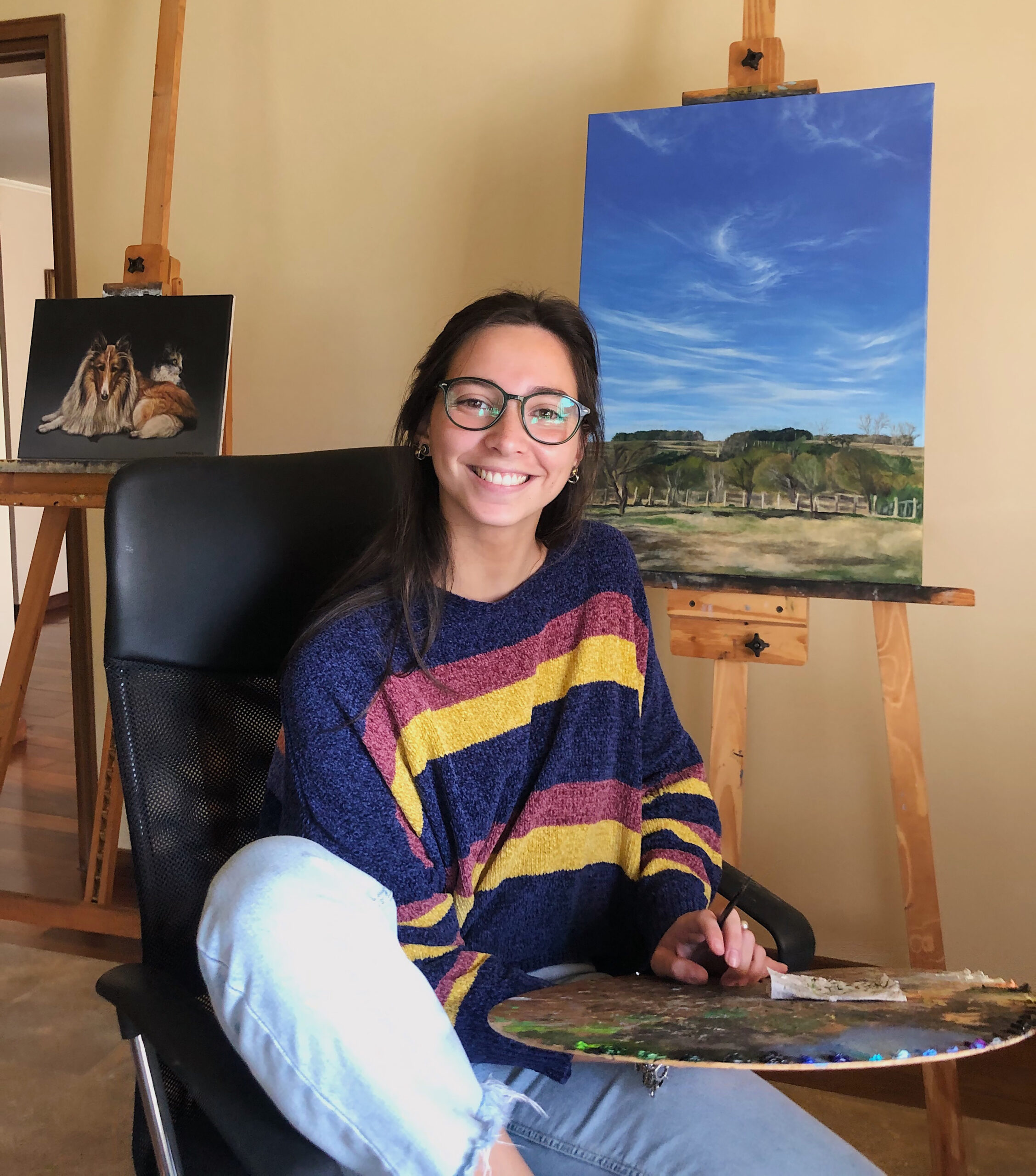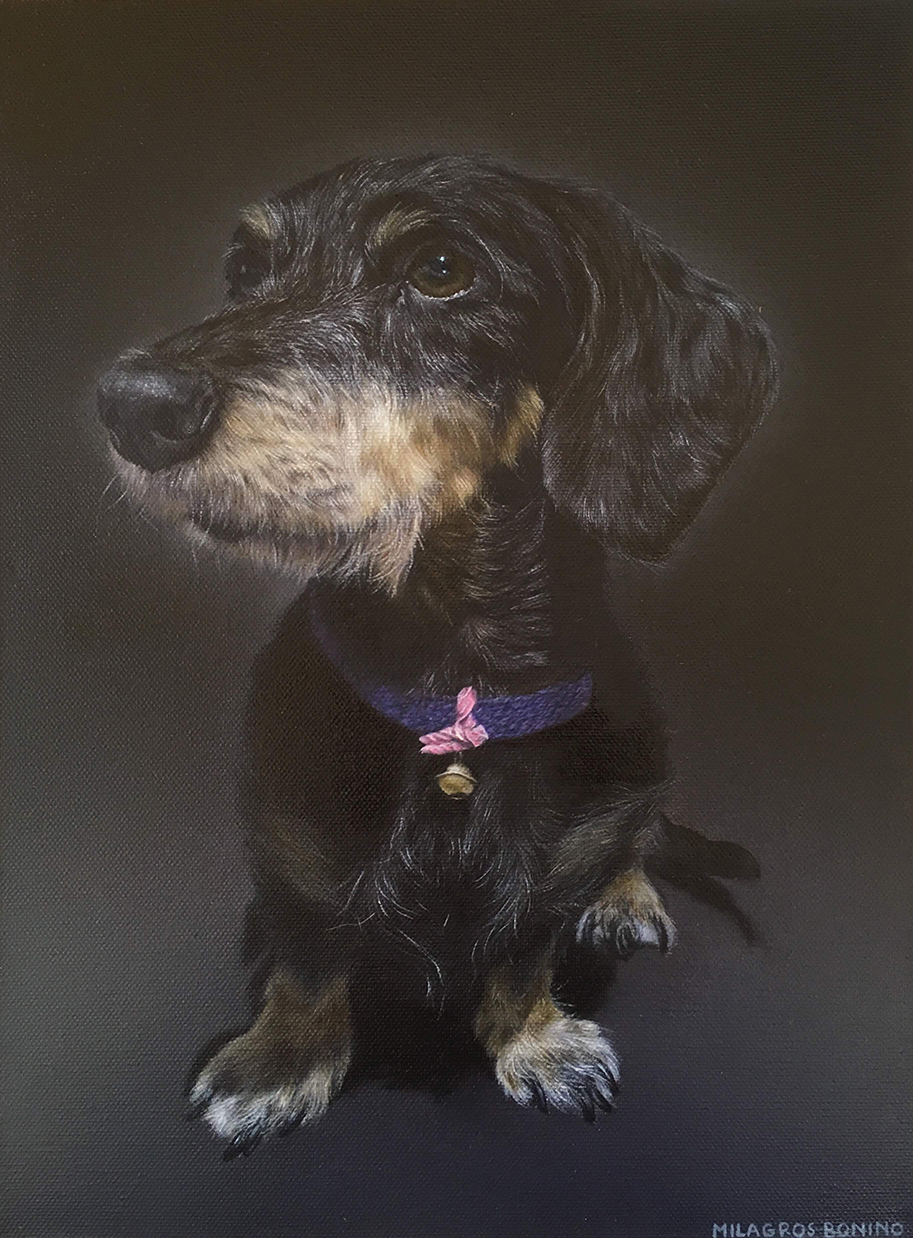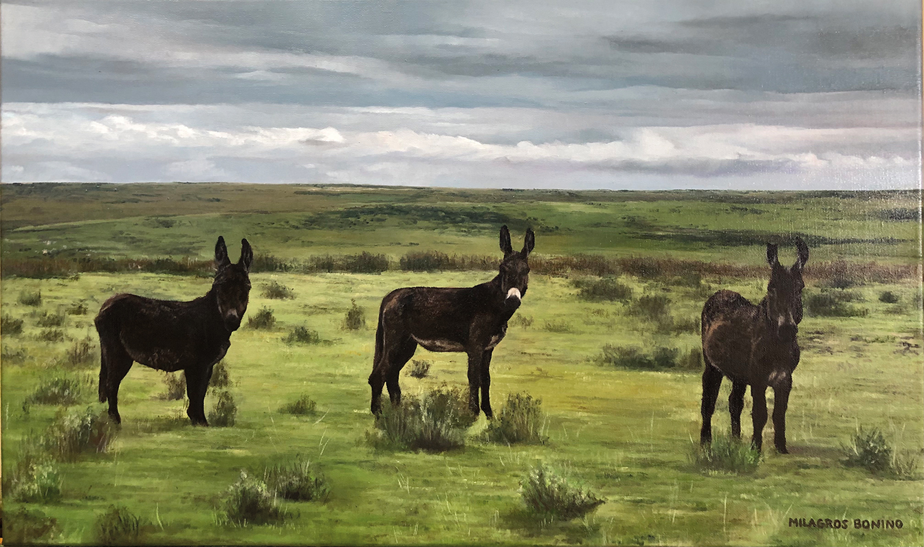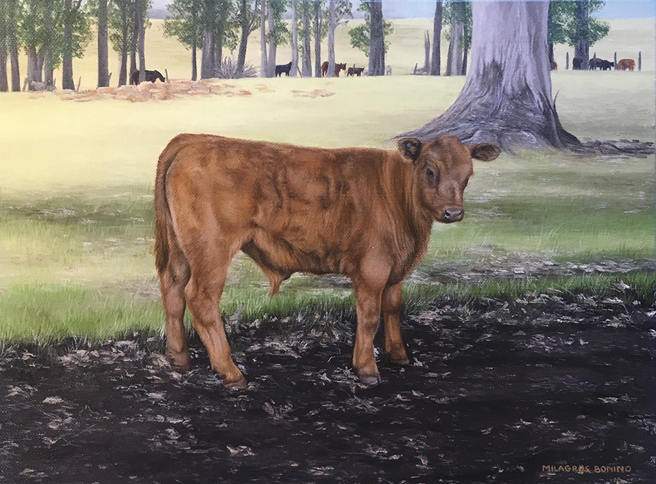 Cuando el alma guarda inquietudes singulares, esas que suelen ir más allá de lo normal, surgen miradas que penetran la realidad para llegar hasta lugares reservado para pocos. Si además esa alma cuenta con talentos que son educados y desarrollados con rigor el resultado logra aquello que es tan difícil, conmover al observador que solo toma nota de los resultados. Milagro, como su nombre lo indica. Su obra llamó mi atención de inmediato, allí había algo que no podía describir, precisar. Se trataba de una pesquisa arbitraria, detenerme a contemplar su obra resultaba entonces un ejercicio rutinario sin mayores expectativas. Grande fue mi sorpresa cuando frente a las obras experimenté esa sensación de contacto que va más allá de la simple apreciación de formas empáticas. Con apenas veintitrés inviernos, Milagros Bonino me sorprendió con su obra con la que el contacto es directo y como un disparador divino me lleva hacia otras inquietudes, por lo pronto en lo inmediato, conocerla. Su taller tiene luz solar. Mucha luz solar; al ingresar un pequeño hall se convierte en atrio y al demorar mi llegada, con apenas tres obras enmarcadas con orgullo me prepara para lo que sigue. Son trabajos de Milagros, cuando apenas contaba ocho años. El taller ocupa un sector en la casa de su abuela y todo presenta un orden particular en el que la mano ancestral se hace evidente. Contra la idea general que todos alimentamos acerca del espacio de trabajos de los artistas, aquí el orden y la limpieza dan cuenta de método, constancia y concentración extrema, elementos presentes en la obra de Bonino. Cuando me encuentro con personajes como Milagros Bonino siempre me cuestiono acerca de la naturaleza de las cosas y entonces para tranquilizarme simplifico al asumir que nacieron así, destinadas para contar cosas de una manera especial. Es entontes que sospecho que Milagros nació artista plástica y asumo que el dibujo y el color siempre han estado presentes en su vida. Al escucharla me corrijo, ha dudado, ha luchado y ha triunfado.