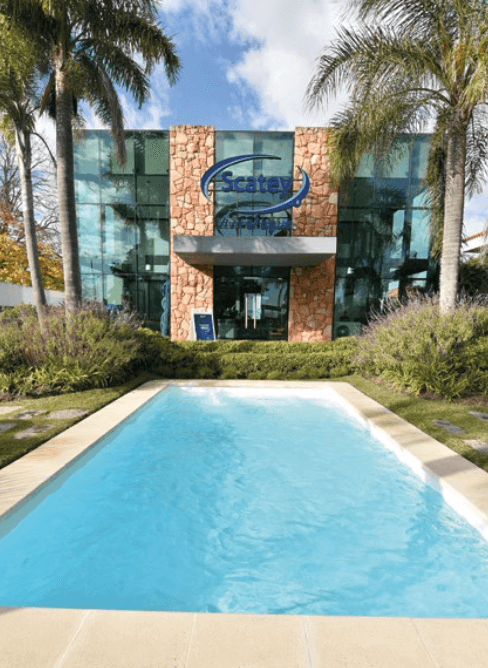 Las piscinas pasaron de ser una obra compleja de arquitectura a un espacio destinado a la recreación en constante avance, principalmente gracias a los materiales con que hoy en día se elaboran. SCATEY, la empresa fundada por Fernando Cabral en el año 1991, referencia en la fabricación y mantenimiento de piscinas de fibra de vidrio, ha recorrido el largo camino que llega hasta la fabricación de los moldes y la realización de diseños a medida, con lo cual, costos, tamaños y posibilidades se abren para alcanzar a todos los que sueñan con tener una piscina en casa. Importa saber que a la fecha SCATEY ya cuenta con más de 3000 piscinas instaladas a lo largo y ancho del país.