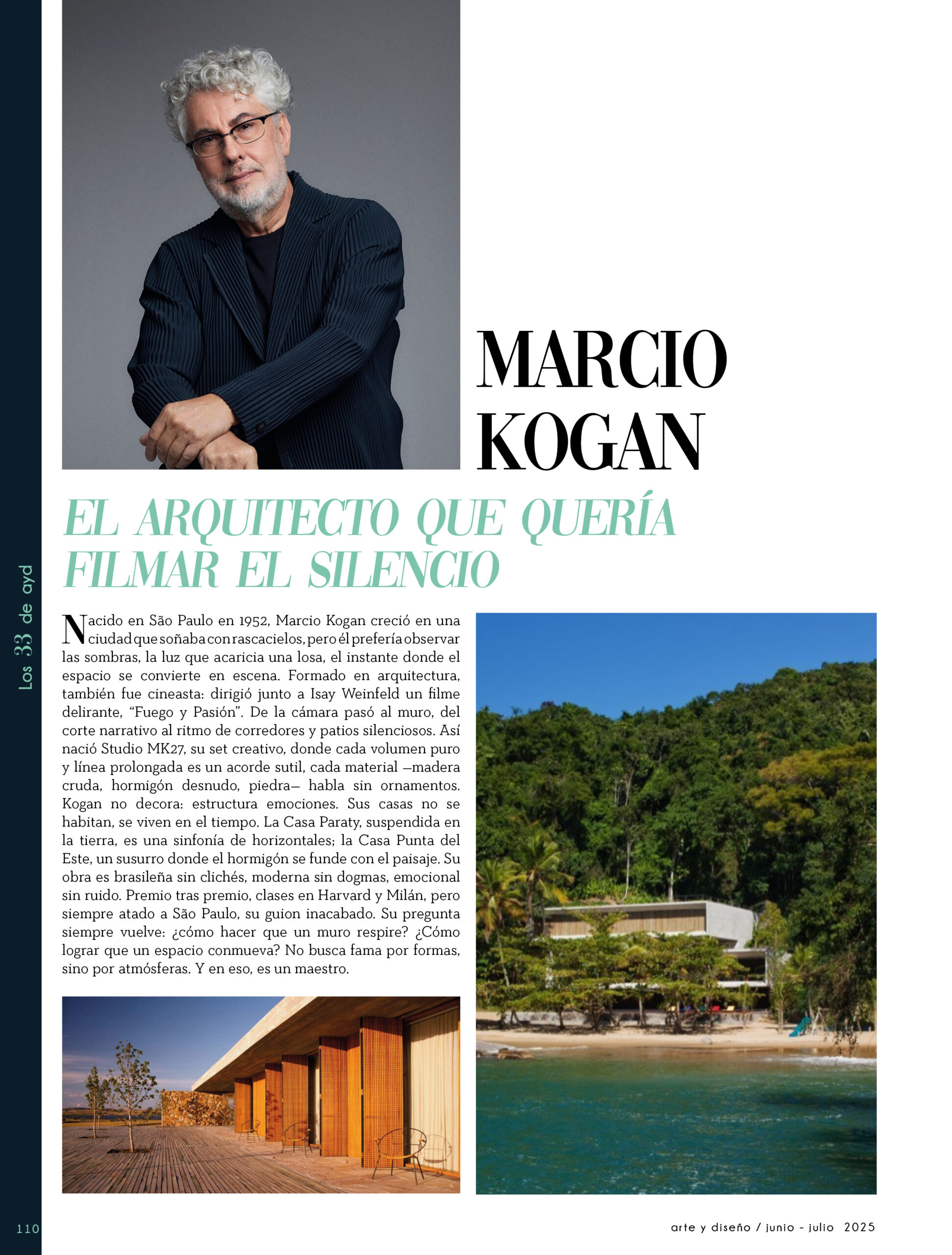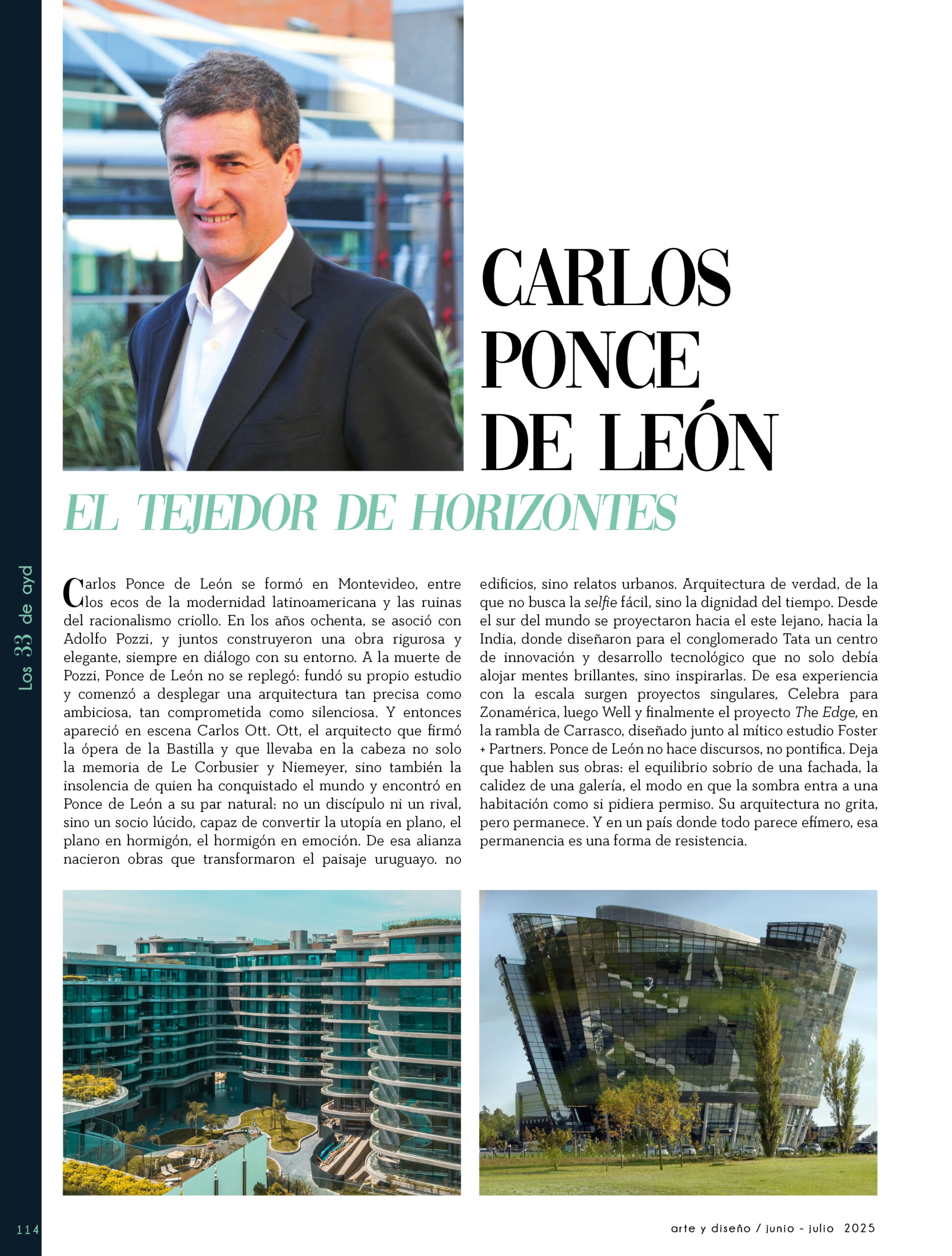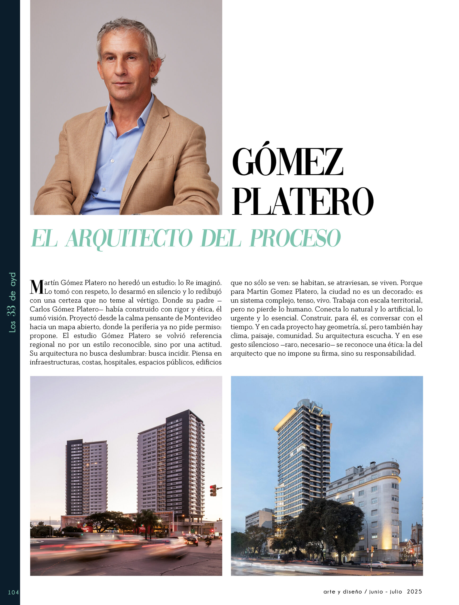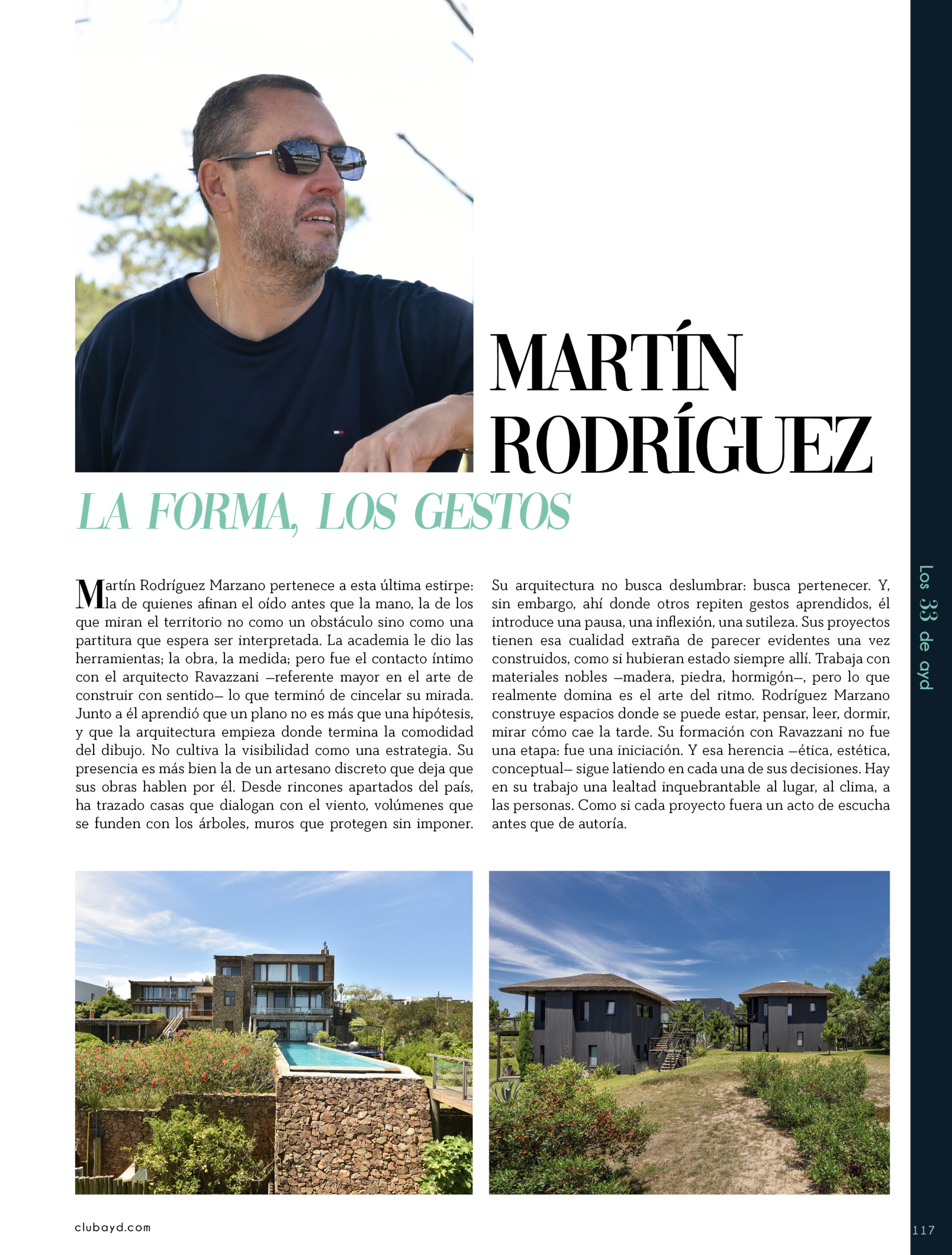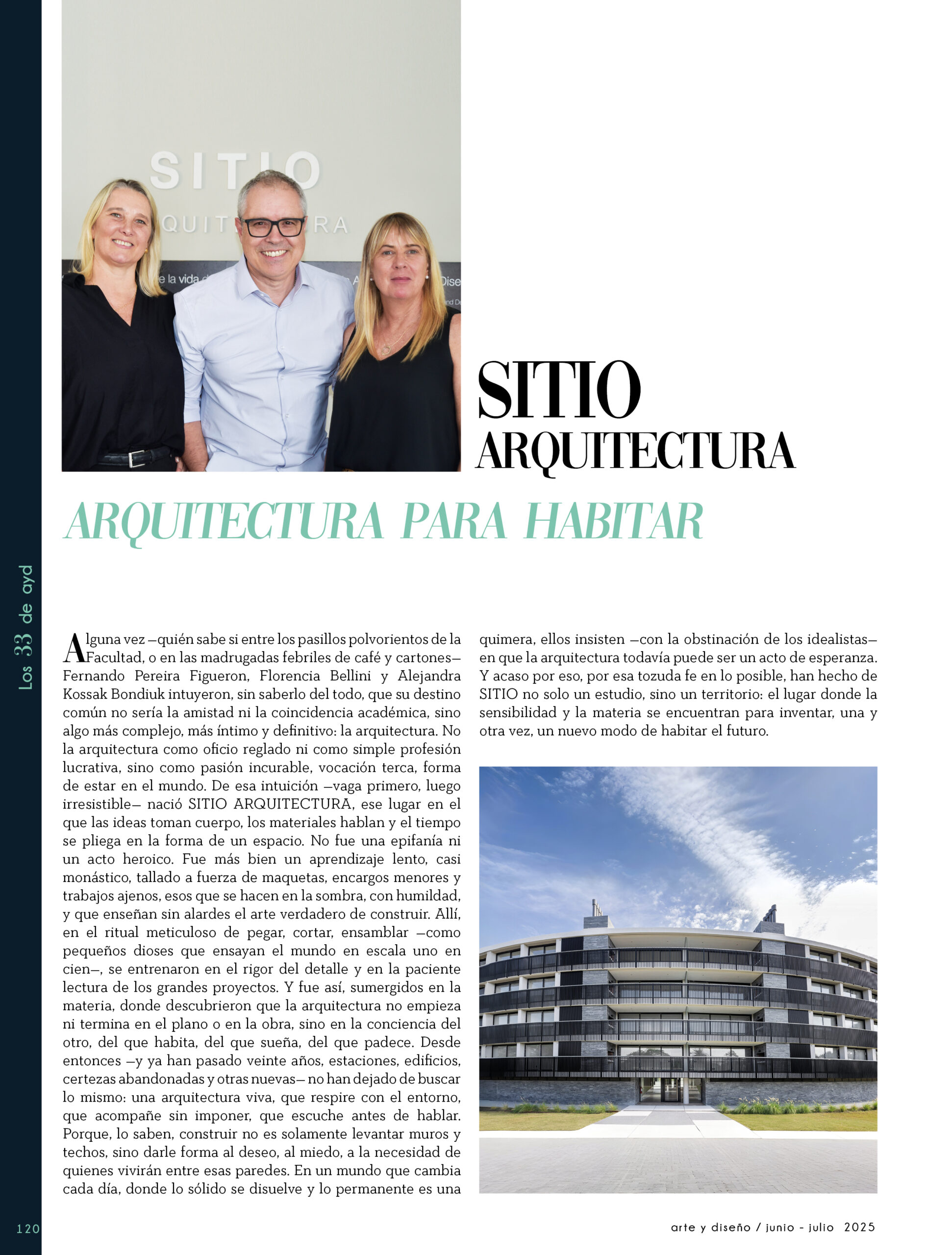 Dicho así, parece apenas un número entero. Pero cada uno de esos años tuvo su forma, su textura, su ritmo. Y juntos hacen una historia, la piel de esta revista, que es la nuestra. Prácticamente nací con ayd. Mientras otros aprendían a caminar, yo aprendía a reconocer un buen papel, a oler la tinta fresca, a distinguir una foto. Crecí entre planos, conversaciones sobre arquitectura y diseño, y viajes por casas que todavía no existían. Mi padre, fundó esta revista sin saber que estaba sembrando algo mucho más grande que una editorial, se trataba de una manera de mirar, de entender, de contar la arquitectura y el diseño en Uruguay. No como espectadores, sino como testigos y protagonistas de un tiempo que cambia —y que también nos define. Hoy, al cumplir treinta y tres años, siento que ayd ya no nos pertenece solo a nosotros. No es solo de mi padre, ni mía, ni de nuestra familia. Es de todos los que alguna vez encontraron en sus páginas una idea, inspiración, un gesto que les abrió un camino, una idea. Es de quienes entendieron que ayd habla y cuenta de cómo elegimos habitar el mundo. Por eso elegimos este título. Treinta y tres. Lo que el tiempo nos enseñó, es un acto de gratitud. El tiempo nos enseñó a escuchar antes de opinar. A mirar con atención antes de afirmar. A editar con respeto. A saber, que el diseño es forma, sí, pero también es cultura, identidad y memoria. Es una sinergia entre lo que fuimos y lo que está por venir. Porque la historia no es algo que se archiva: es algo que se vive, se revisa, se proyecta. Y aunque aprendimos mucho, sabemos que lo mejor aún está por descubrir, nuevas generaciones, nuevas formas de habitar, nuevas preguntas, nuevas plataformas para contar lo que vemos. Y en ese camino hacia lo que viene, elegimos detenernos un instante para mirar con atención lo que fuimos y lo que somos.