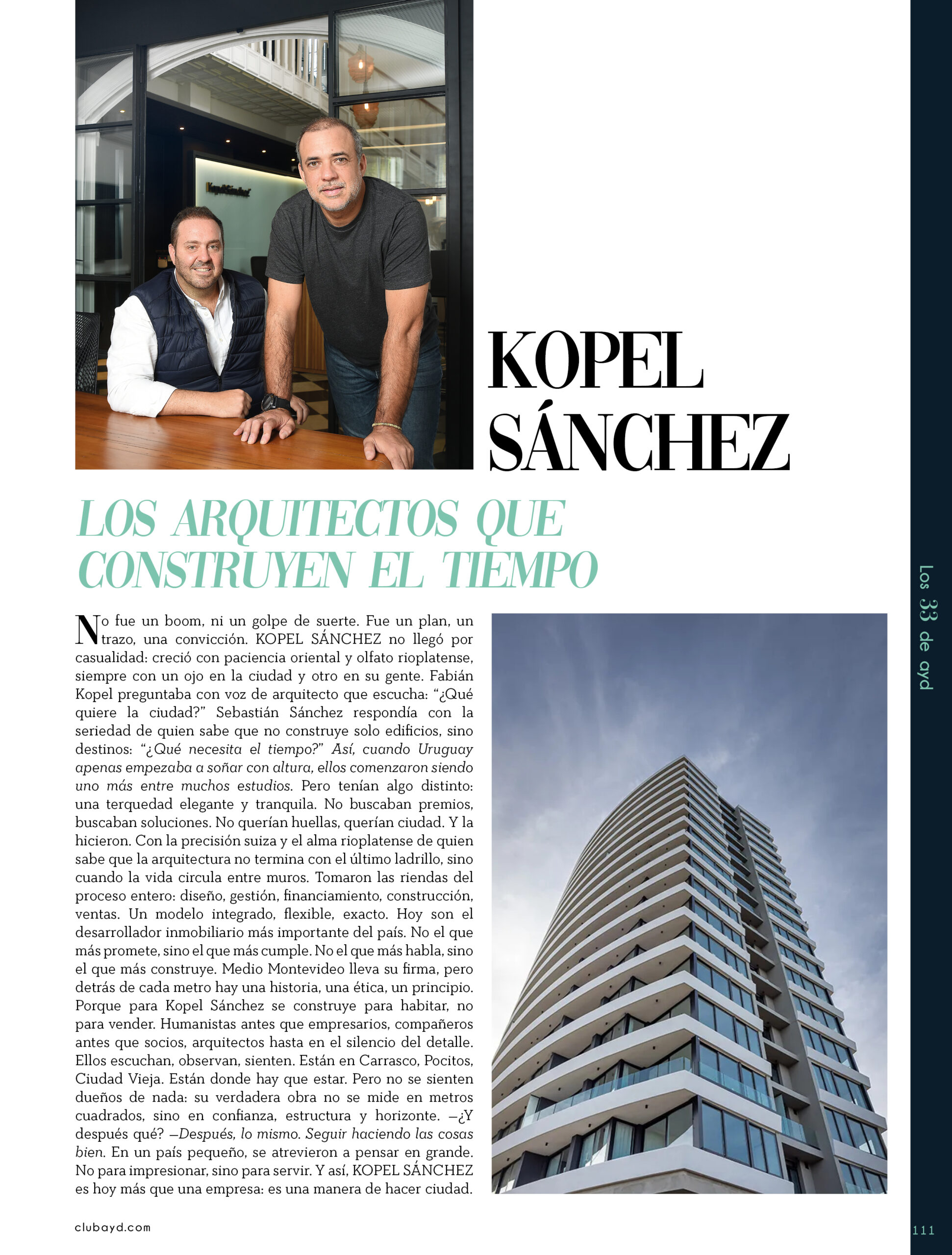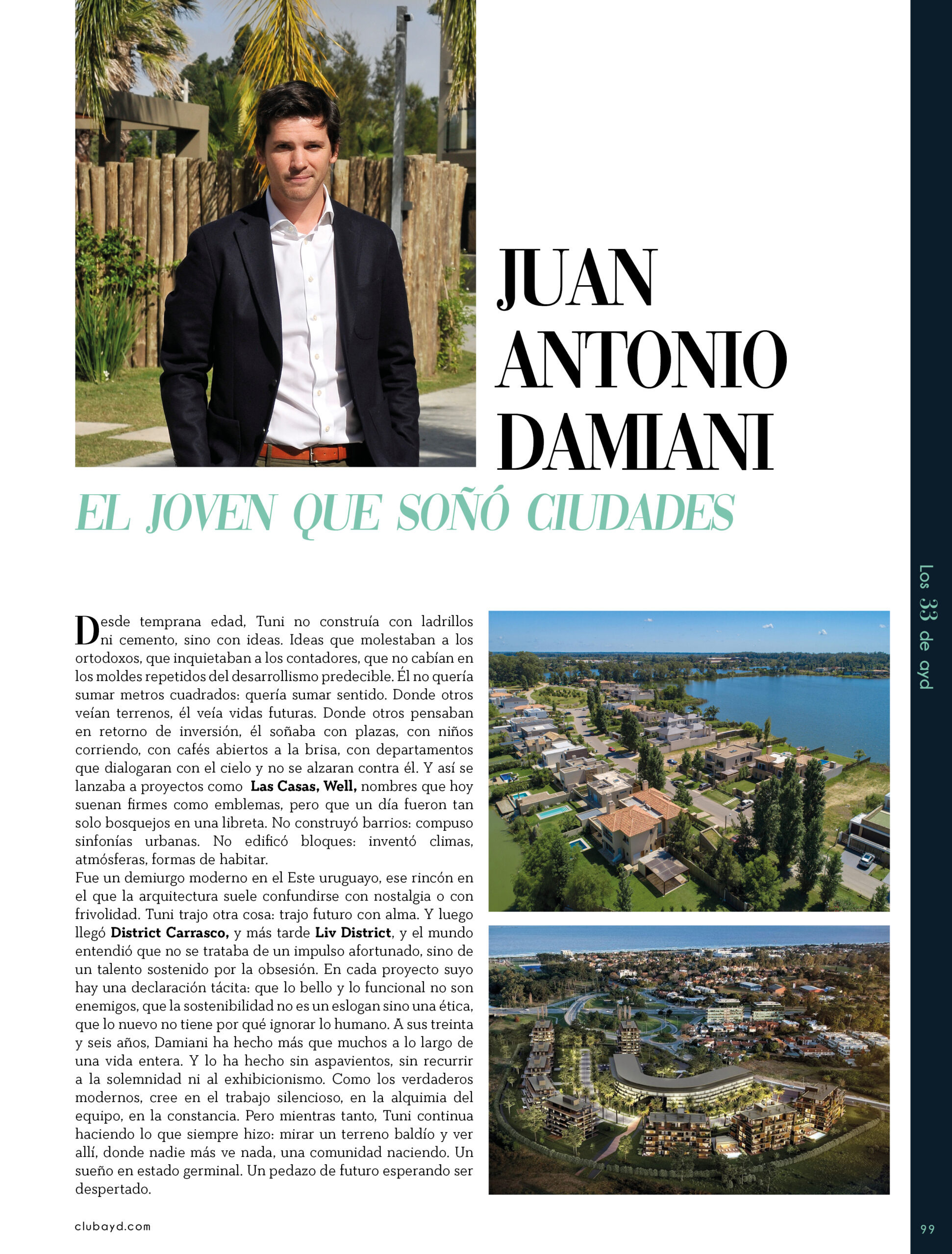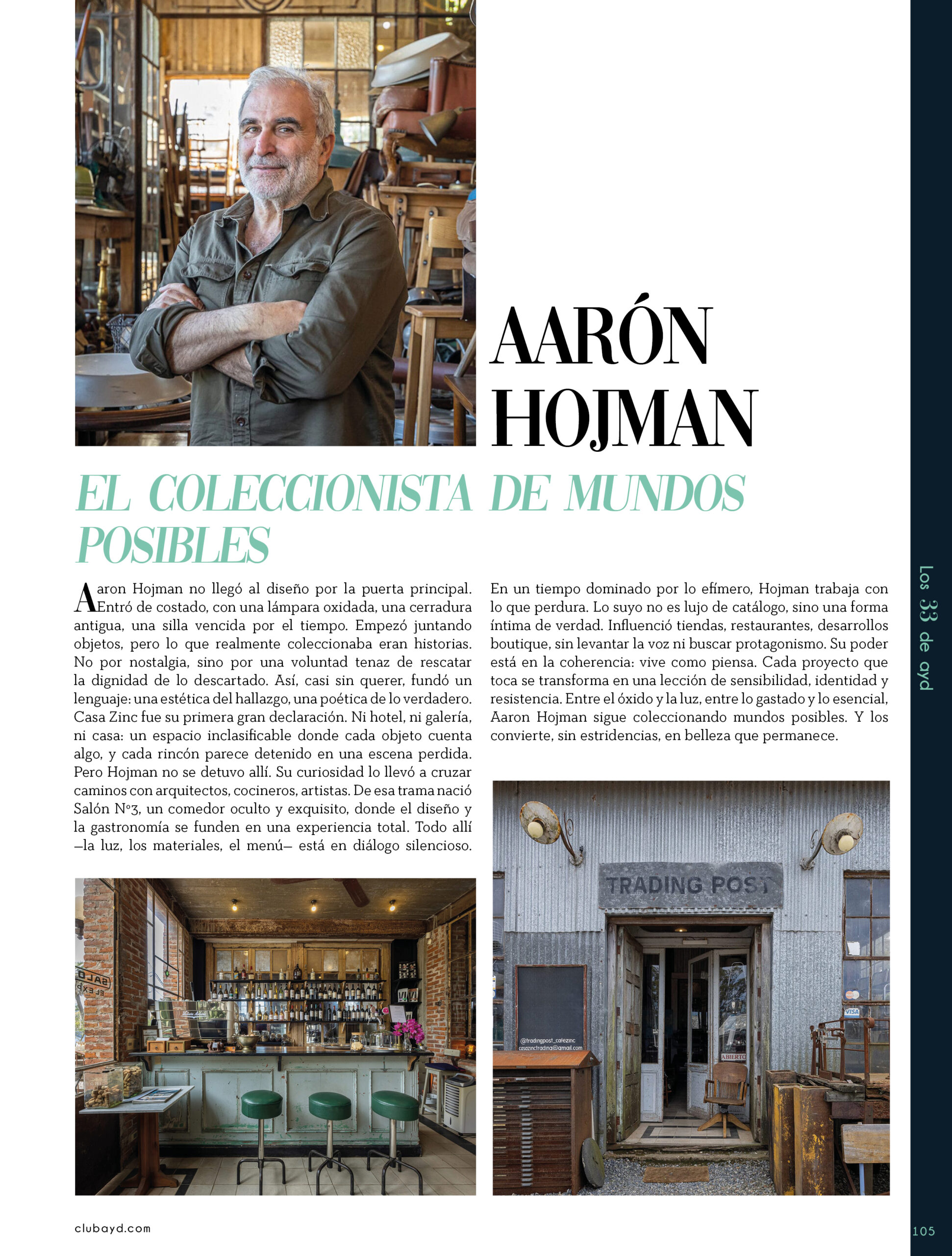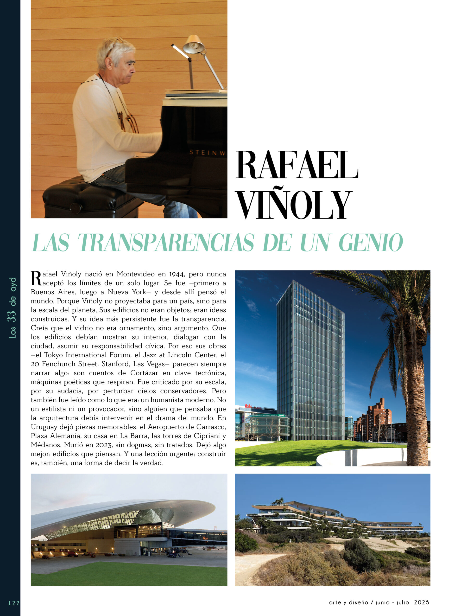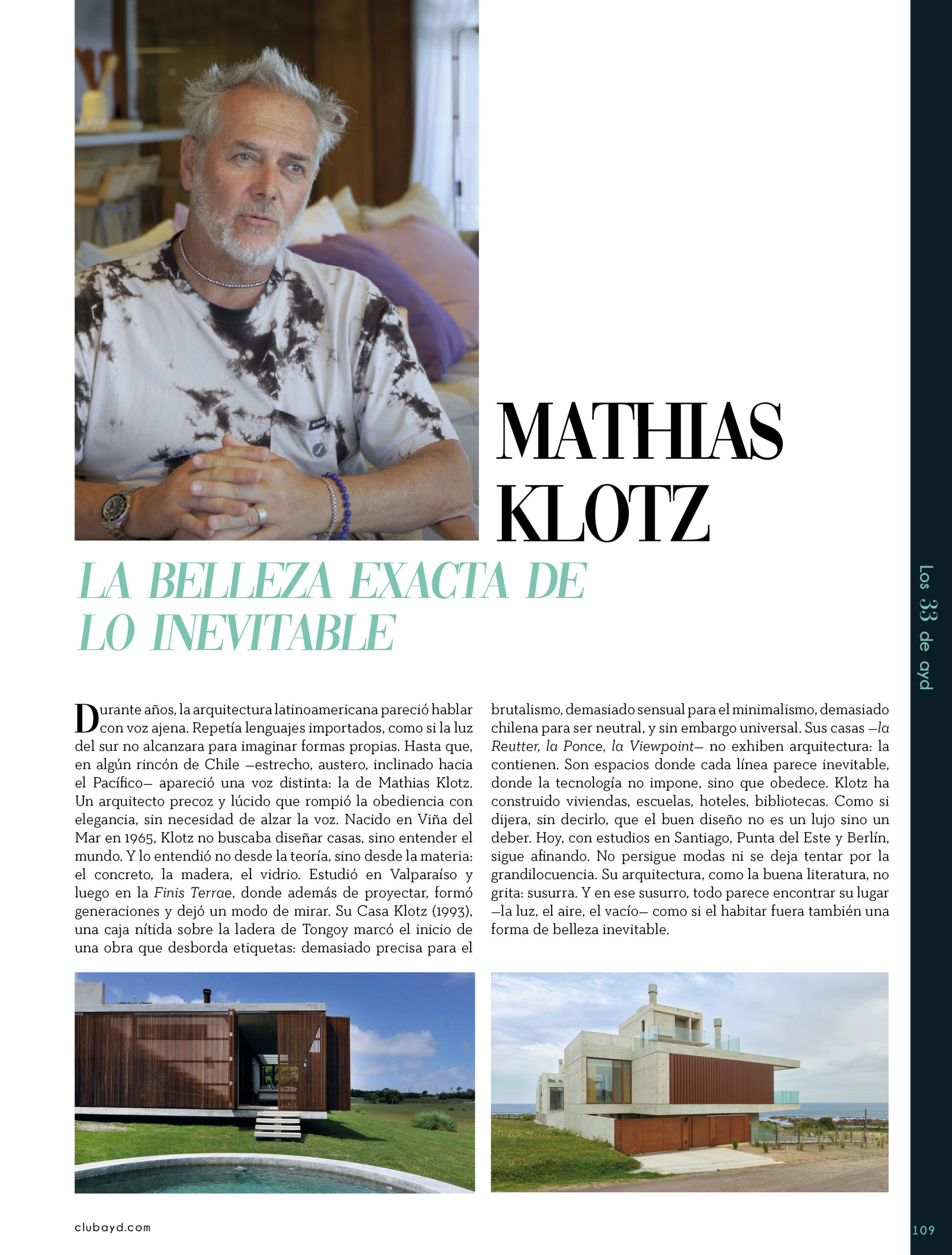 Dicho así, parece apenas un número entero. Pero cada uno de esos años tuvo su forma, su textura, su ritmo. Y juntos hacen una historia, la piel de esta revista, que es la nuestra. Prácticamente nací con ayd. Mientras otros aprendían a caminar, yo aprendía a reconocer un buen papel, a oler la tinta fresca, a distinguir una foto. Crecí entre planos, conversaciones sobre arquitectura y diseño, y viajes por casas que todavía no existían. Mi padre, fundó esta revista sin saber que estaba sembrando algo mucho más grande que una editorial, se trataba de una manera de mirar, de entender, de contar la arquitectura y el diseño en Uruguay. No como espectadores, sino como testigos y protagonistas de un tiempo que cambia —y que también nos define. Hoy, al cumplir treinta y tres años, siento que ayd ya no nos pertenece solo a nosotros. No es solo de mi padre, ni mía, ni de nuestra familia. Es de todos los que alguna vez encontraron en sus páginas una idea, inspiración, un gesto que les abrió un camino, una idea. Es de quienes entendieron que ayd habla y cuenta de cómo elegimos habitar el mundo. Por eso elegimos este título. Treinta y tres. Lo que el tiempo nos enseñó, es un acto de gratitud. El tiempo nos enseñó a escuchar antes de opinar. A mirar con atención antes de afirmar. A editar con respeto. A saber, que el diseño es forma, sí, pero también es cultura, identidad y memoria. Es una sinergia entre lo que fuimos y lo que está por venir. Porque la historia no es algo que se archiva: es algo que se vive, se revisa, se proyecta. Y aunque aprendimos mucho, sabemos que lo mejor aún está por descubrir, nuevas generaciones, nuevas formas de habitar, nuevas preguntas, nuevas plataformas para contar lo que vemos. Y en ese camino hacia lo que viene, elegimos detenernos un instante para mirar con atención lo que fuimos y lo que somos.