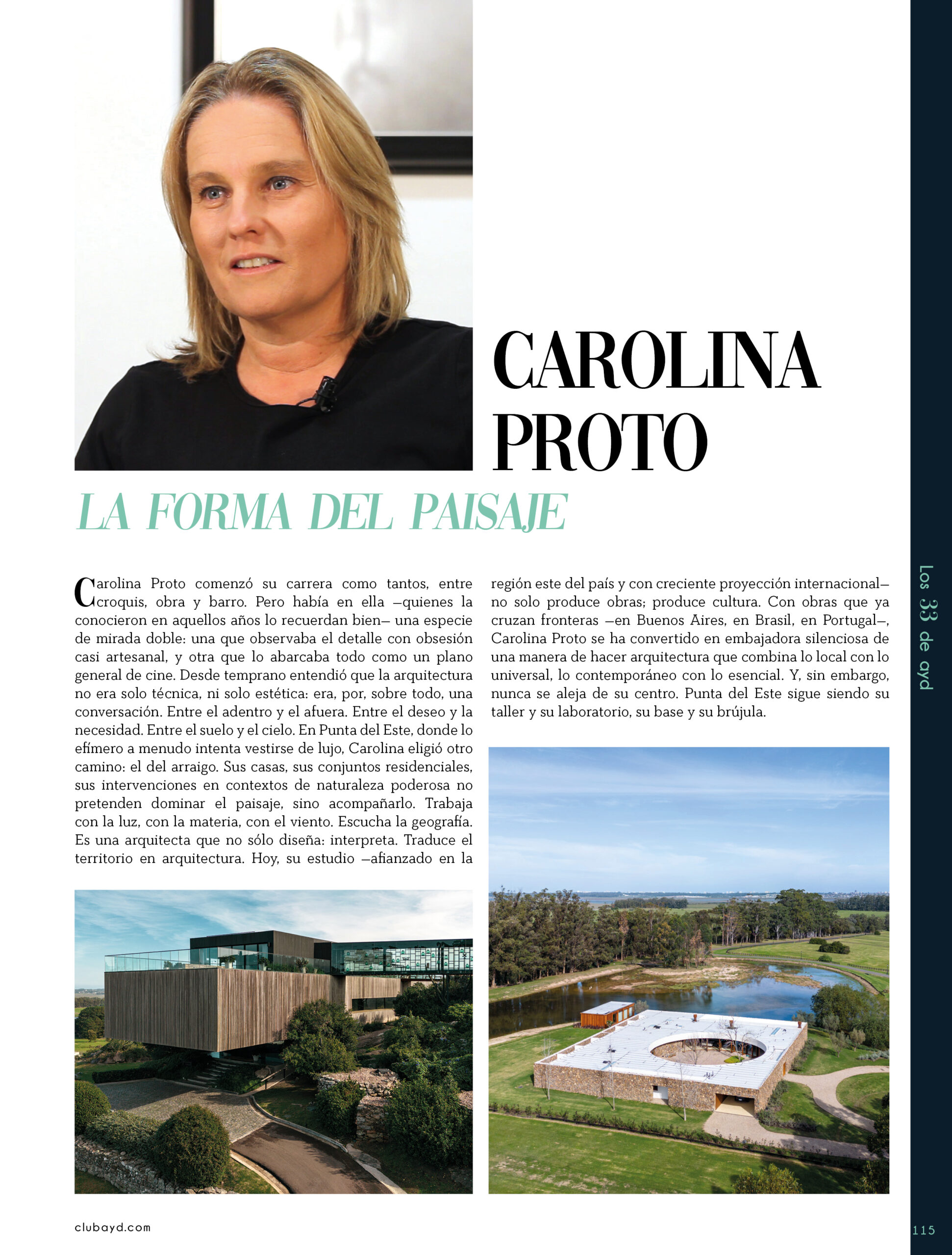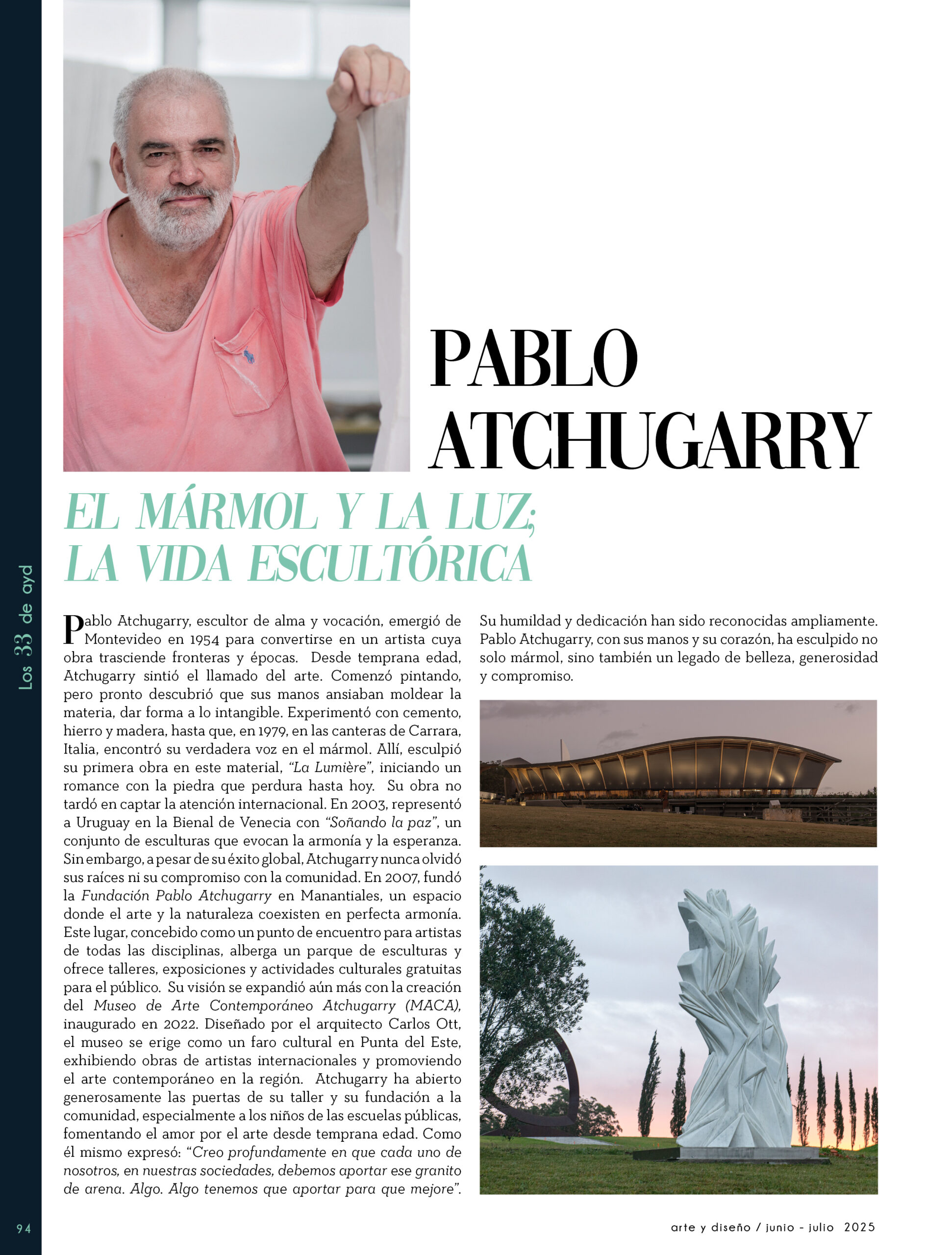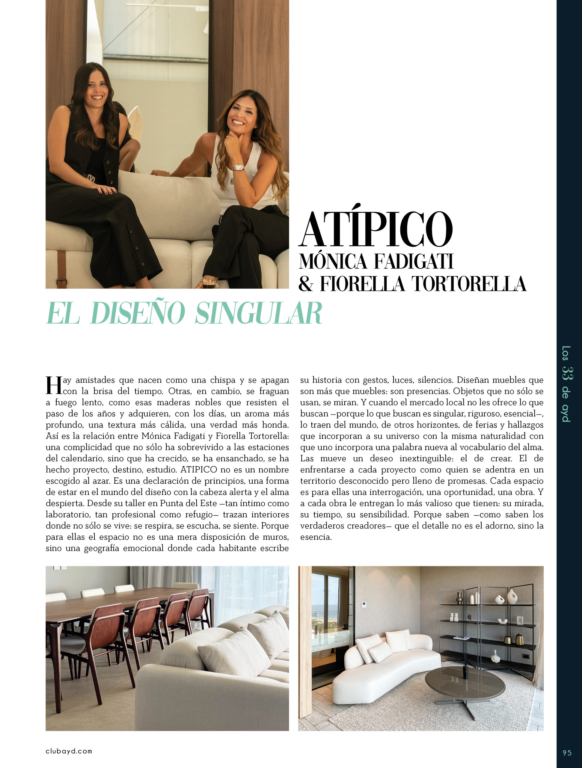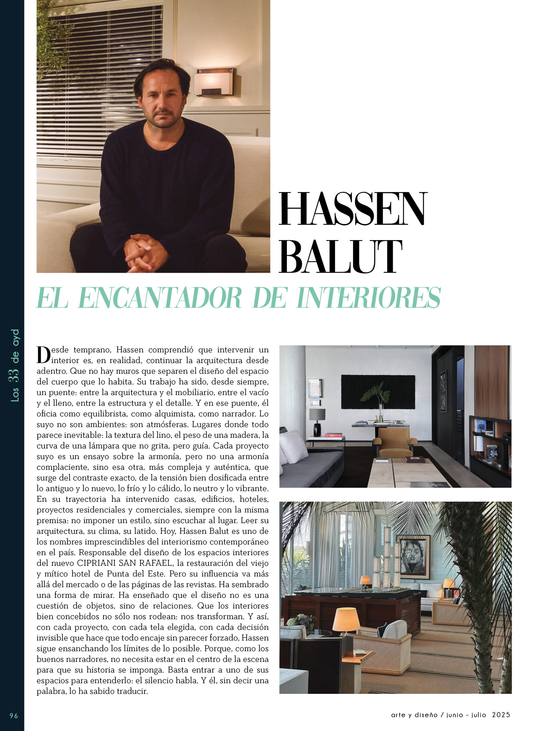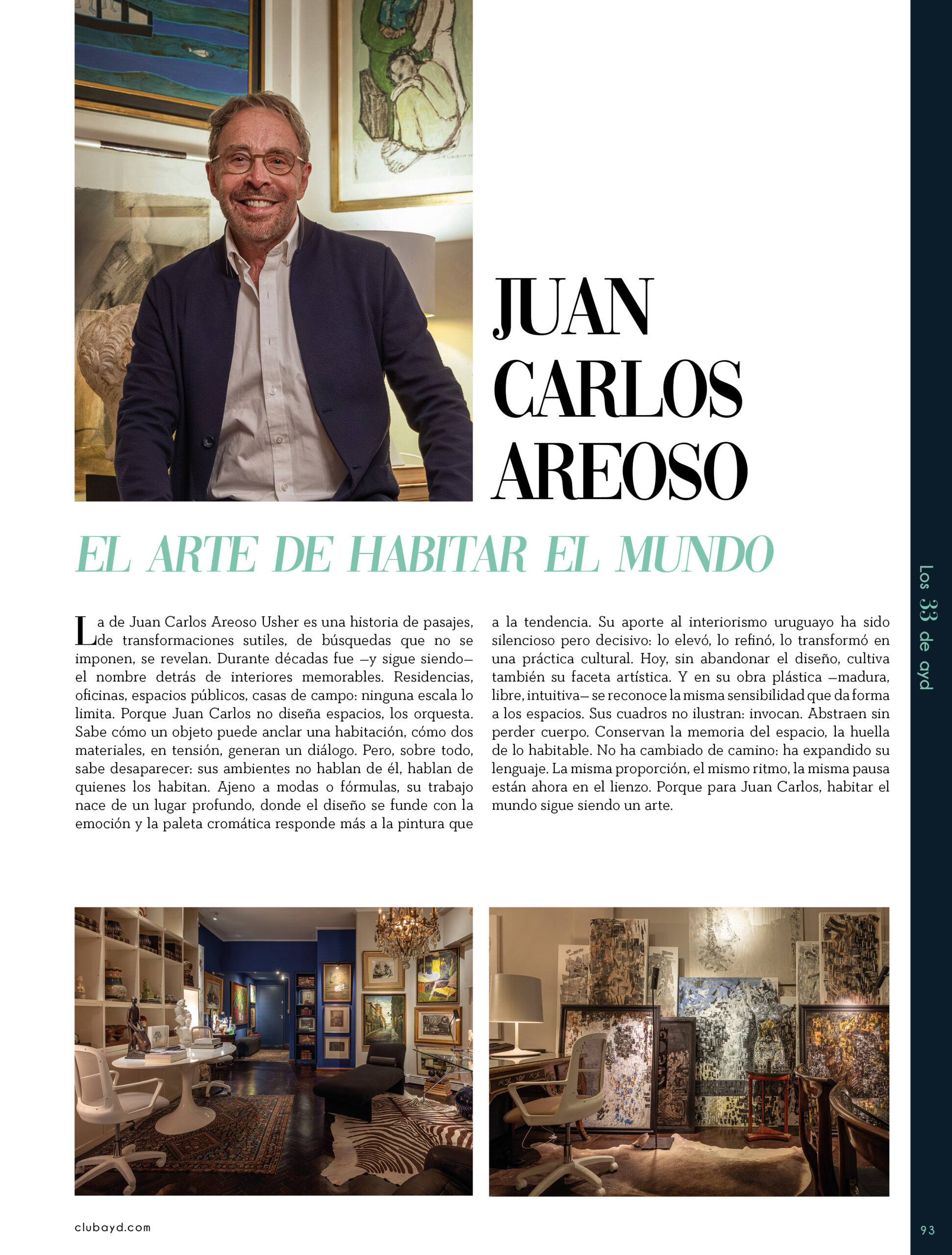 Dicho así, parece apenas un número entero. Pero cada uno de esos años tuvo su forma, su textura, su ritmo. Y juntos hacen una historia, la piel de esta revista, que es la nuestra. Prácticamente nací con ayd. Mientras otros aprendían a caminar, yo aprendía a reconocer un buen papel, a oler la tinta fresca, a distinguir una foto. Crecí entre planos, conversaciones sobre arquitectura y diseño, y viajes por casas que todavía no existían. Mi padre, fundó esta revista sin saber que estaba sembrando algo mucho más grande que una editorial, se trataba de una manera de mirar, de entender, de contar la arquitectura y el diseño en Uruguay. No como espectadores, sino como testigos y protagonistas de un tiempo que cambia —y que también nos define. Hoy, al cumplir treinta y tres años, siento que ayd ya no nos pertenece solo a nosotros. No es solo de mi padre, ni mía, ni de nuestra familia. Es de todos los que alguna vez encontraron en sus páginas una idea, inspiración, un gesto que les abrió un camino, una idea. Es de quienes entendieron que ayd habla y cuenta de cómo elegimos habitar el mundo. Por eso elegimos este título. Treinta y tres. Lo que el tiempo nos enseñó, es un acto de gratitud. El tiempo nos enseñó a escuchar antes de opinar. A mirar con atención antes de afirmar. A editar con respeto. A saber, que el diseño es forma, sí, pero también es cultura, identidad y memoria. Es una sinergia entre lo que fuimos y lo que está por venir. Porque la historia no es algo que se archiva: es algo que se vive, se revisa, se proyecta. Y aunque aprendimos mucho, sabemos que lo mejor aún está por descubrir, nuevas generaciones, nuevas formas de habitar, nuevas preguntas, nuevas plataformas para contar lo que vemos. Y en ese camino hacia lo que viene, elegimos detenernos un instante para mirar con atención lo que fuimos y lo que somos.