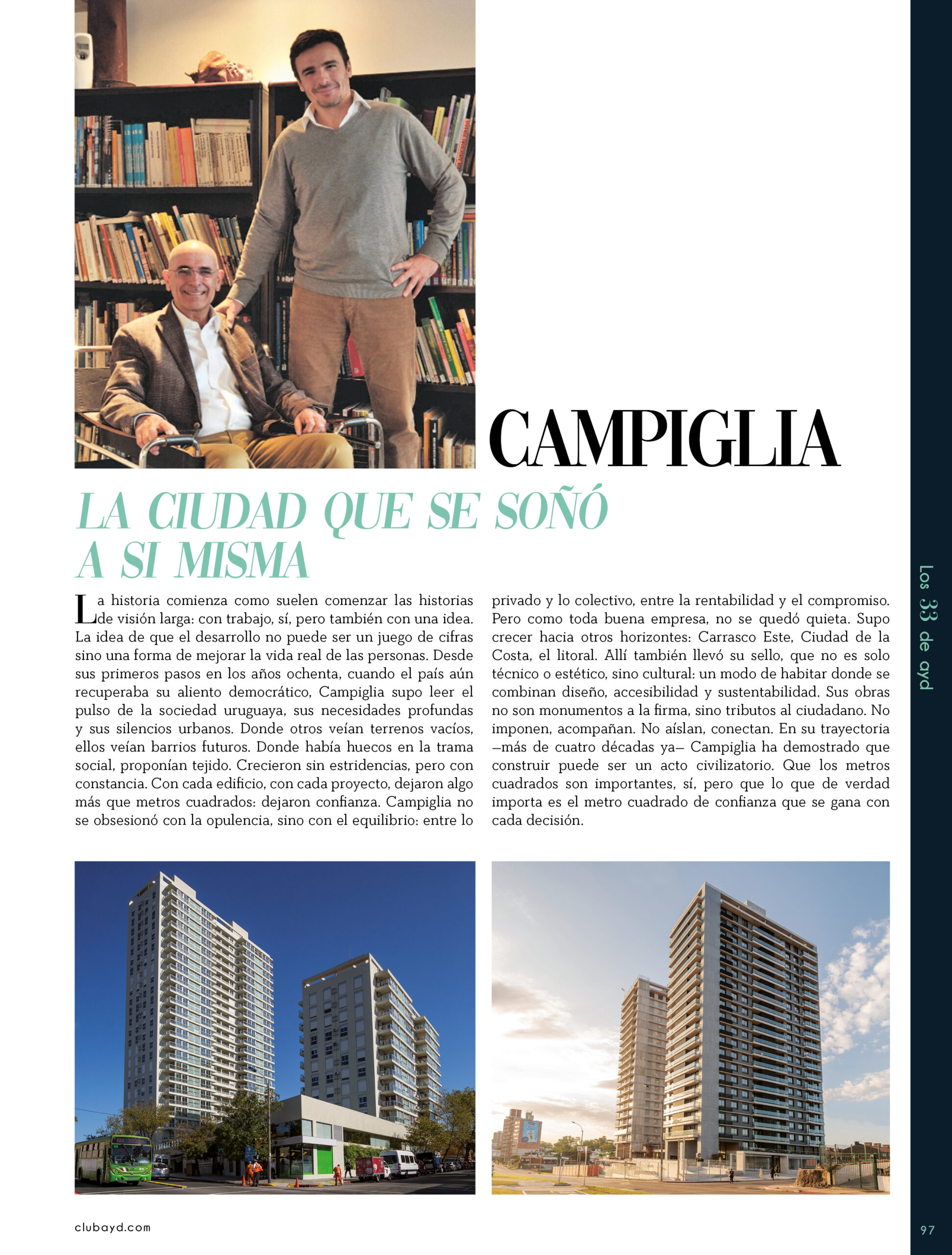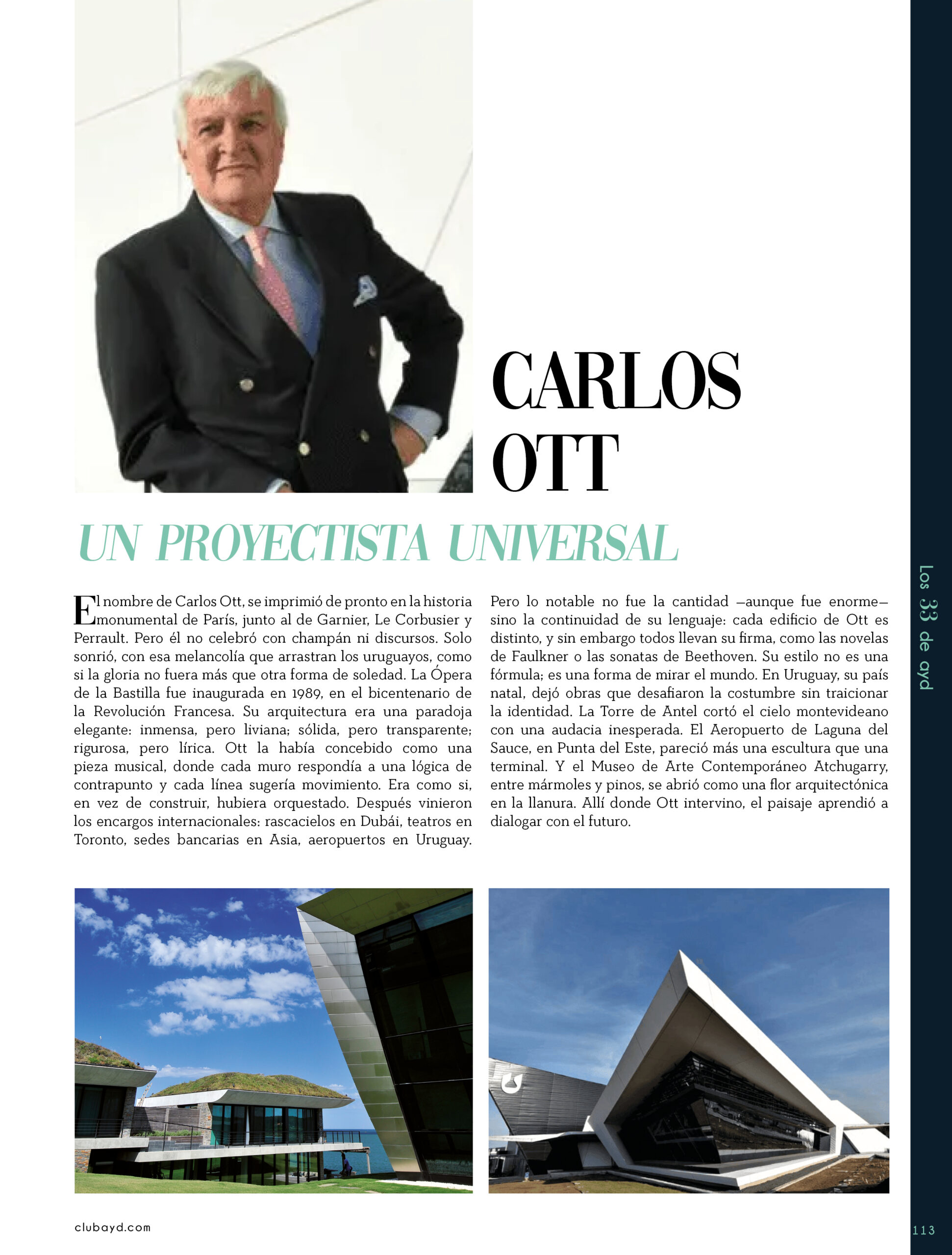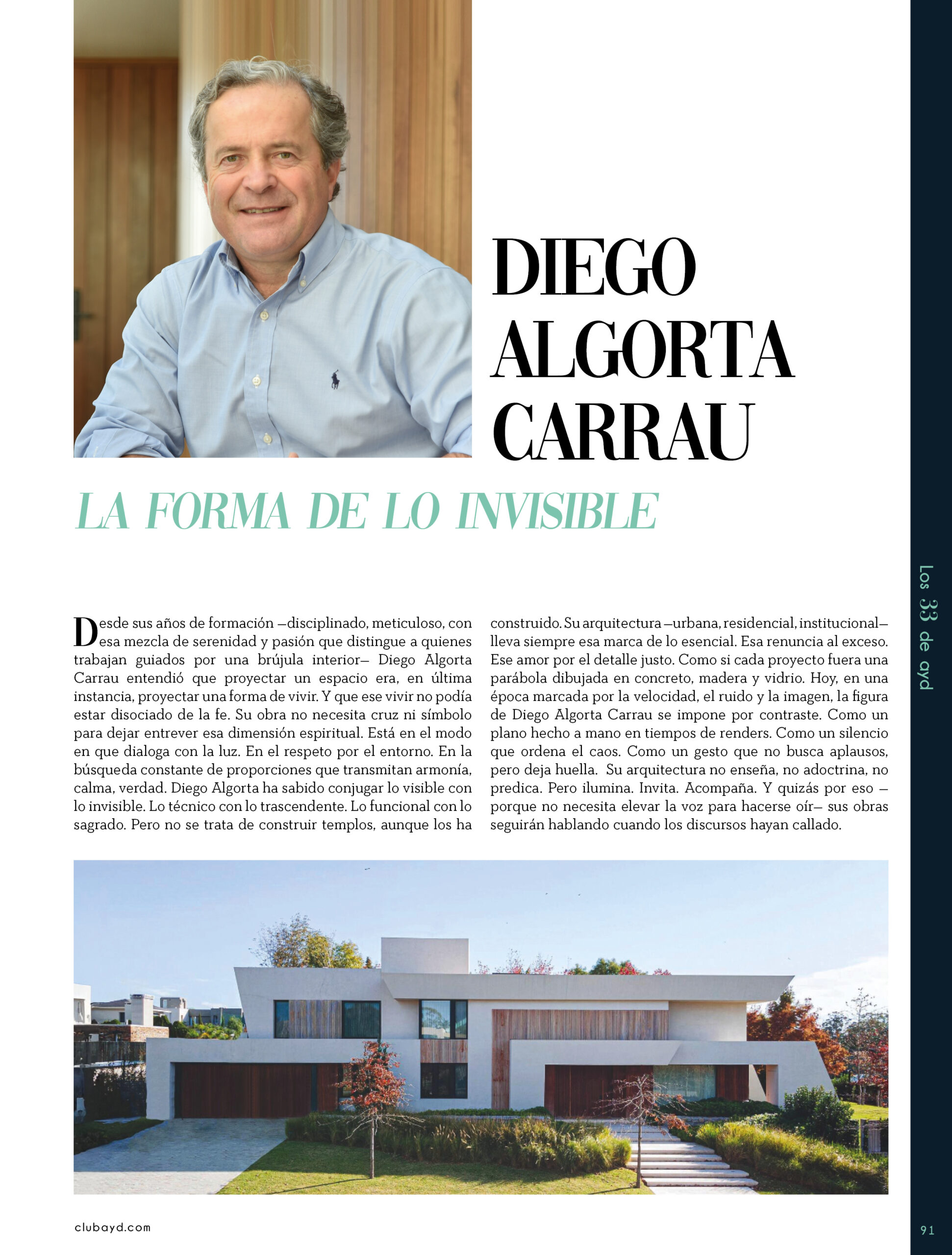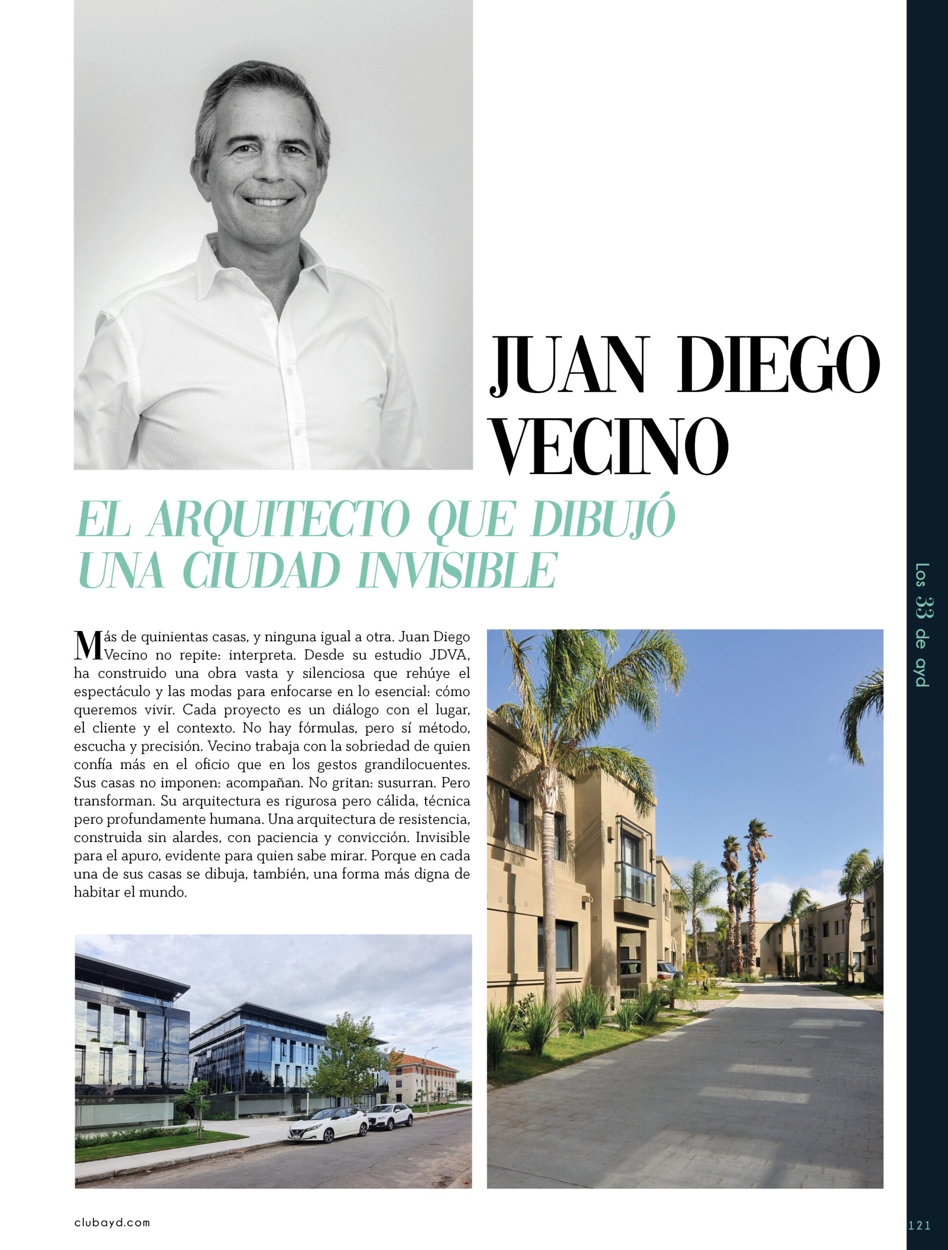 Dicho así, parece apenas un número entero. Pero cada uno de esos años tuvo su forma, su textura, su ritmo. Y juntos hacen una historia, la piel de esta revista, que es la nuestra. Prácticamente nací con ayd. Mientras otros aprendían a caminar, yo aprendía a reconocer un buen papel, a oler la tinta fresca, a distinguir una foto. Crecí entre planos, conversaciones sobre arquitectura y diseño, y viajes por casas que todavía no existían. Mi padre, fundó esta revista sin saber que estaba sembrando algo mucho más grande que una editorial, se trataba de una manera de mirar, de entender, de contar la arquitectura y el diseño en Uruguay. No como espectadores, sino como testigos y protagonistas de un tiempo que cambia —y que también nos define. Hoy, al cumplir treinta y tres años, siento que ayd ya no nos pertenece solo a nosotros. No es solo de mi padre, ni mía, ni de nuestra familia. Es de todos los que alguna vez encontraron en sus páginas una idea, inspiración, un gesto que les abrió un camino, una idea. Es de quienes entendieron que ayd habla y cuenta de cómo elegimos habitar el mundo. Por eso elegimos este título. Treinta y tres. Lo que el tiempo nos enseñó, es un acto de gratitud. El tiempo nos enseñó a escuchar antes de opinar. A mirar con atención antes de afirmar. A editar con respeto. A saber, que el diseño es forma, sí, pero también es cultura, identidad y memoria. Es una sinergia entre lo que fuimos y lo que está por venir. Porque la historia no es algo que se archiva: es algo que se vive, se revisa, se proyecta. Y aunque aprendimos mucho, sabemos que lo mejor aún está por descubrir, nuevas generaciones, nuevas formas de habitar, nuevas preguntas, nuevas plataformas para contar lo que vemos. Y en ese camino hacia lo que viene, elegimos detenernos un instante para mirar con atención lo que fuimos y lo que somos.