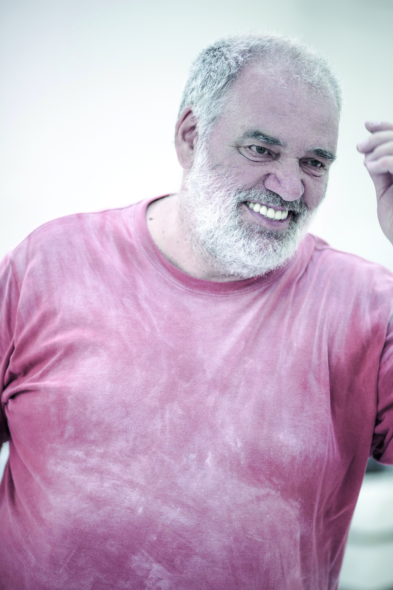 Pablo Atchugarry no quiere utilizar tecnología para su obra escultórica. Trabaja con sierras eléctricas y también con el legendario marrón de mano. Lo asisten tres operarios que siguen instrucciones específicas y hacen posible que la titánica tarea de creación sea un tanto más llevadero. En medio del taller lo encuentro trabajando con una amoladora en una pieza chica que ya está pronta para ser entregada. Viste una remera sin cuello que en algún momento fue de color rojo intenso. Ahora, al igual que los jeans que calza y que su cabellera, son blancos. El polvo del mármol allí lo baña todo. Al verme interrumpe la tarea, se quita las gafas de protección y me sonríe. Con la boca, con los ojos, con la cara. Ese hombre de tamaño descomunal no deja de sorprenderme con esa ternura inconmensurable que transmite con todos sus gestos.