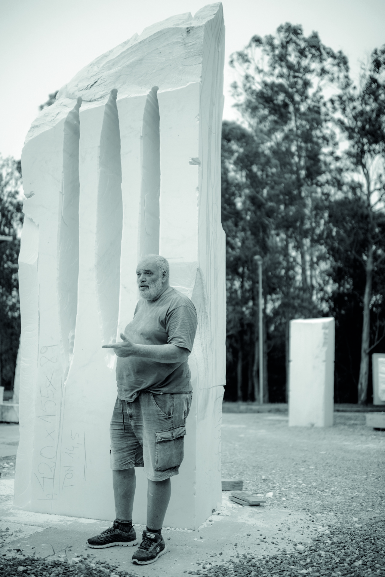 Llevaba dos años sin verlo, pero fue como si hubiéramos cenado juntos la noche anterior. Son las tres de la tarde del segundo martes de enero, el parque está lleno de gente y en el taller el ritmo de trabajo es frenético. Mientras nos ponemos al día con los comentarios de rigor nos dirigimos hacia la puerta del taller y nos instalamos junto a las moles de mármol que esperan su turno para ser. Y entonces, lo común, las gentes se acercan, selfies, saludos, felicitaciones. Para todos y cada uno el gran maestro tiene tiempo. Y un comentario. Y da las gracias. Recuerdo a un matrimonio francés, con el que Atchugarry mantuvo un diálogo fluido en su idioma; a un grupo de canadienses con los que conversó en inglés. Y a muchos argentinos y uruguayos que en total sumaron veinte personas, en apenas quince minutos. Así las cosas, decidimos trasladarnos hacia los fondos del taller, a un pequeño patio no cerrado, pero sí con cierta privacidad. Allí nos aborda un conocido galerista que tenía urgencia en hablar con el artista.