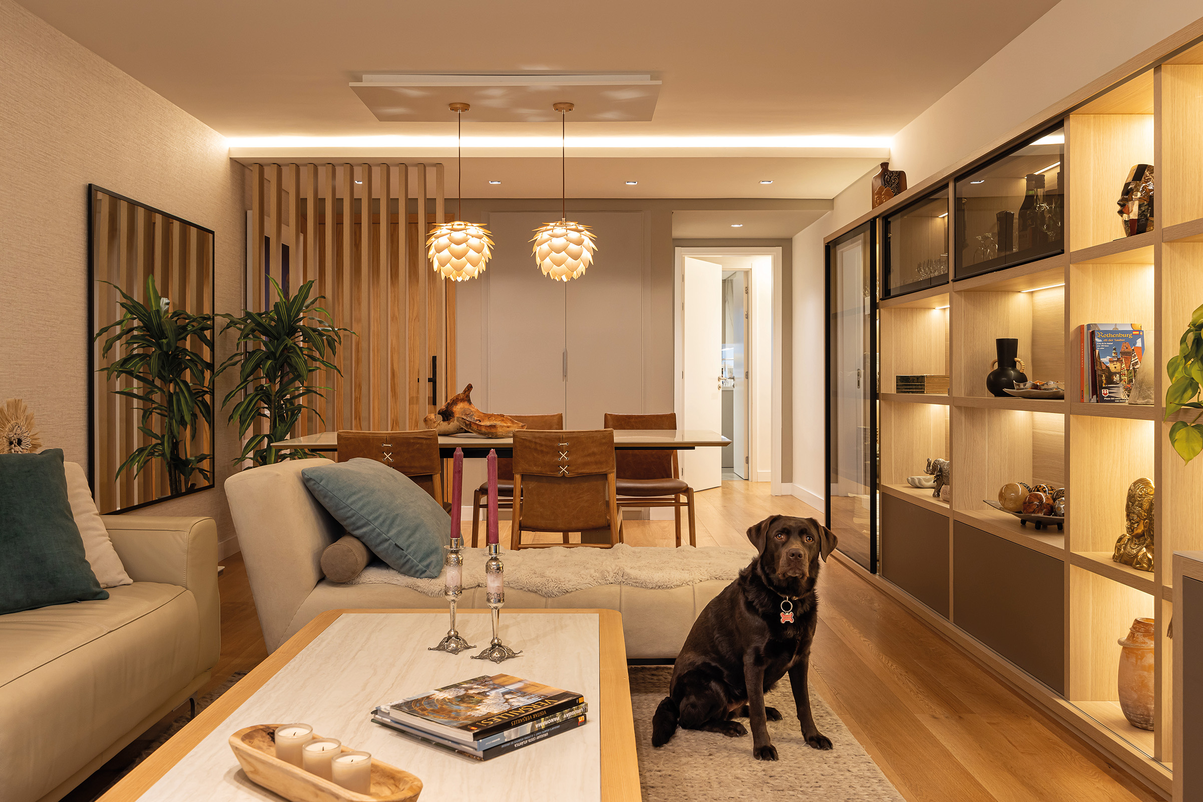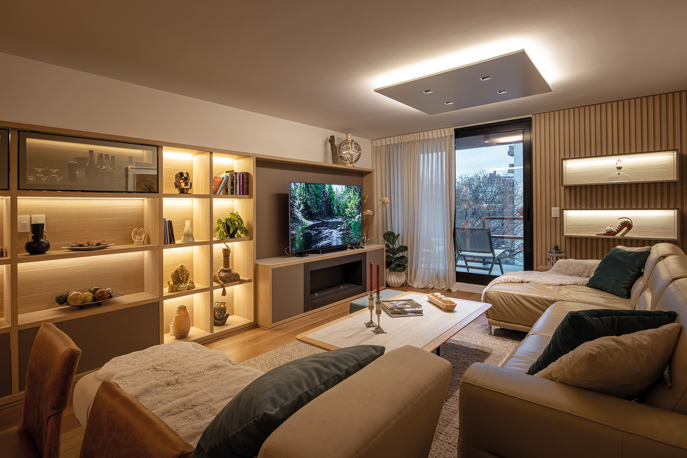 En este departamento, el diseño integral es obra de MISURA DESIGN bajo la dirección del DI Juan Pablo Roca, y no se trata simplemente de organizar muebles: se ha tejido un relato donde cada objeto, cada material y cada haz de luz tiene voz propia. La arquitectura deja de ser un contenedor inerte para transformarse en un escenario vivo, donde la precisión tecnológica y la calidez artesanal se encuentran, se reconocen y se armonizan en un relato silencioso que se despliega en cada rincón.