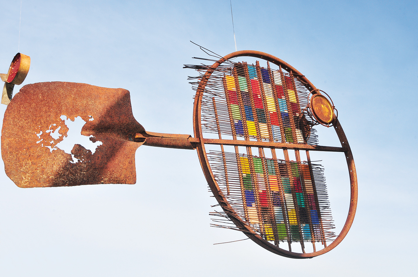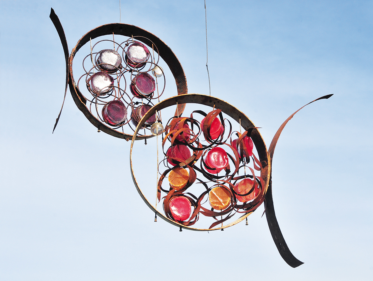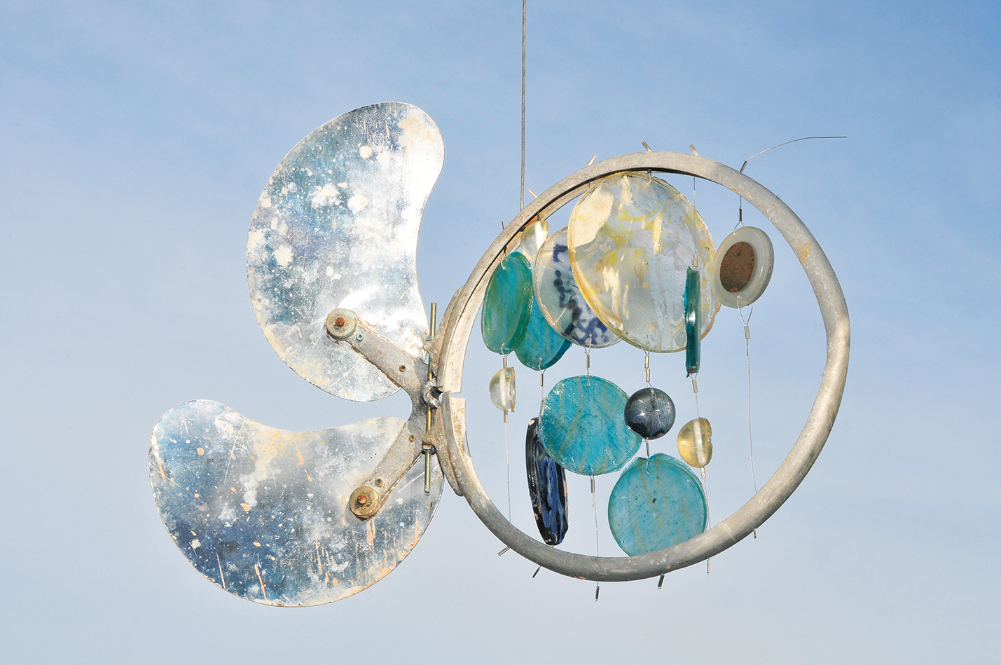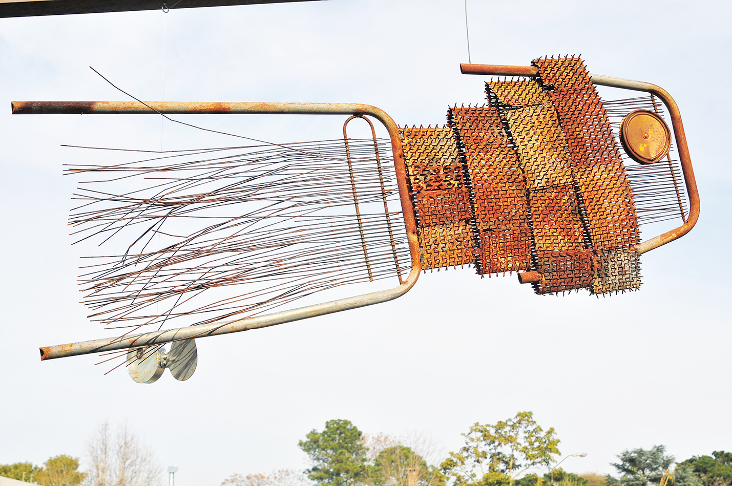 —Son cosas que encuentro, que junto, que me regalan, porque todos mis amigos y mi familia saben que si algo les da pena tirarlo me lo dan a mí porque a lo mejor me sirve. A todo le veo potencial. Tengo un tema con el no generar basura, trato de reciclar todo lo que pueda. Me encanta hacer móviles con ese tipo de materiales y que se reconozcan las partes, que la gente vea que se pueden hacer cosas con una parte de lo que fue un tractor, o una rueda vieja de bicicleta, o cualquier cosa, mientras no se amontone todo en un gran basural. No pinto nada, las cosas tienen el color que traen cuando las reconvierto.