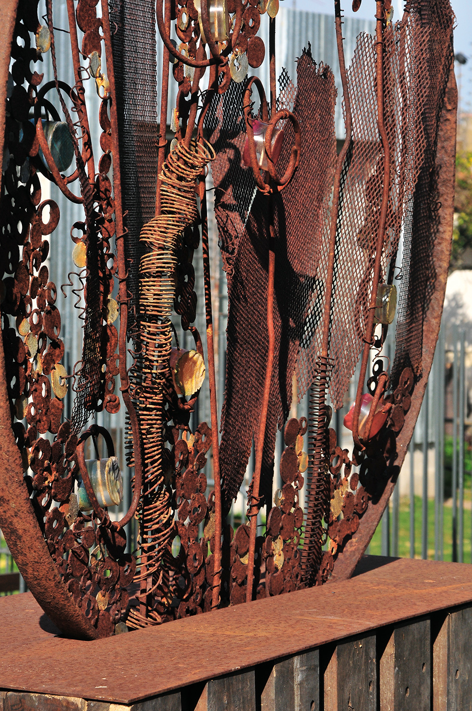 Resistencias de horno, resortes de colchones en desuso, tapas de latas de pintura oxidadas, ruedas de bicicleta, pilas, pistones, piezas de motores, aspas de un ventilador y un sinfín de elementos más componen estas piezas únicas e irrepetibles que crea Carolina en su casa-taller, no solo como una manera de expresar su creatividad sino, además, como una forma de reciclar y dar nuevo destino a objetos y piezas que estaban destinados a quedar en el olvido. Esta forma de recuperar objetos se desprende de una manera de ver el mundo donde la preocupación por la ecología y el cuidado del medio ambiente siempre estuvieron presentes en su vida.