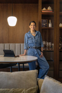 Su trabajo se reconoce por una manera muy particular de equilibrar sofisticación y cercanía. Hay una búsqueda constante por crear diseños serenos, cálidos y contemporáneos, donde la materialidad adquiere protagonismo sin necesidad de estridencias. Maderas naturales, mármoles, superficies neutras y piezas cuidadosamente elegidas conviven en espacios que transmiten una elegancia silenciosa, siempre ligada al modo real de habitar.