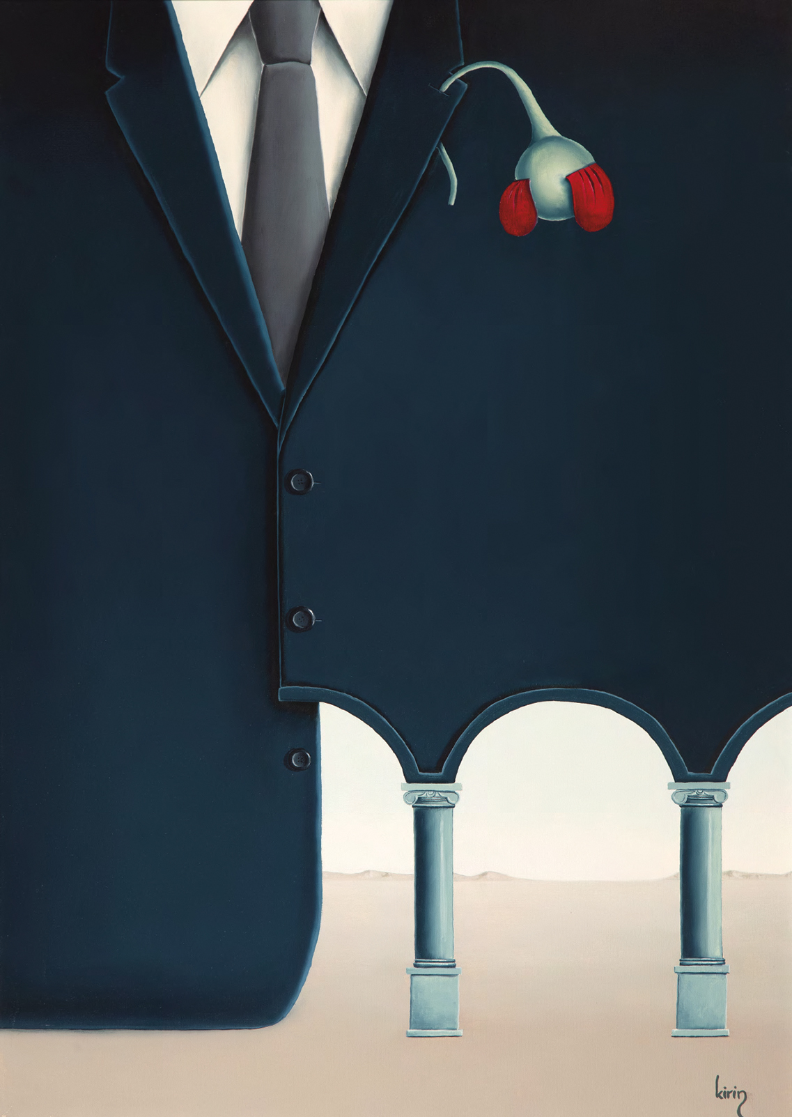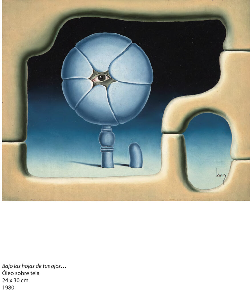 Hay en su producción, además, un gesto que desestabiliza la primacía de la mirada: la incorporación del sonido. Kirin construye instrumentos musicales inventados, artefactos que no solo se observan sino que se escuchan, como si la obra reclamara otro tiempo, menos inmediato y más corporal. Esa deriva experimental convive con una reflexión literaria que se materializa en libros como Los ángeles son las moscas del paraíso, publicado en 1999, donde collages y textos dialogan con la misma libertad con la que su obra se despliega en el espacio.