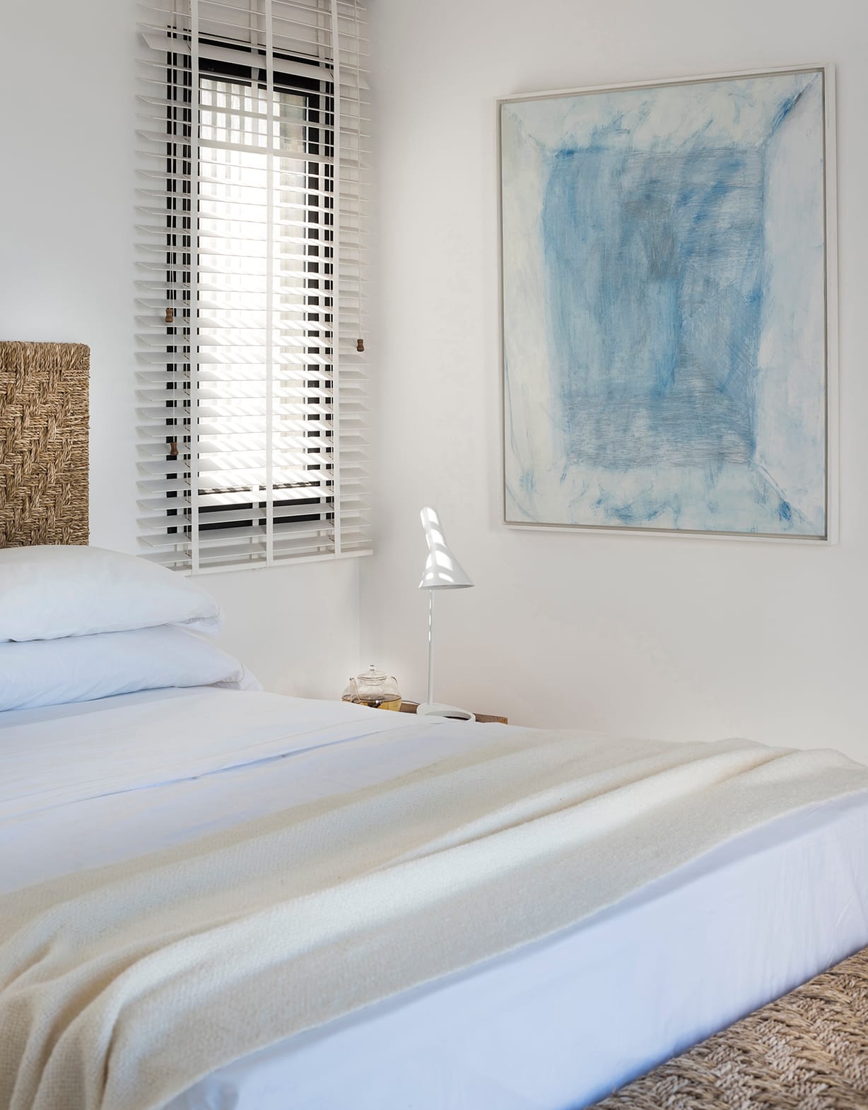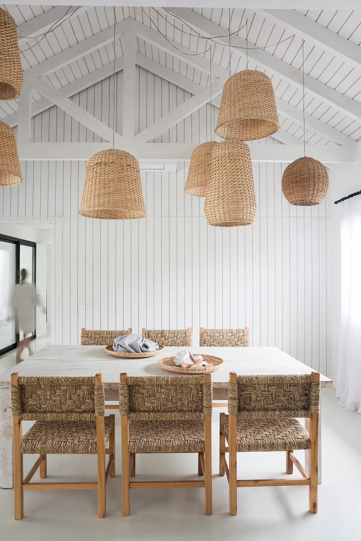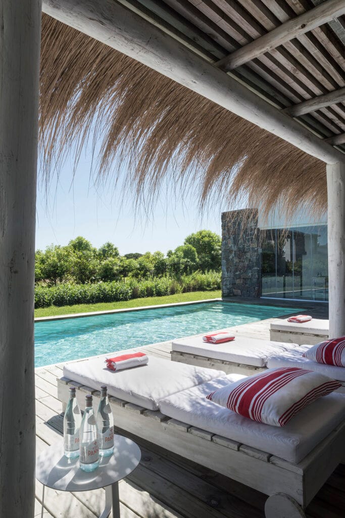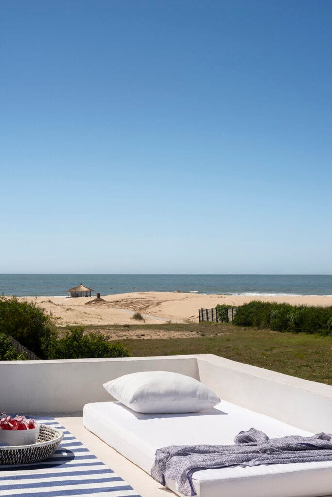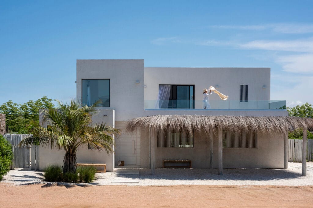 Los habitantes, -clientes y amigos-, con quienes ya el Estudio Costa Paz había trabajado en Buenos Aires, convocaron a Matty Costa Paz para rediseñar el proyecto original, con la nueva consigna de construir un espacio que se pueda utilizar todo el año y que pueda albergar parte de su importante colección de arte moderno. Teniendo esto en cuenta la diseñadora comenzó redistribuyendo la organización espacial, generando nuevas circulaciones, jerarquizando el proyecto desde su concepto y materialidad. La casa se concibió como una caja blanca de atmosfera marina, desarrollada en tres plantas, que se integran al paisaje, siempre dentro de un lenguaje contemporáneo. Paredes blancas, pisos cementicos color arena, utilizando recursos propios de la cultura uruguaya como quincha, maderas y piedra. Para brindar independencia y privacidad se idearon celosías de madera creando una barrera sutil entre el interior y el exterior. La espacialidad lograda es generosa con conexión visual a la naturaleza.