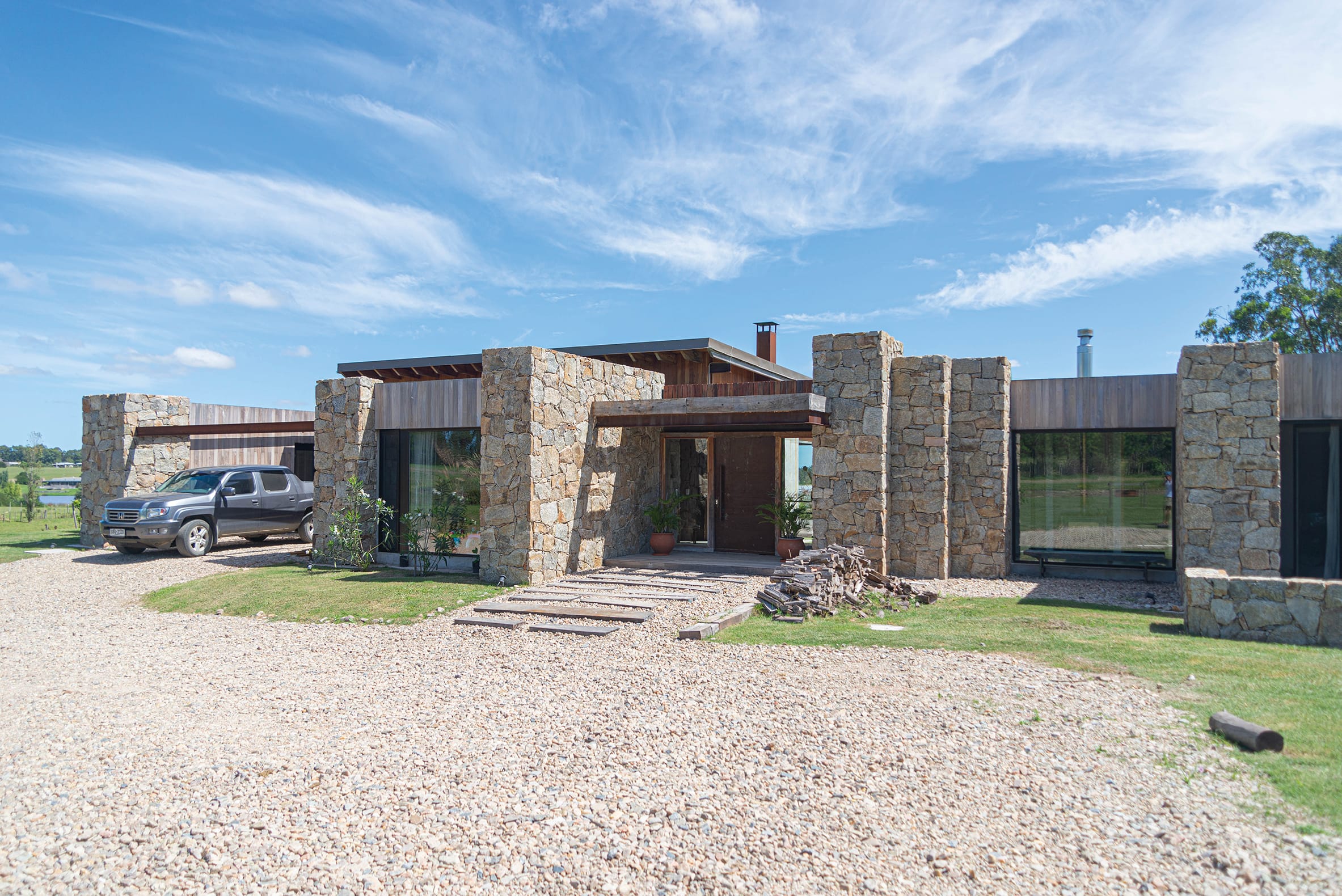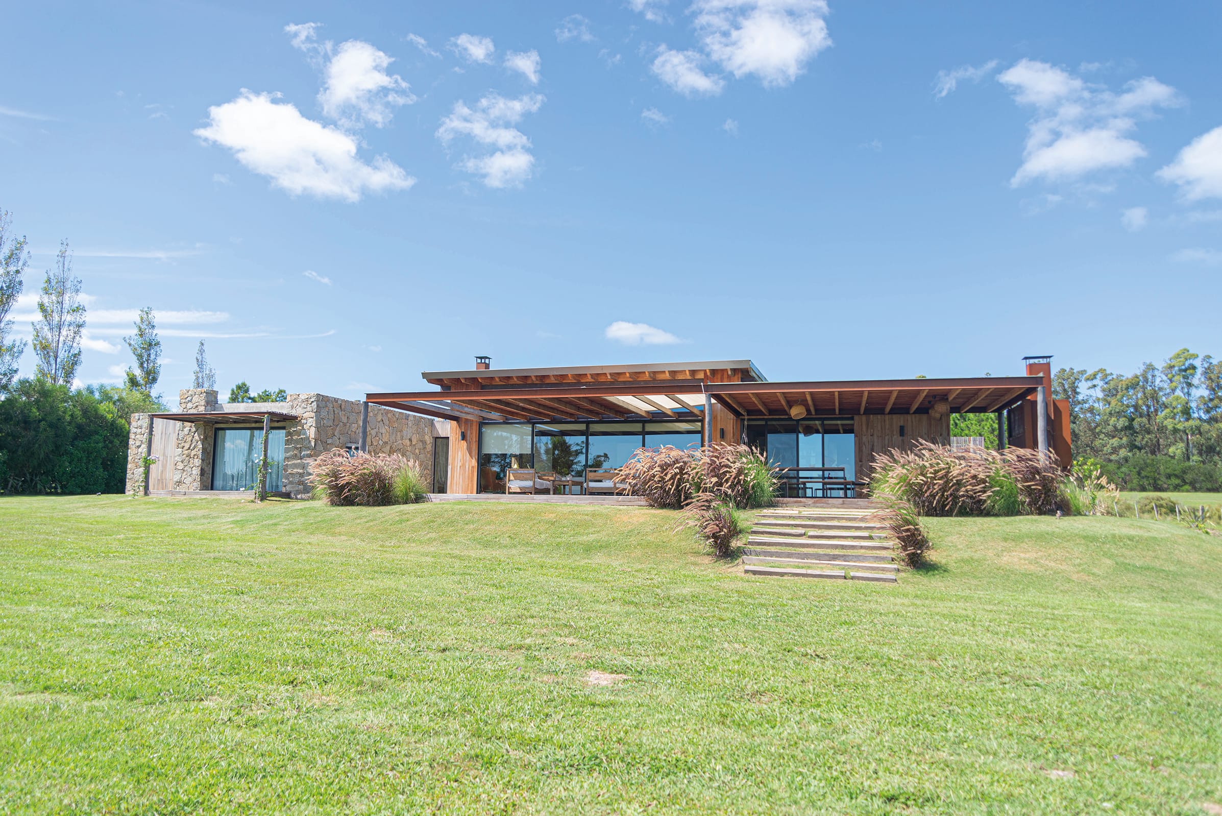 El diseño de esta casa se enmarca en la serie de Segundas Casas desarrollada por Algorta Carrau en la que despliega el resultado de la investigación de nuevos materiales y sistemas constructivos.