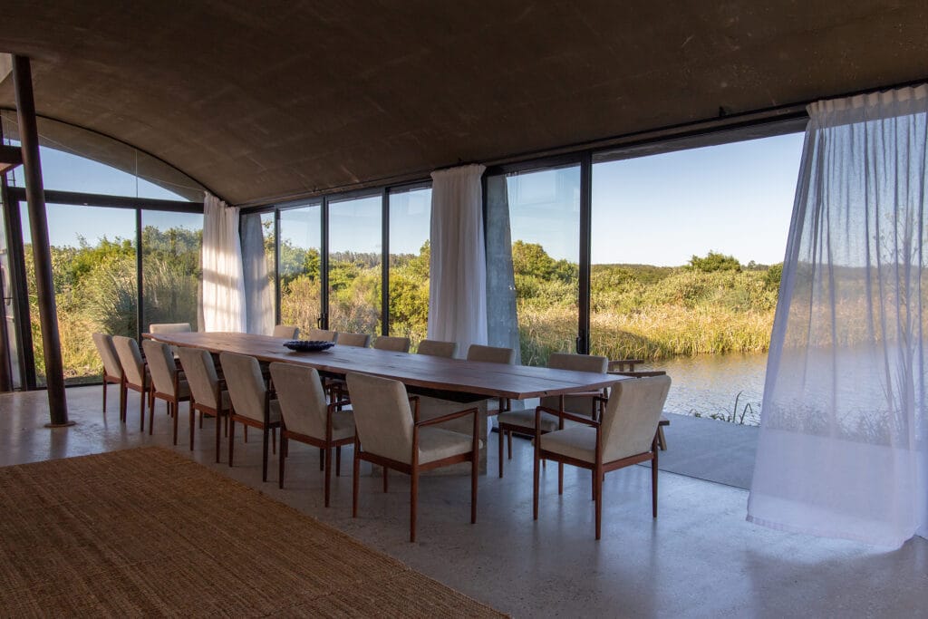 Como un ejercicio expresivo que logra la interacción plena con la vitalidad del paisaje donde interviene, la casa diseñada por el arquitecto Diego Montero destaca de manera singular y propone formas que mucho tienen que ver con la arquitectura original de nuestro territorio y de manera muy puntual con el fantástico escenario de los humedales en La Coronilla, que bien podemos definir como un sector del paraíso que se cuela entre nosotros.