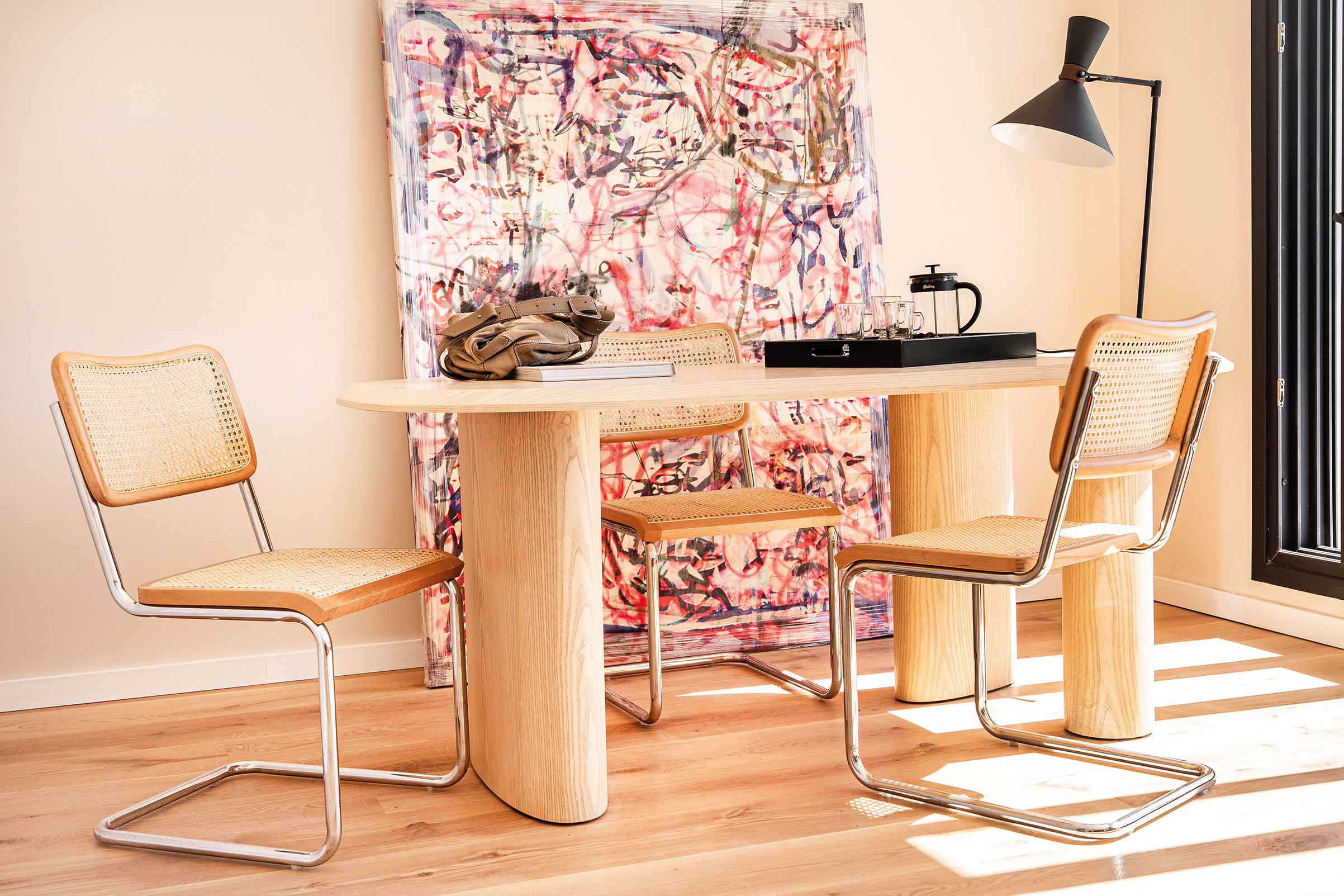 El segundo proyecto, desarrollado para una casa en Carrasco del estudio Bodega & Piedrafita, es más moderno y vertical, distribuido en varias plantas que exigen soluciones distintas en cada nivel. Allí, La Ibérica desplegó su capacidad de interpretar espacios complejos, ajustando mobiliario y texturas a la arquitectura contemporánea, sin perder la calidez que distingue a la marca.