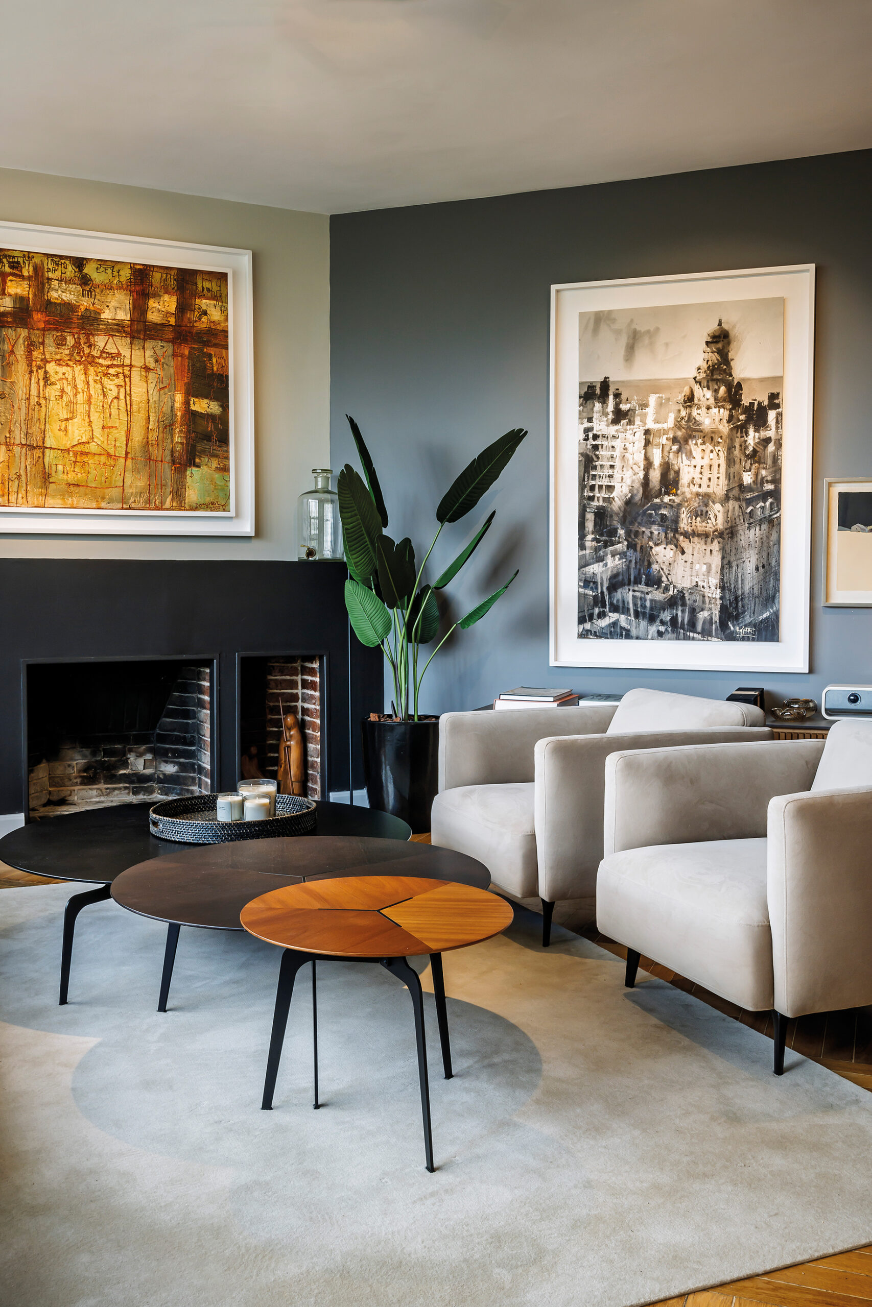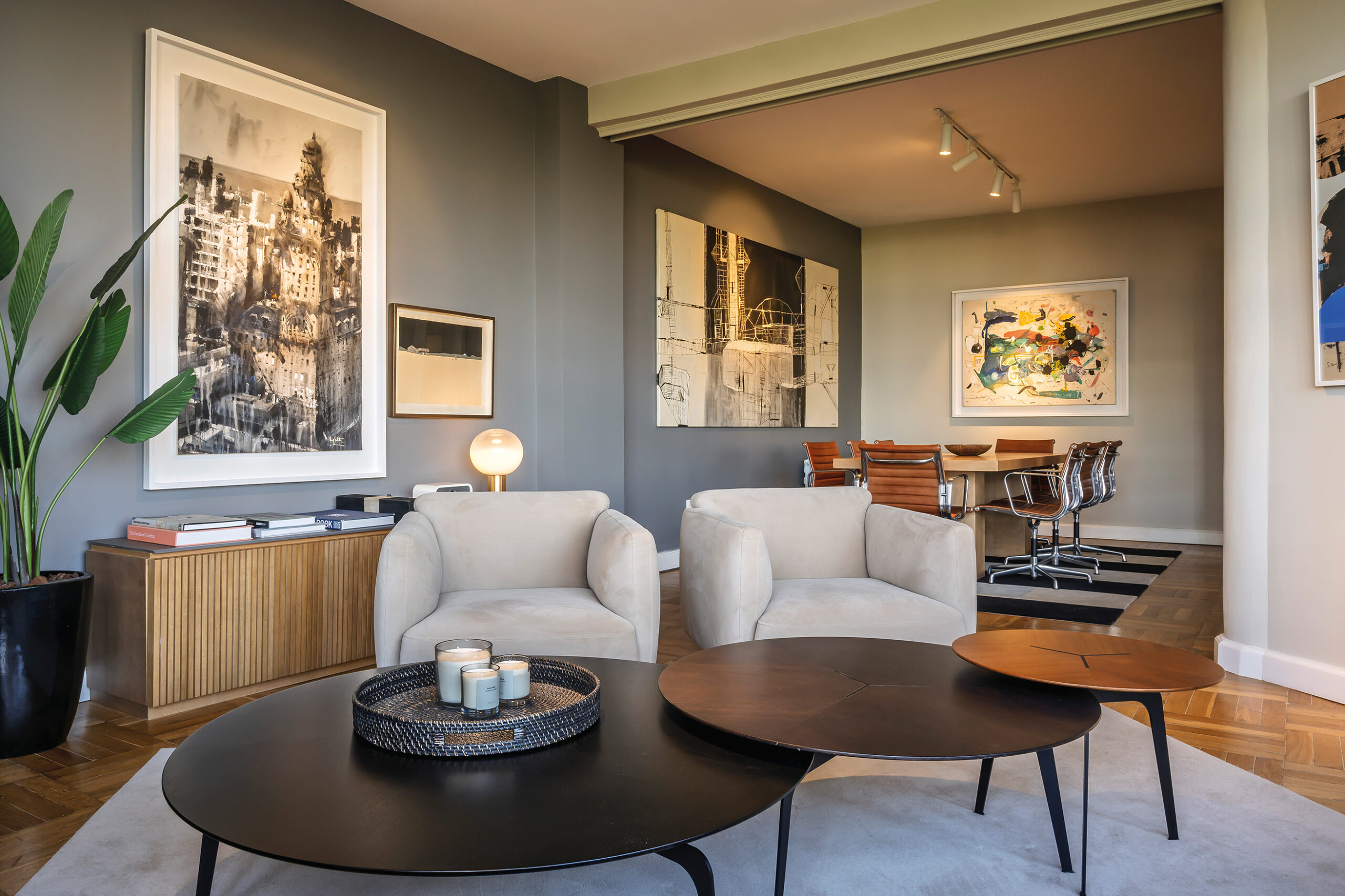 El resultado final es un interiorismo totalmente repensado, donde la planificación meticulosa, el color en gamas vibrantes pero sofisticadas y la selección artística consolidan una identidad poderosa. Cada obra, cada mueble y cada fuente de luz fueron pensados como parte de una narrativa cohesiva que no solo refleja la personalidad de los propietarios, sino que redefine la relación entre arquitectura, diseño y arte en un todo indisoluble.