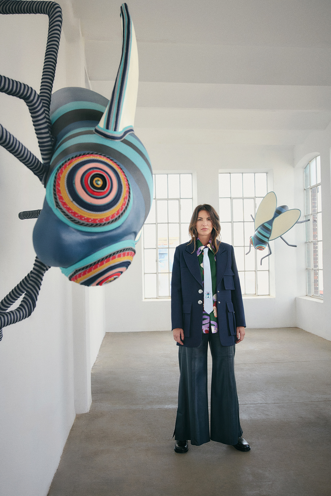 La historia de esta unión comenzó casi por azar durante la última edición de ArteBa, donde Edgardo presentaba sus «Fancy Monas». En medio del vértigo del evento, Chebar y Giménez se cruzaron, y la conexión fue instantánea. Compartían un mismo lenguaje visual, lúdico y colorido, que encontró eco en detalles tan reveladores como una pantera: Edgardo monta una en la tapa de su libro, mientras que una escultura similar lleva años acompañando el universo creativo de Chebar desde sus oficinas. A partir de ese encuentro, comenzó una colaboración natural, cargada de sentido y diversión, donde cada prenda fue pensada como una obra en sí misma.