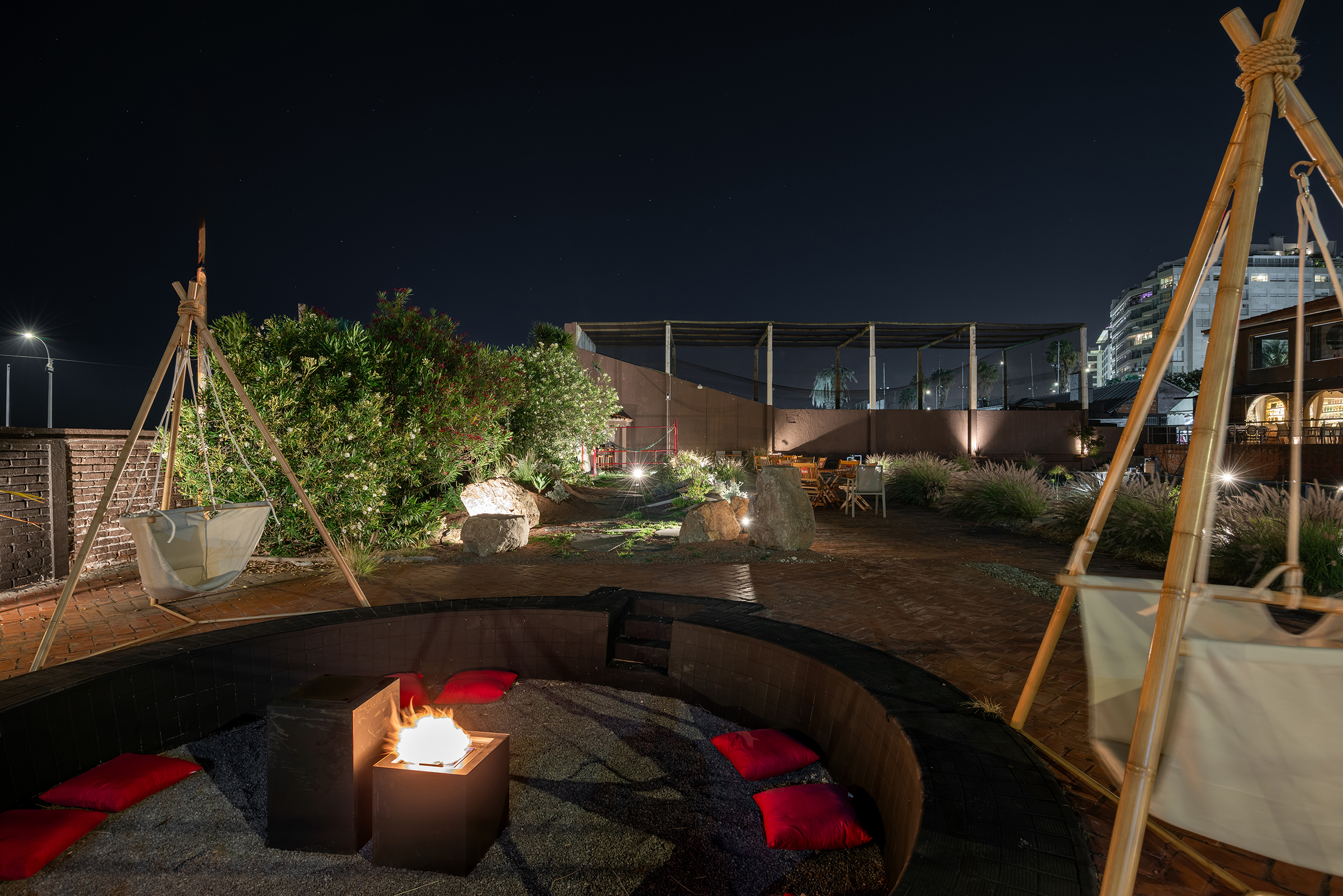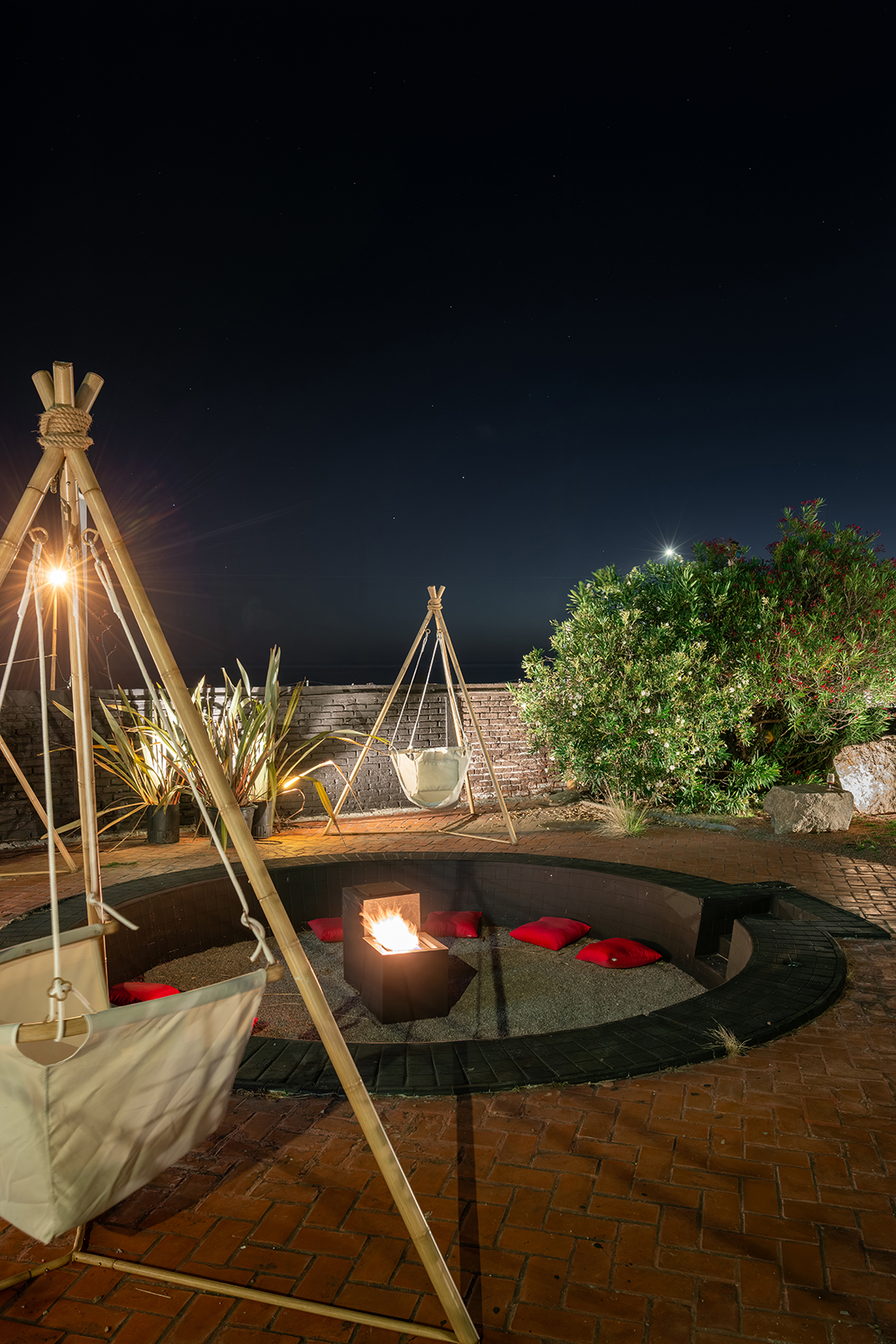 En el centro del proyecto, un fogón convoca al encuentro. El fuego remite tanto a las vacaciones como al ritual del asado de obra: ese momento semanal en que las personas se reúnen alrededor del calor compartido. Es un espacio de comunión, donde la pausa se celebra y el trabajo se reconoce.