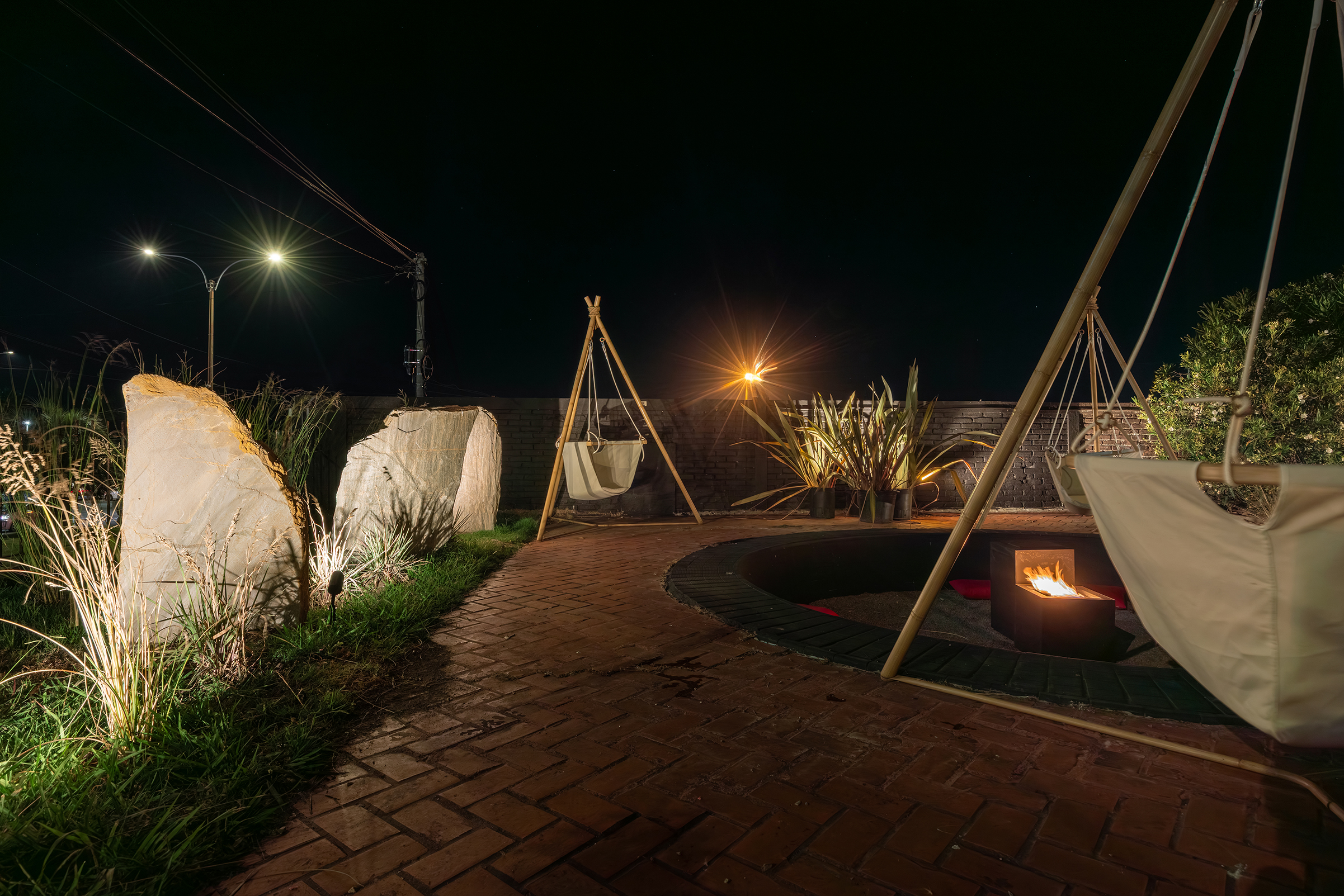 soportes para hamacas paraguayas, resignificando su función y convirtiéndolos en símbolo de ocio y contemplación. Este gesto lúdico reinterpreta lo cotidiano: donde antes había esfuerzo, ahora hay descanso; donde antes había estructura, ahora hay pausa.