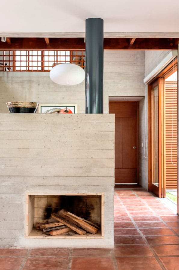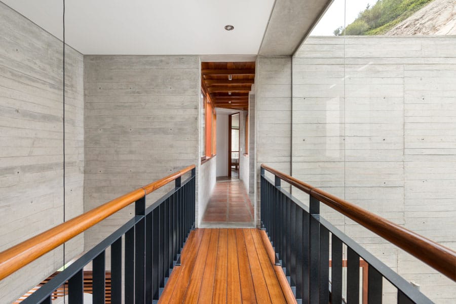 El proyecto de Carbajal fue animado por la necesidad de aprovechar al máximo las riquezas del paisaje circundante, dominado por grandes cerros de piedra. El carácter rústico y áspero de la roca expuesta que quedó al demoler el cerro de la parte posterior de la casa es lo que propició la selección del material de la obra, concreto cara vista con textura de tablas de madera, material que genera un carácter particular que se mimetiza muy bien con el entorno. Además, se escogieron acabados como la madera maciza para los techos de terrazas, puentes y marcos de mamparas y ventanas. El pavimento fue resuelto con ladrillo pastelón y piedra.