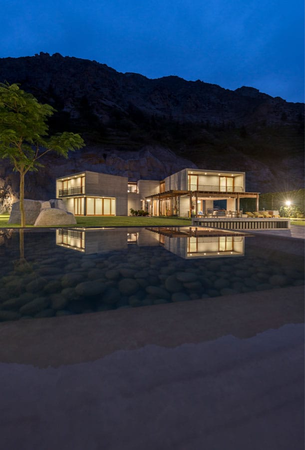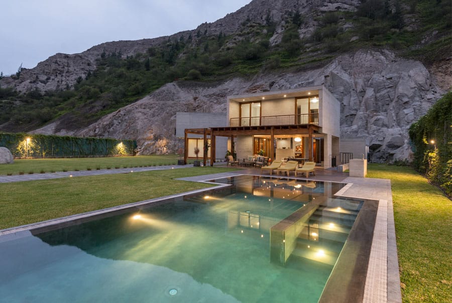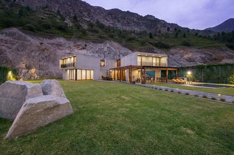 La casa, se levanta sobre un terreno de 1,800 metros cuadrados dentro de un condominio de campo a las afueras de Lima, en el distrito de Cieneguilla.