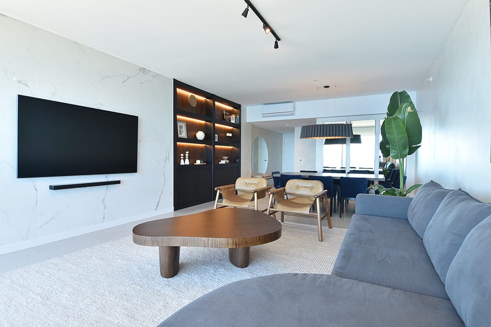 El proyecto de la arquitecta Florencia Miller para este apartamento que ocupa uno de los pisos altos de la torre Le Parc en Punta del Este apela al conocimiento del habitante para quien ha generado un espacio habitable todo el año. Refleja inquietudes, gustos y necesidades, con lo cual una vez más, Miller reafirma su camino profesional.
