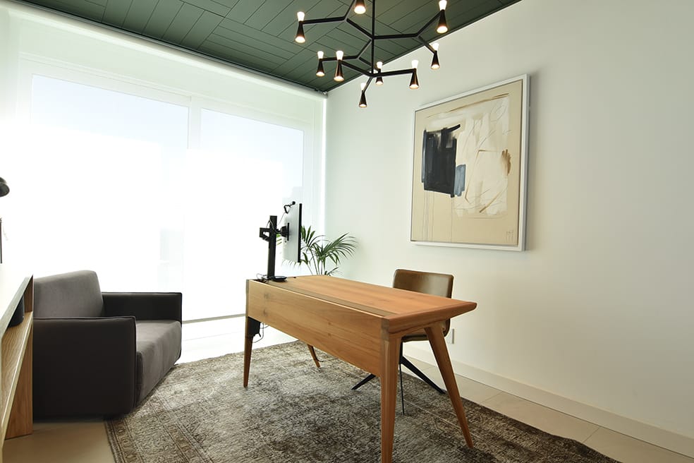 A propósito de la distribución espacial y el carácter desarrollado para su estética, Florencia Miller nos comenta: «en el menú de necesidades que recogimos al momento de concretar el trabajo, se determinó claramente la necesidad de destinar una de las habitaciones para crear una oficina de trabajo y otro debía concebirse como habitación para huéspedes. Al mismo tiempo, la libertad con las que nos habilitó a trabajar aportaba algo más, la inquietud por un proyecto osado, de hecho, nos animó a volar…»