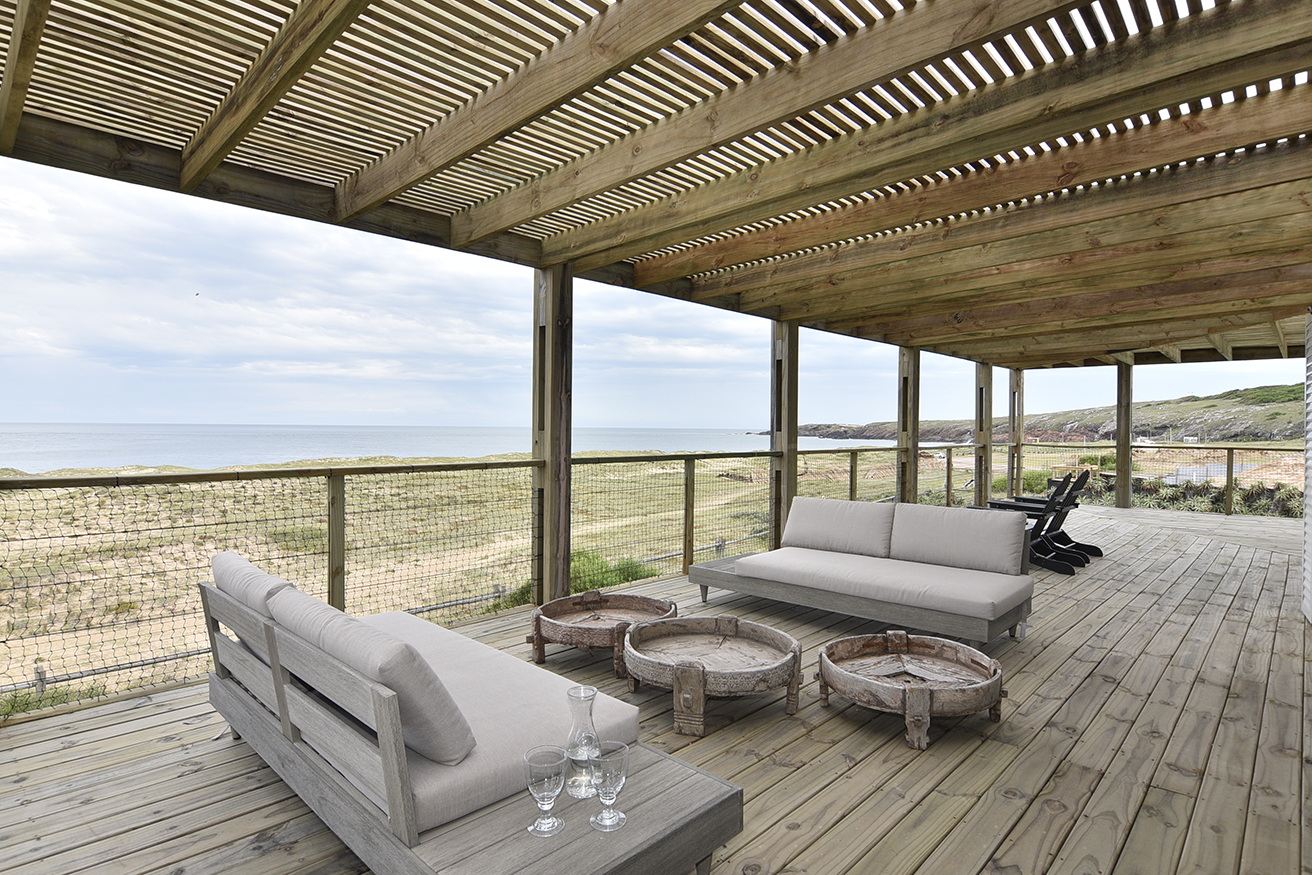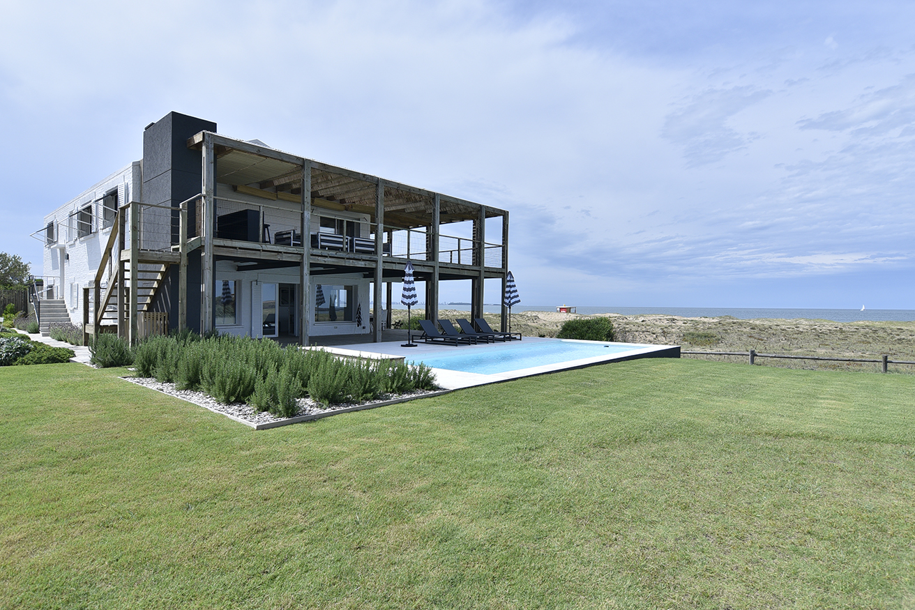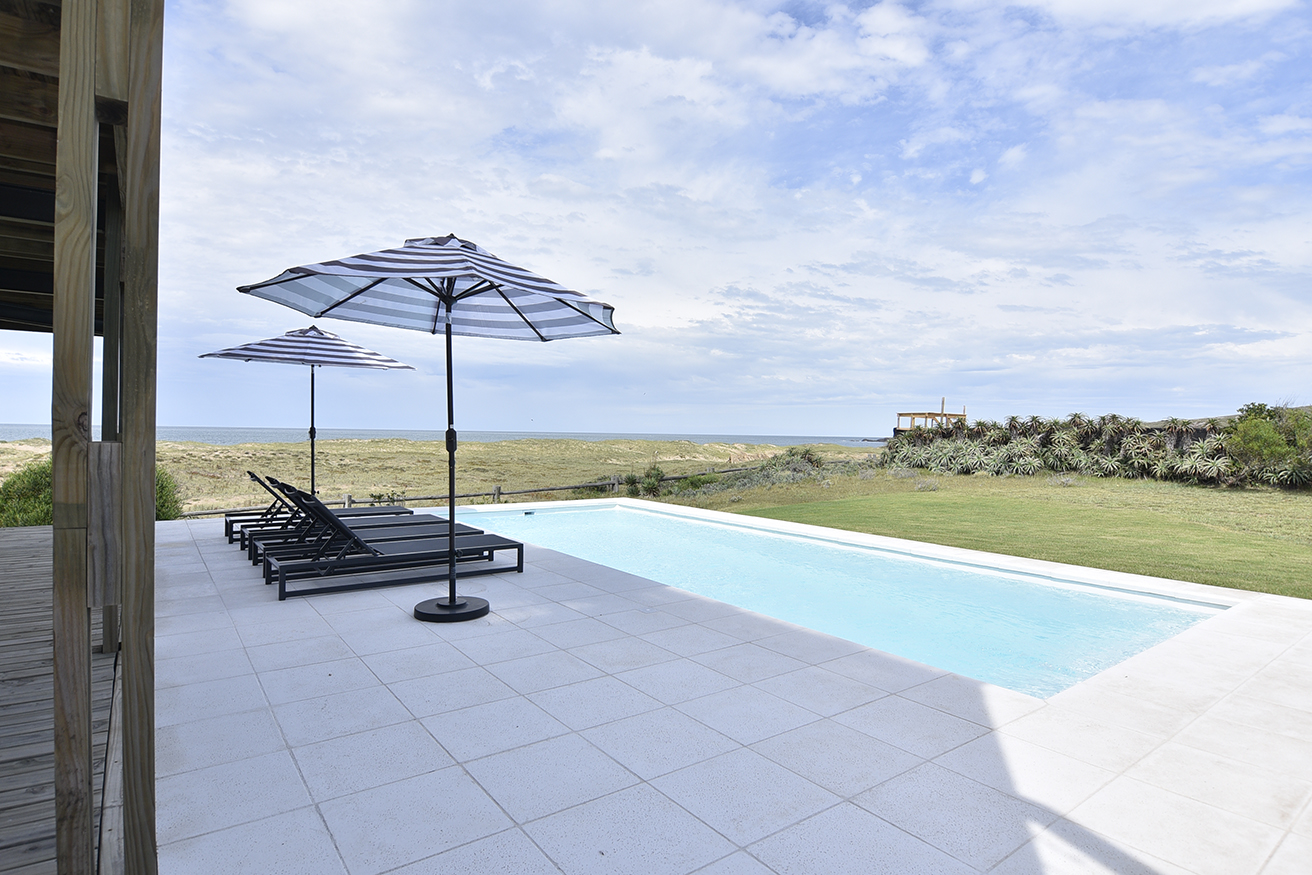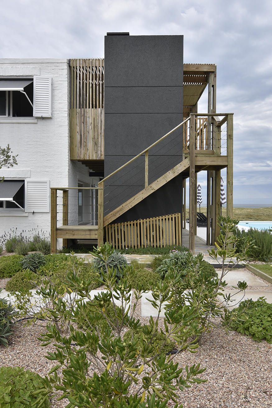 La división con el vecino se resolvió por medio de Palmeras y, en todo momento se respetó el entorno y su paisaje autóctono. En el sector jardín orientado al Sur y Este, se incorporó una piscina que acompaña a la pérgola y espacios exteriores y se optó por no intervenir el paisajismo en la zona de dunas, ya que tanto la diseñadora como el equipo de paisajismo Oromí Burgos Paisajismo y Paola Scelza en su ejecución optaron por entregarse al paisaje natural autóctono y que la naturaleza misma resuelva el paisajismo. En resumen, una casa de playa funcional, práctica con un diseño contemporáneo y a medida para los habitantes.