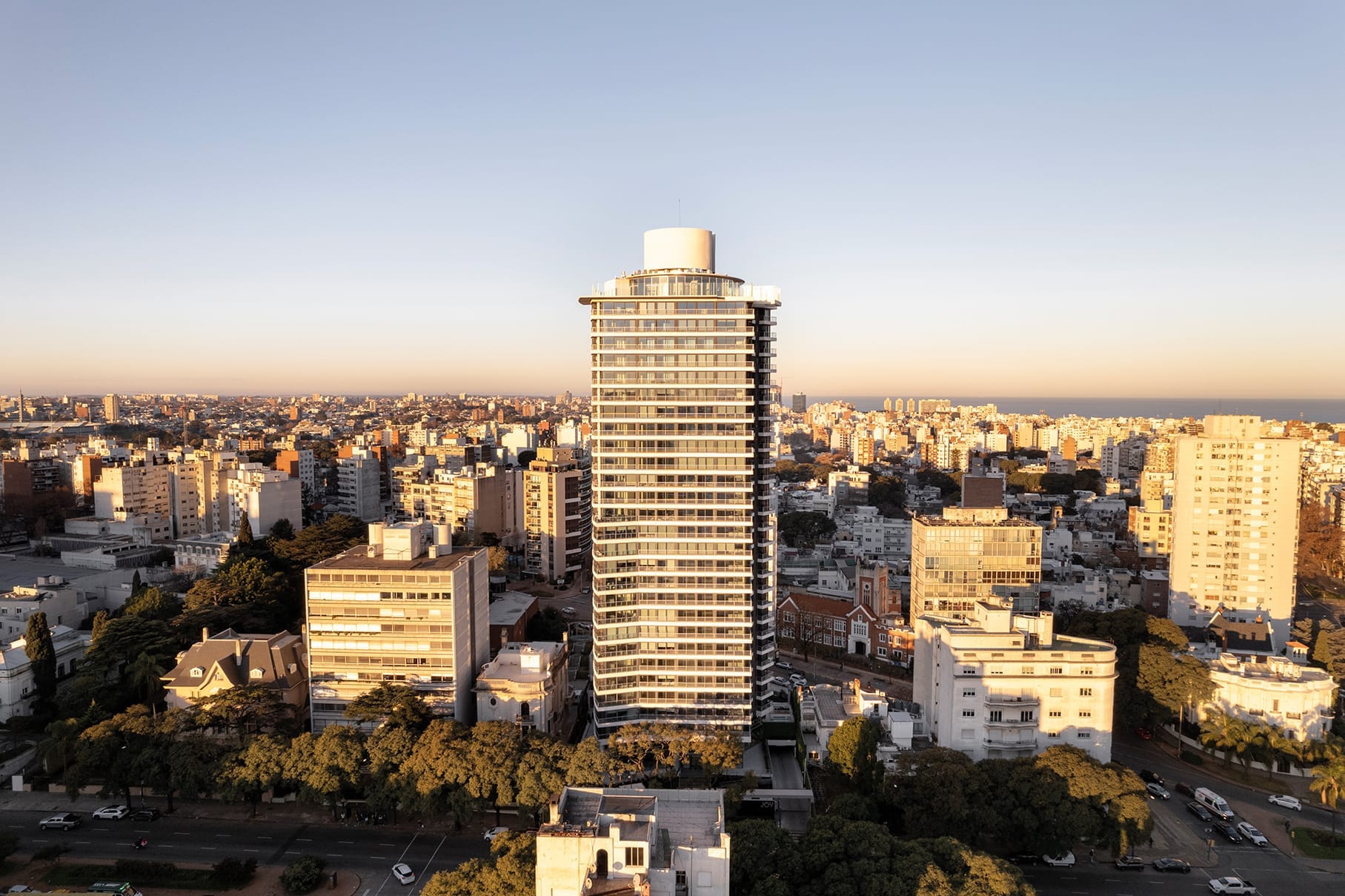 …el concepto del proyecto estuvo claro desde el primer día. Entonces se trataba de una innovación, ahora es una innovación, Arquitectura buena hay en muchas partes del mundo y en nuestro país especialmente. El concepto de los amenities también es común en Amenities en muchas torres del Uruguay, pero la combinación de buena arquitectura, amenities, servicios y entretenimientos, todo junto, a los valores que se puede acceder en JOY, imposible. De alguna manera redefinimos el lujo accesible a través de la materialidad, la buena arquitectura de una torre exenta con una destacada presencia urbana que nos permite contar con espacios totalmente ventilados, iluminados, con kilómetros, no metros, de ventanas. JOY Montevideo es una torre totalmente abierta a la ciudad, que trata como idea general, de brindar a sus habitantes calidad de vida en niveles muy sensibles y al mismo tiempo ofrecer a la ciudad una presencia icónica que enriquece y aporta valores estéticos, funcionales y arquitectónicos…