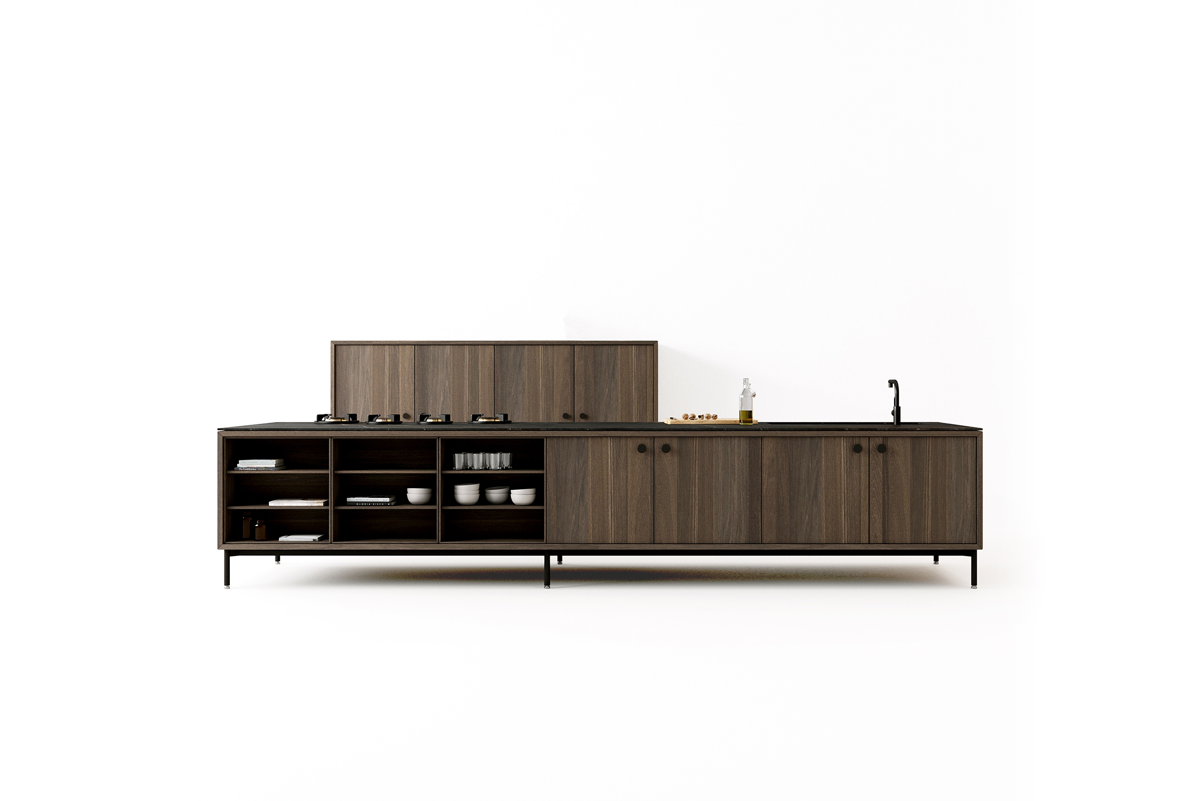 Su estructura abierta y componible permite al usuario convertirse en editor de su espacio. No hay jerarquías fijas, no hay una sola manera de armar la escena. Como si se tratara de un juego de bloques sofisticado, cada cocina es única, armada a medida de los ritmos, gestos y costumbres de quien la habita.