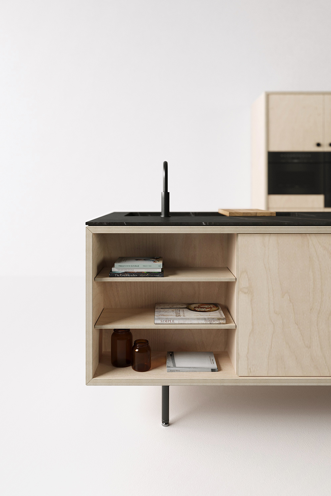 Su estructura abierta y componible permite al usuario convertirse en editor de su espacio. No hay jerarquías fijas, no hay una sola manera de armar la escena. Como si se tratara de un juego de bloques sofisticado, cada cocina es única, armada a medida de los ritmos, gestos y costumbres de quien la habita.