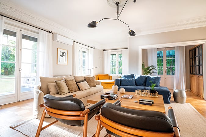 Son muchas las sorpresas que depara nuestro trabajo, pero una de ellas que felizmente se reitera de tanto en tanto, consiste en regresar a los lugares donde intervenimos. Y esta casa es una de ellas. En el año 2019 fuimos contratadas para desarrollar el proyecto de reforma e interiorismo, instancia en la que llegamos hasta ella por primera vez. Entonces no se realizaron modificaciones a la distribución ni a la fachada y luego de una tarea ardua de recuperación se generó un rejuvenecimiento general.