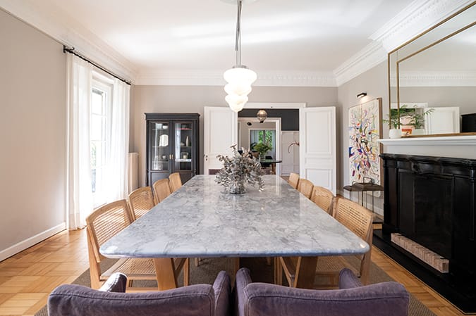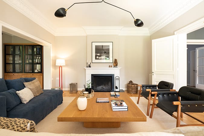 «… el proyecto fue muy interesante, ya que nos encontramos con una casa con una importante impronta arquitectónica de época y a su vez unos propietarios jóvenes que querían rejuvenecerla. En fachada se pintaron todas las ventanas y persianas reparando a su vez todas las cornisas que mantuvieron su diseño original. Se sustituyeron ventanas por puertas ventanas en el lateral buscando la integración de la casa con su espacio exterior. En los interiores generamos un dialogo muy intenso entre la estructura y su fuerte carácter, con mobiliario moderno, con algunas piezas contemporáneas, con lo cual la atmósfera resultante, en cada ambiente, era vital y a la vez sosegada…»