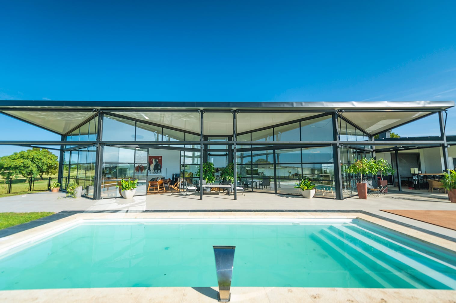 «El concepto tradicional impone que la galería es un complemento del espacio interior. En este proyecto no sucede así, estos patios tienen un protagonismo tal que son el corazón y el pulmón de la casa. Ordenan, dan sentido y estructuran la dinámica de funcionamiento de la casa.»